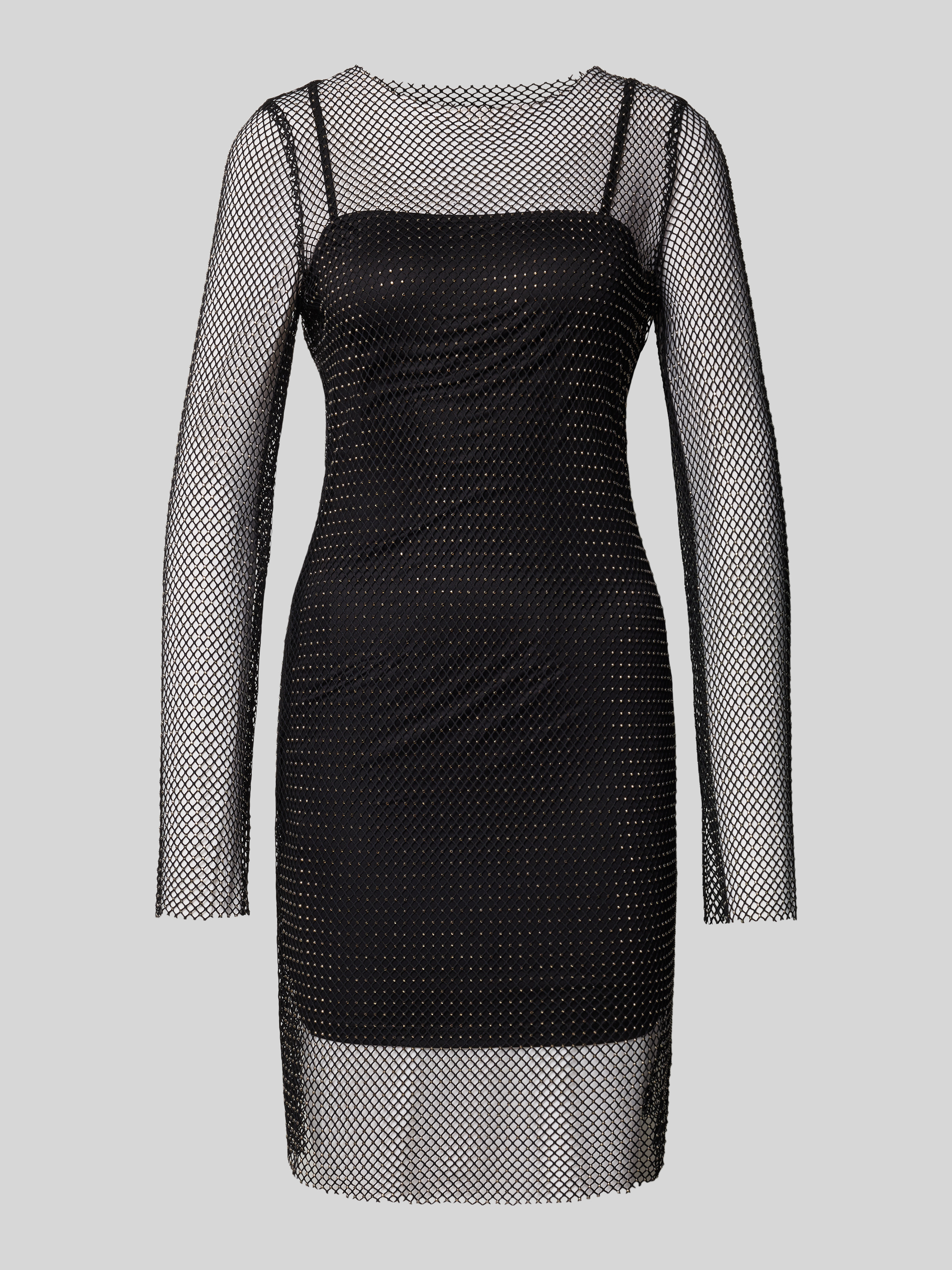 Das Damen Freizeitkleid von Only, Modell 'Torvi', zeichnet sich durch eine eng anliegende Passform und eine Mini-Länge aus, die die Figur sanft betont. Netz-Optik in Kombination mit langen Ärmeln, Spaghettiträgern und einem gefransten Saum sorgt für ein abwechslungsreiches Gesamtbild. Strasssteinbesatz und Stretch-Material runden das Kleid ab, wodurch man sich flexibel und bequem bewegen kann.