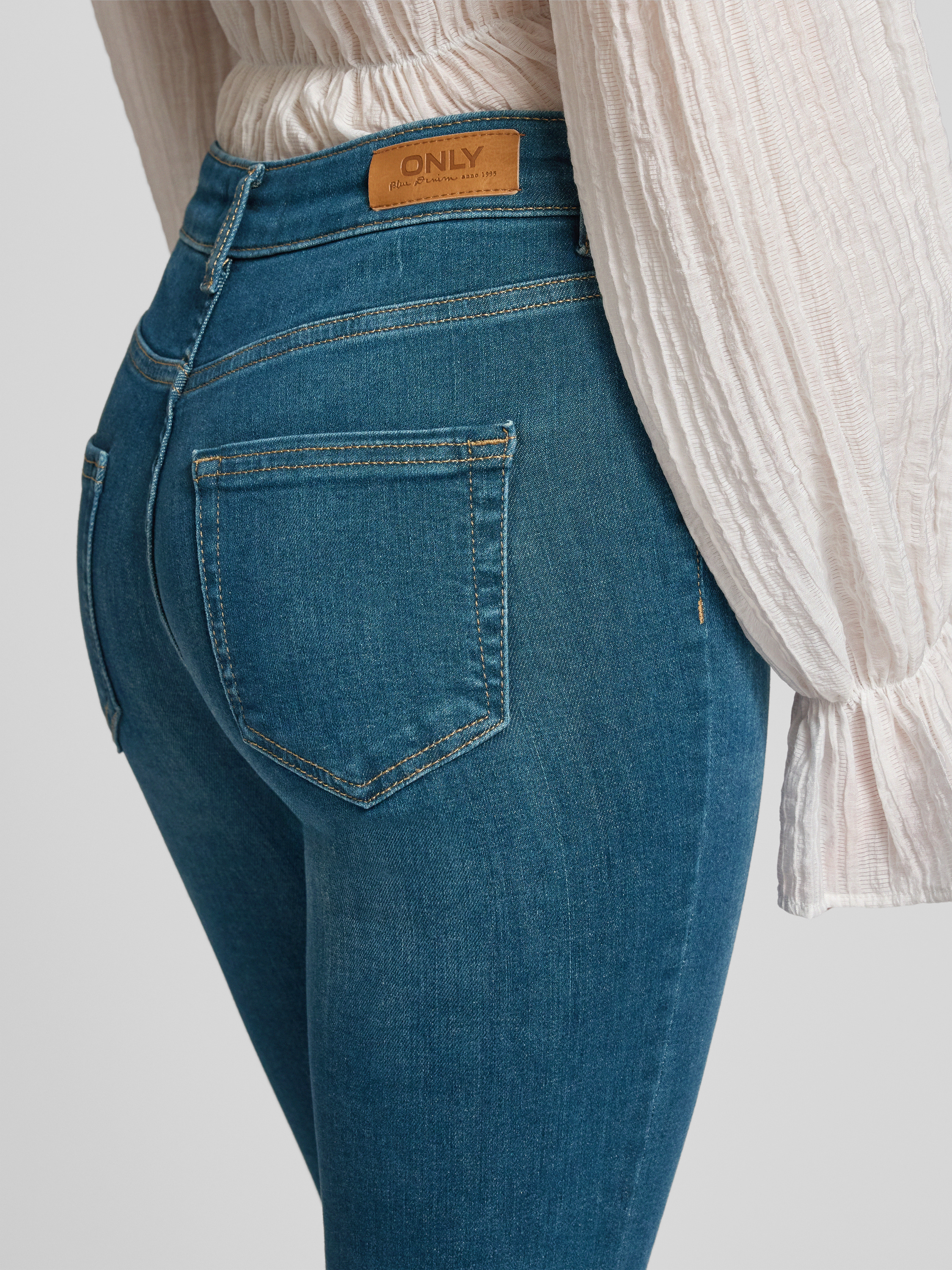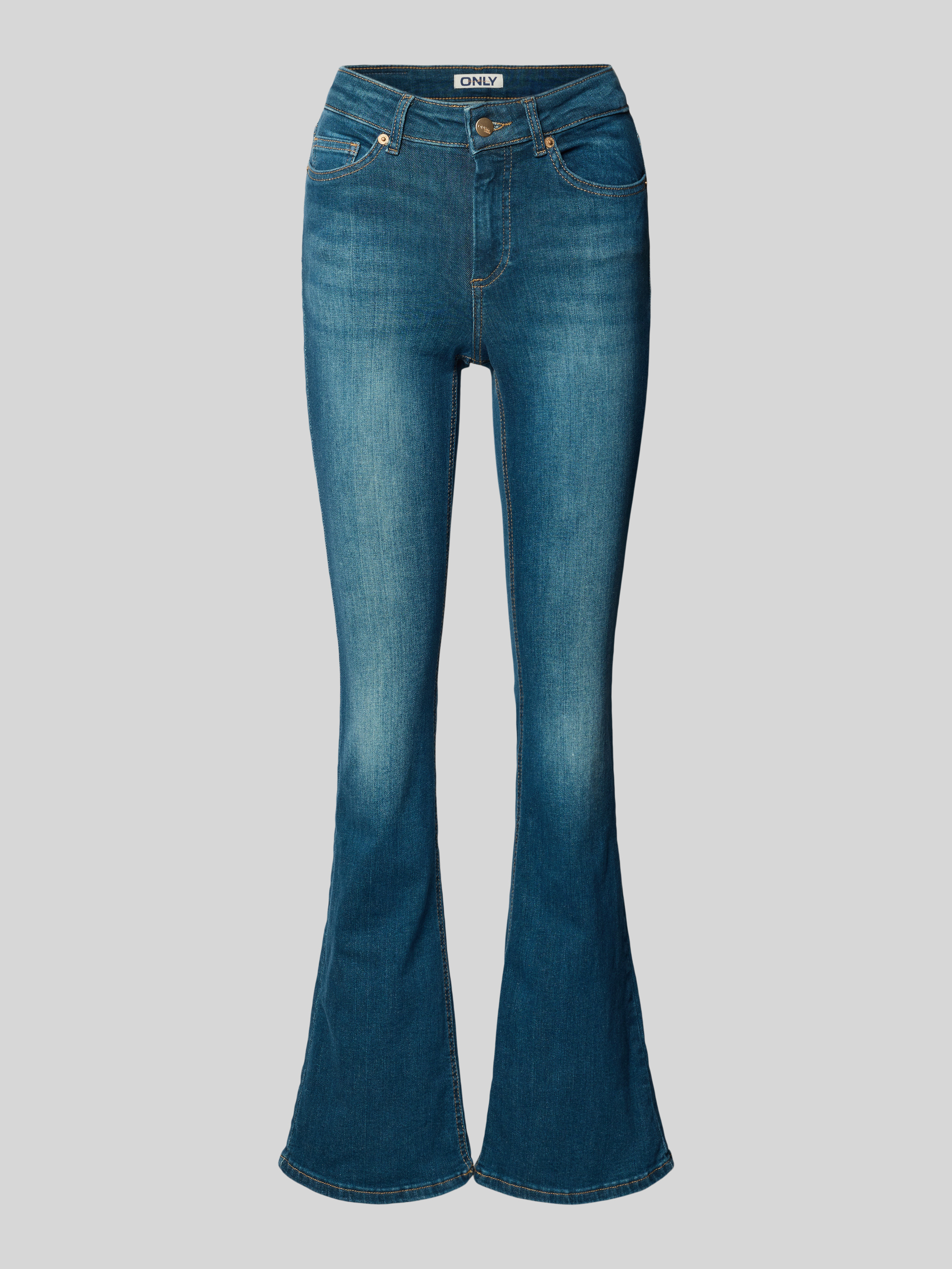 Die Flared Jeans von Only, Modell 'Blush', fällt durch ihre ausgestellte Silhouette auf und sitzt durch den mittelhohen Bund angenehm an der Hüfte. Dank des Baumwoll-Mix-Materials fühlt sich das Gewebe weich an und bleibt formstabil. Fünf Taschen und dezente Details sorgen für einen alltagstauglichen Look.