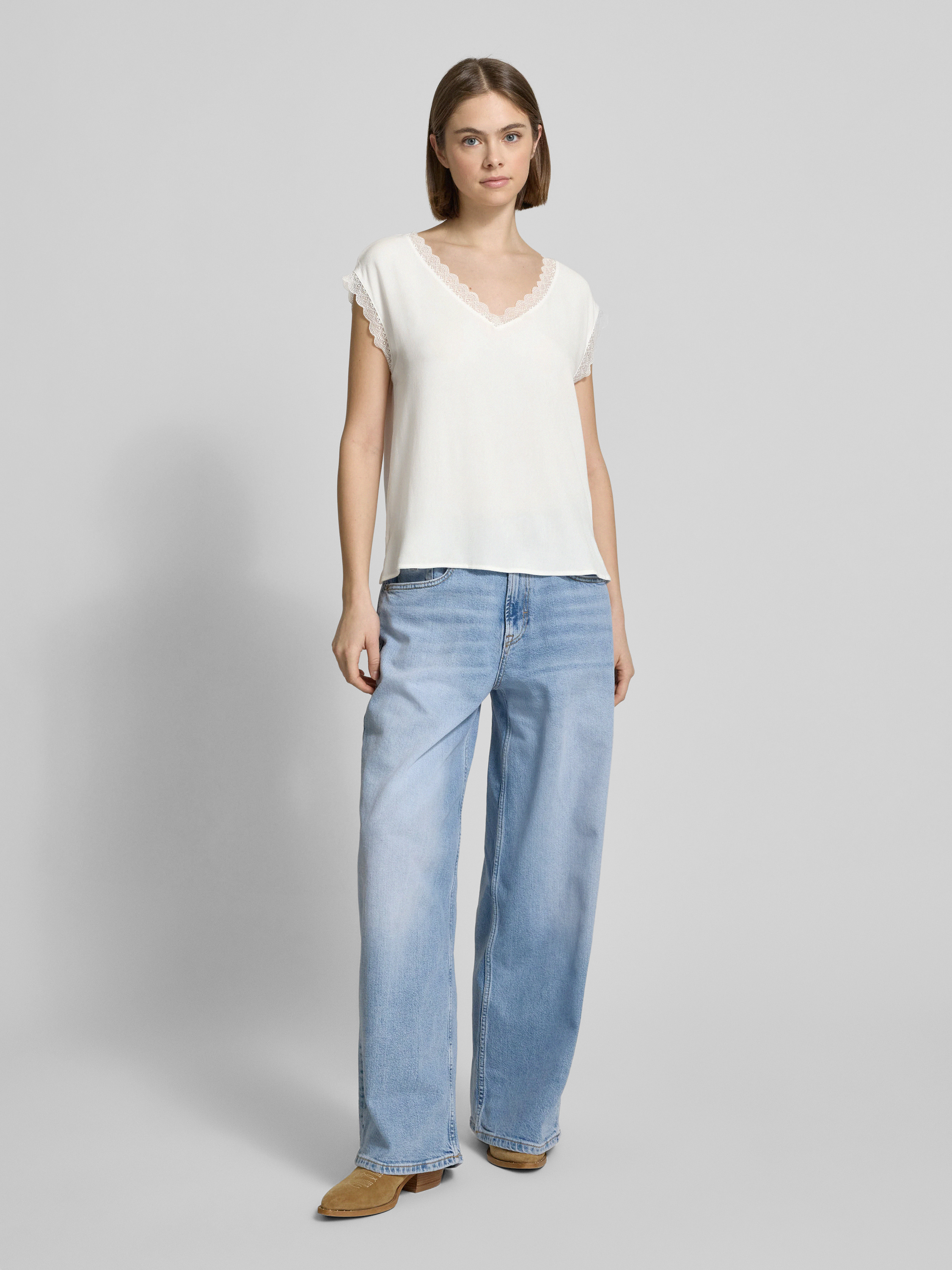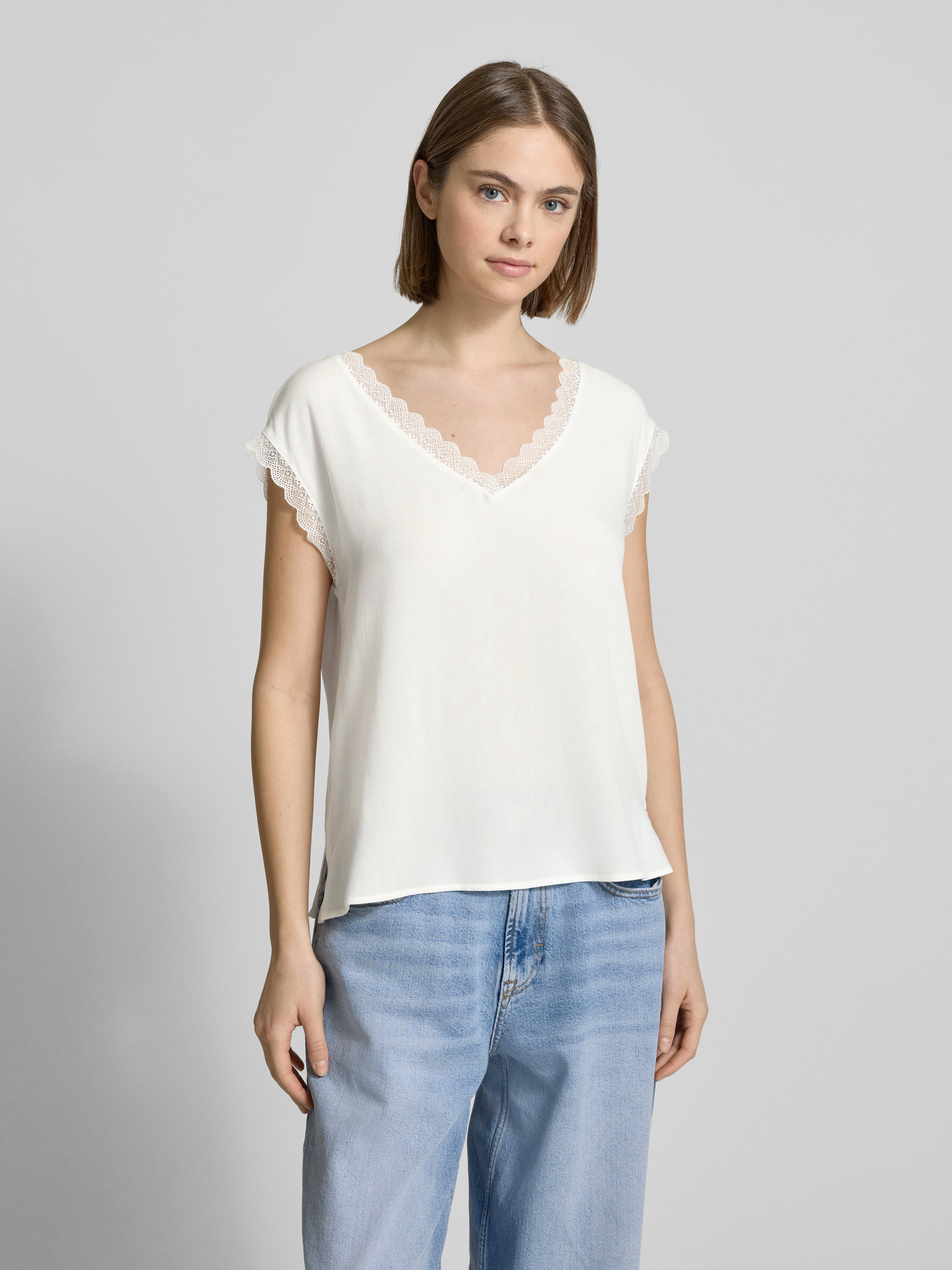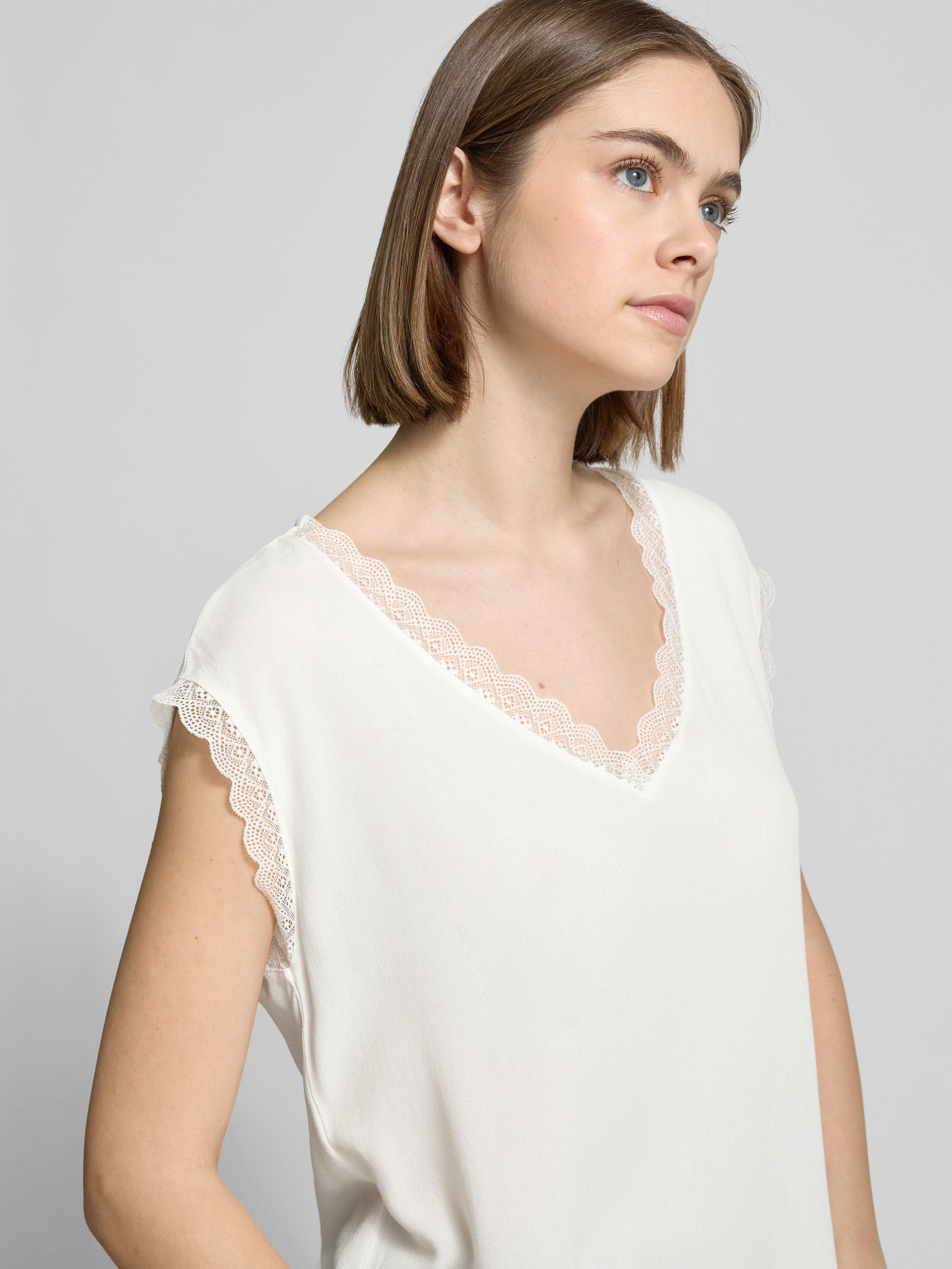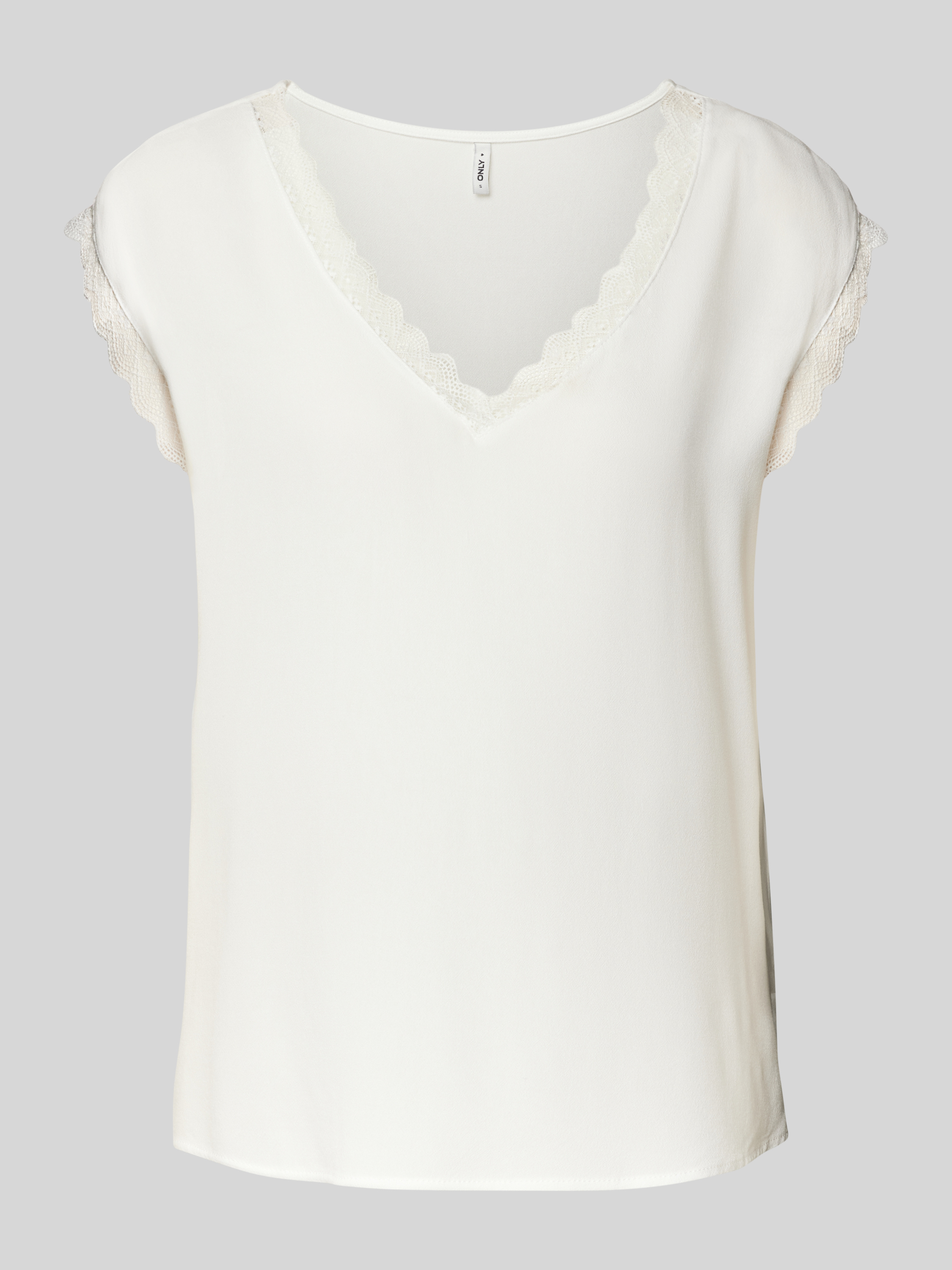OnlyLoose Fit Blusentop mit Spitzenbesatz Modell 'JASMINA' in offwhite