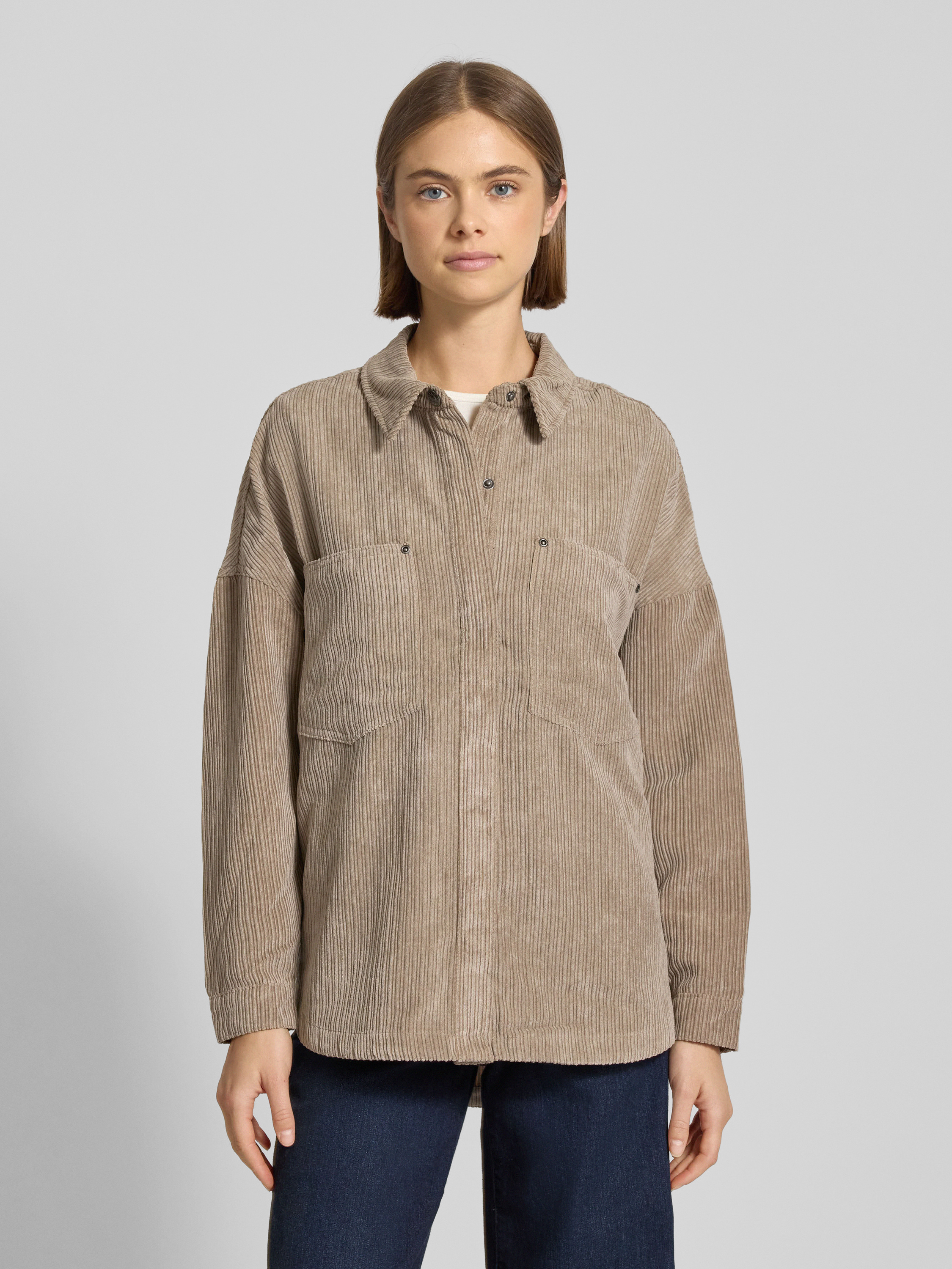 Die Damen Hemdbluse von Only, Modell Janine-Rai, fällt durch ihre lockere Loose-Fit-Silhouette und überschnittene Schultern angenehm entspannt aus. Weicher Cord sorgt für eine angenehme Haptik und verleiht dem unifarbenen Design einen dezenten Struktur-Effekt. Nieten-Applikationen und praktische Brusttaschen ergänzen den modernen Look und erleichtern den Alltag.