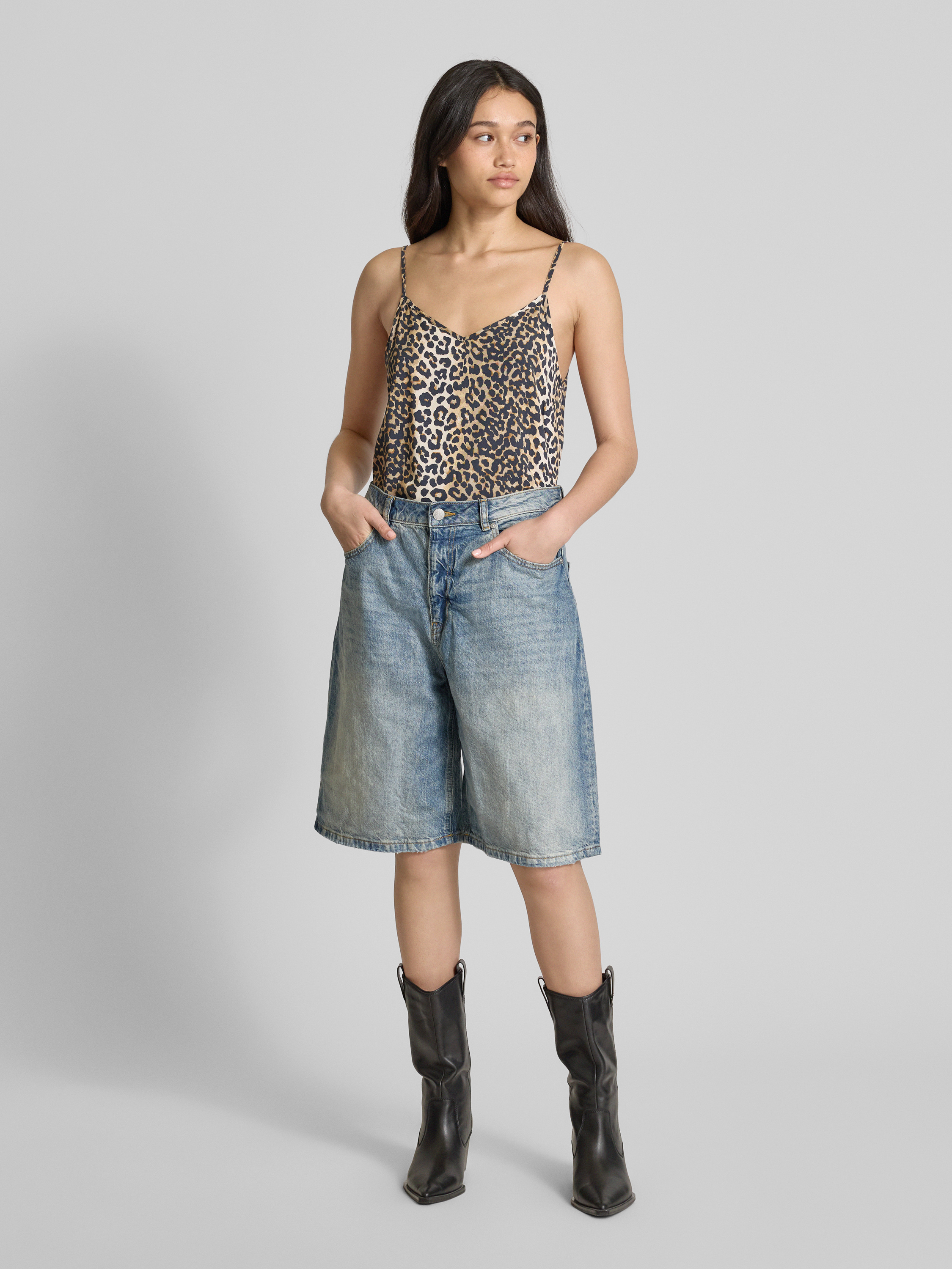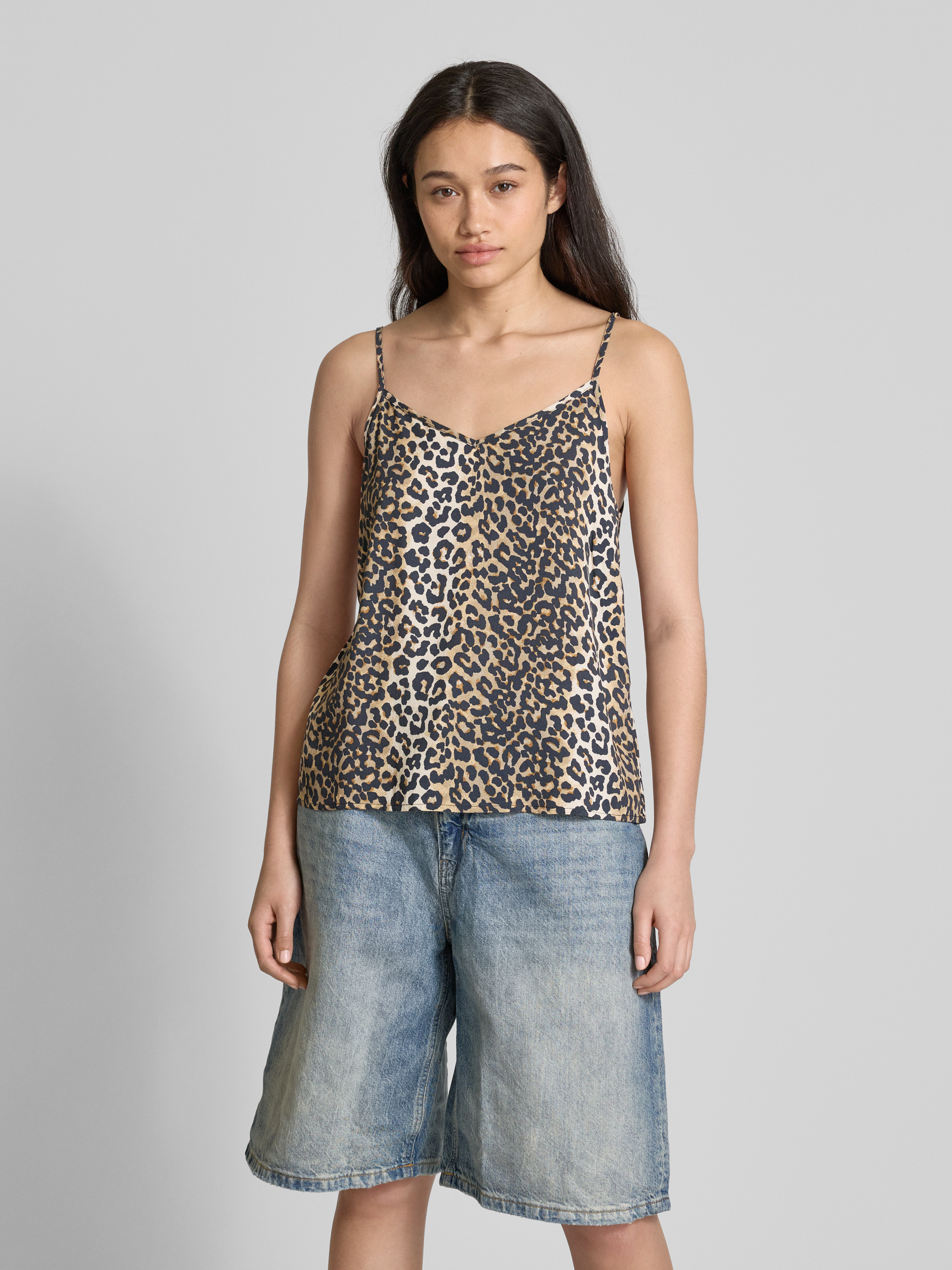 Das Damen Loose Fit Trägertop von Only, Modell Nova Life, fällt durch ein markantes Animal Print-Muster auf und liegt angenehm luftig auf der Haut. Dank verstellbarer Spaghettiträger lässt sich die Passform unkompliziert anpassen. Der V-Ausschnitt sorgt für eine dezente, feminine Silhouette.