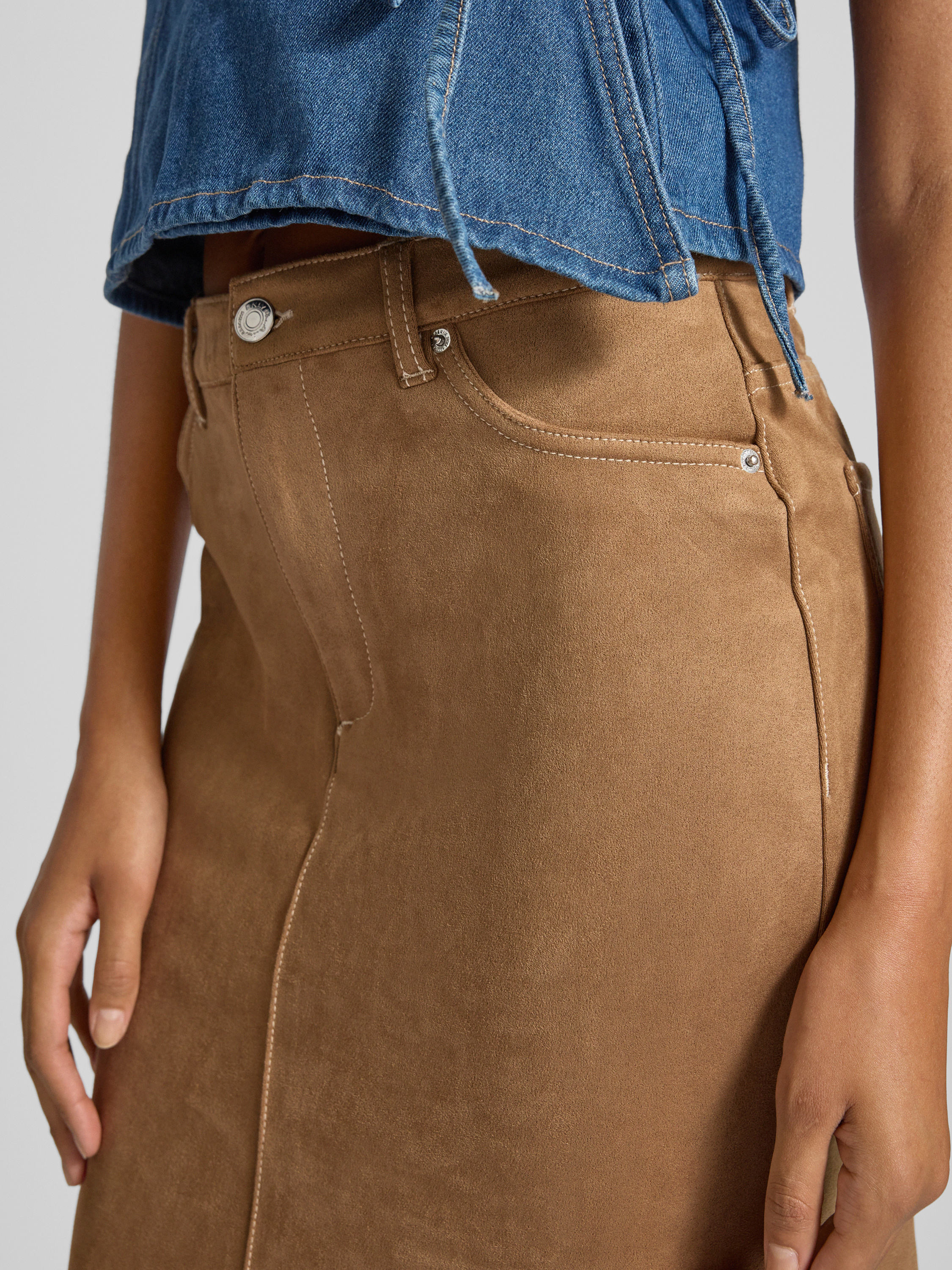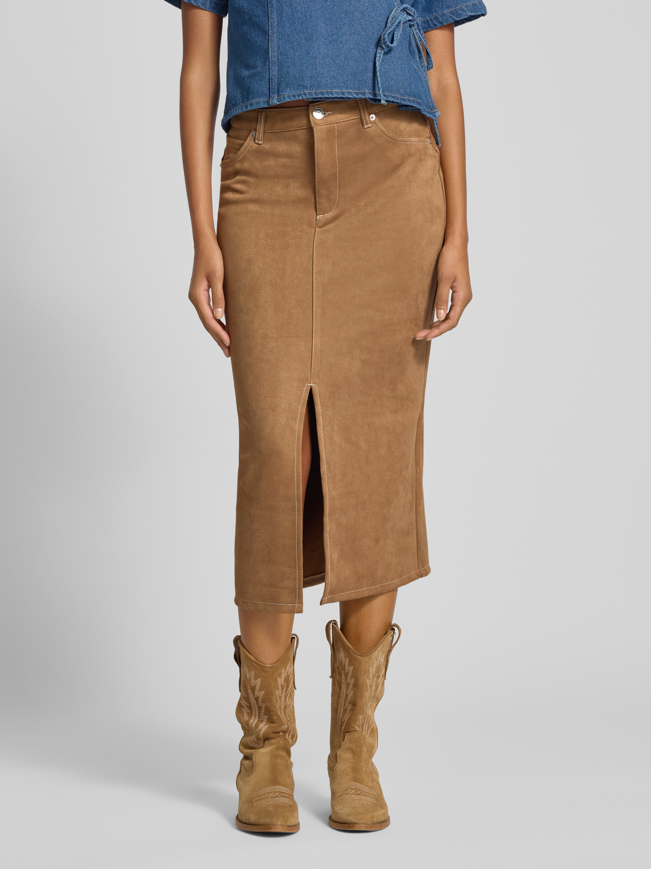 OnlyMidi-Rock mit Kontrastnähten Modell 'STINA LIFE' in sand