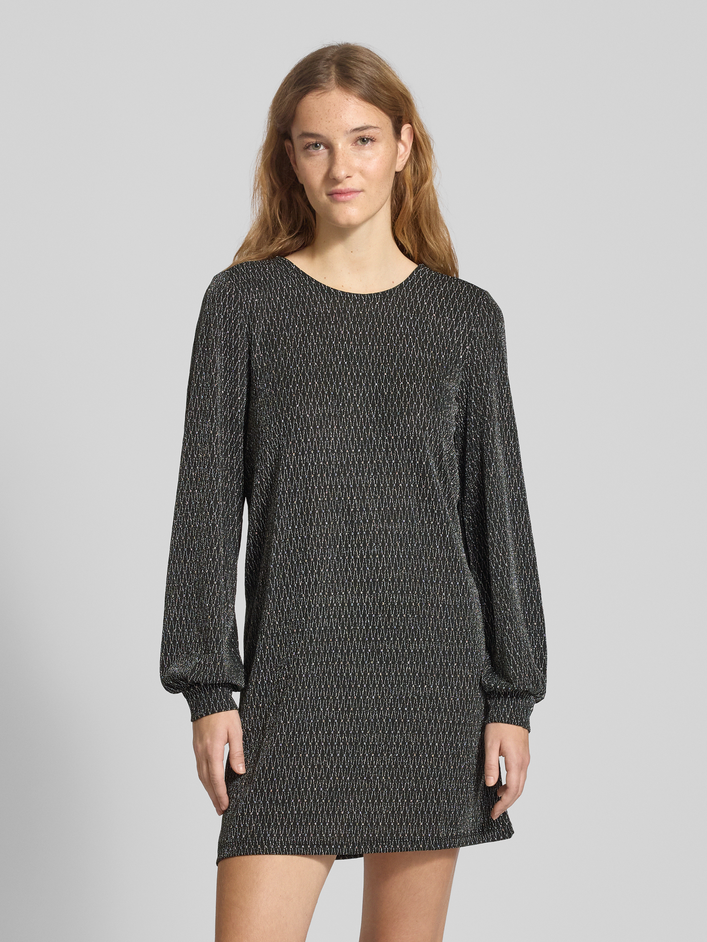 Das Damen Minikleid von Only, Modell 'Carol', vereint eine Two-Tone-Optik mit glitzernden Nadelstreifen und Effektgarn, wodurch ein lebendiger Look entsteht. Durch die Loose-Fit-Passform und Ballonärmel bleibt Bewegungsfreiheit erhalten, während der Rundhals und U-Ausschnitt im Rücken für angenehmen Tragekomfort sorgen. Die Mini-Länge und das Bindeband schaffen eine lockere Silhouette, die vielseitig eingesetzt werden kann.