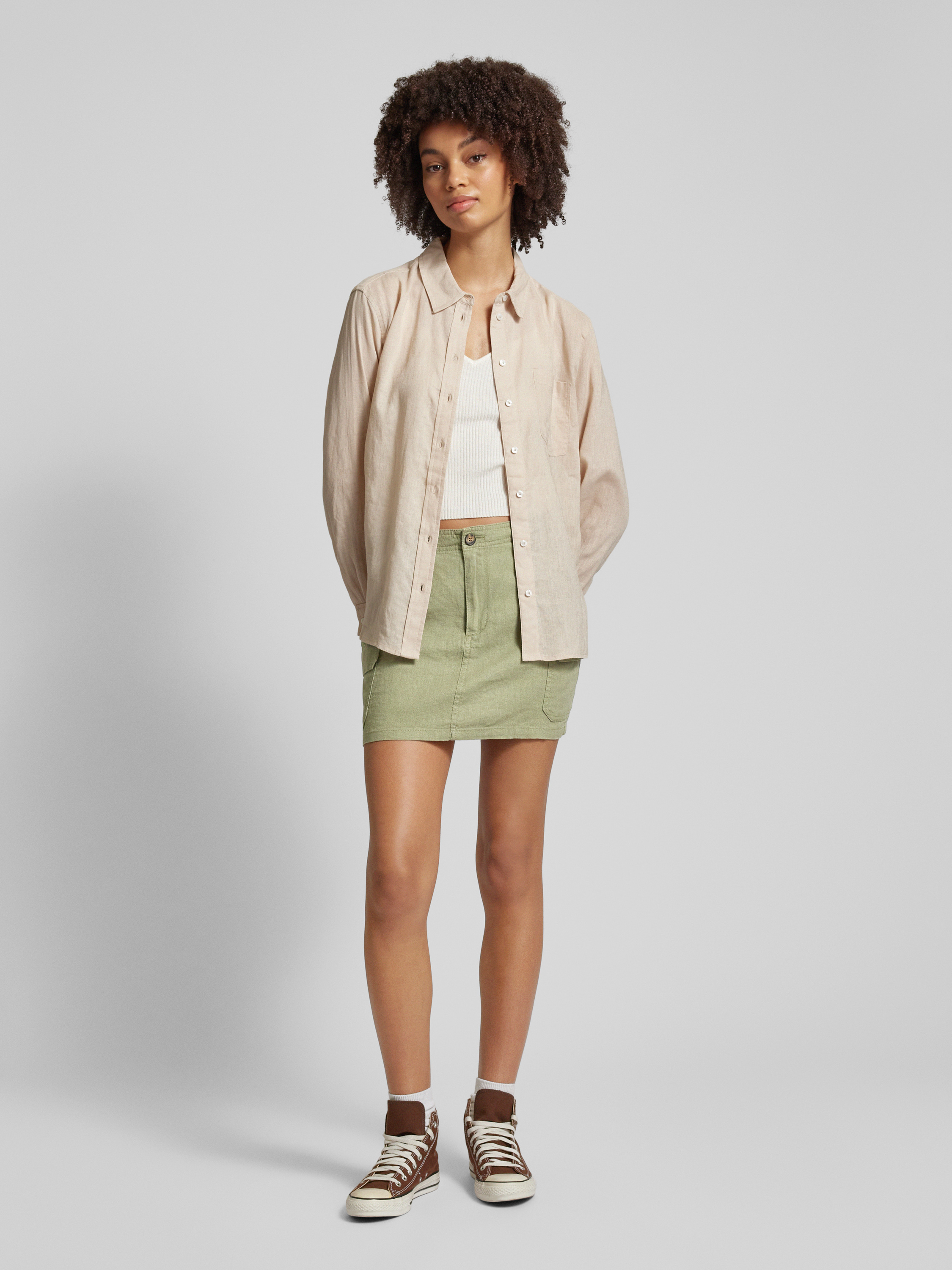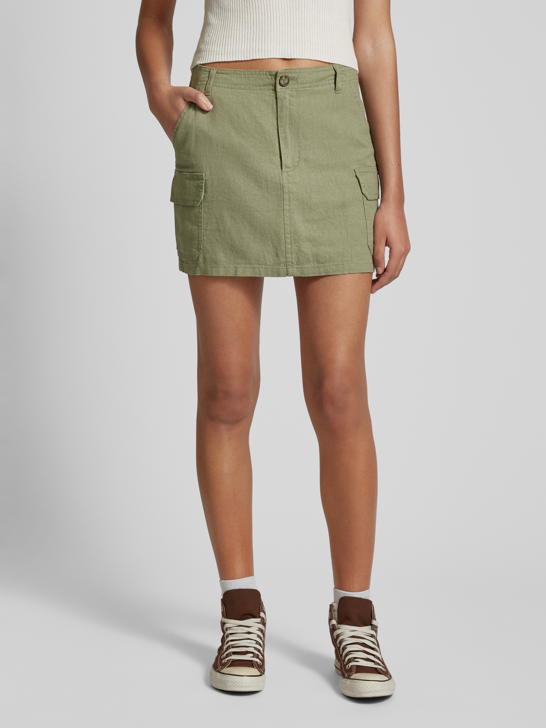 OnlyMinirock aus Leinen-Viskose-Mix Modell 'MALFY' in oliv