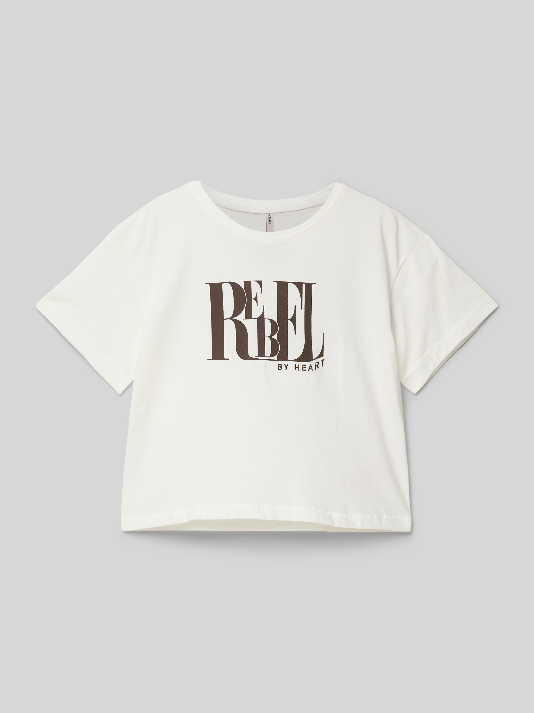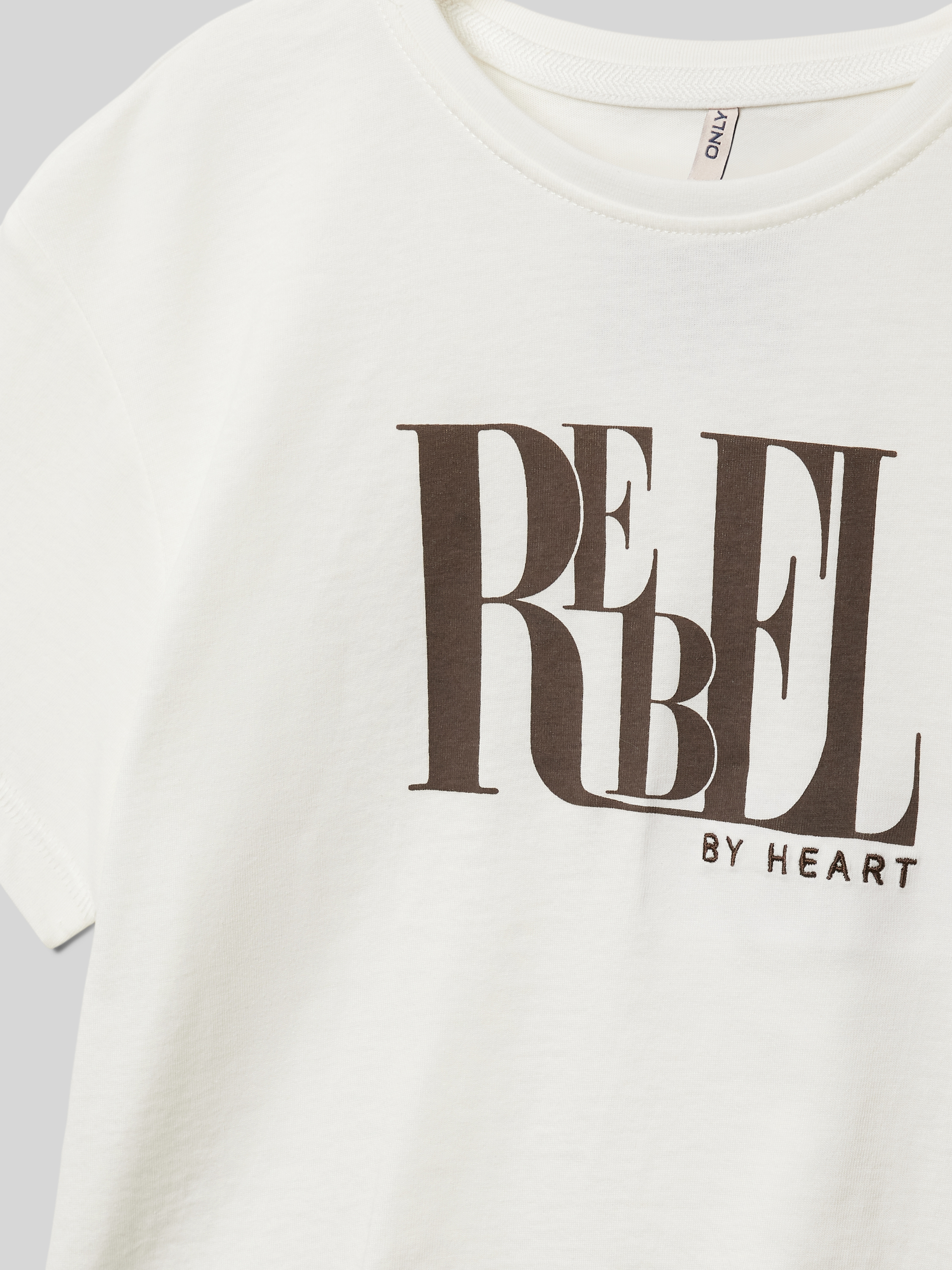 Das Regular Fit Crop Top von Only, Modell 'Leona', verbindet Komfort mit Stil durch seine reine Baumwollverarbeitung und den entspannten Schnitt. Mit einem schlichten Rundhalsausschnitt und kurzen Ärmeln eignet sich das Top ideal für warme Tage. Der dezente Statement Print und das Schriftzug-Stitching setzen modische Akzente.