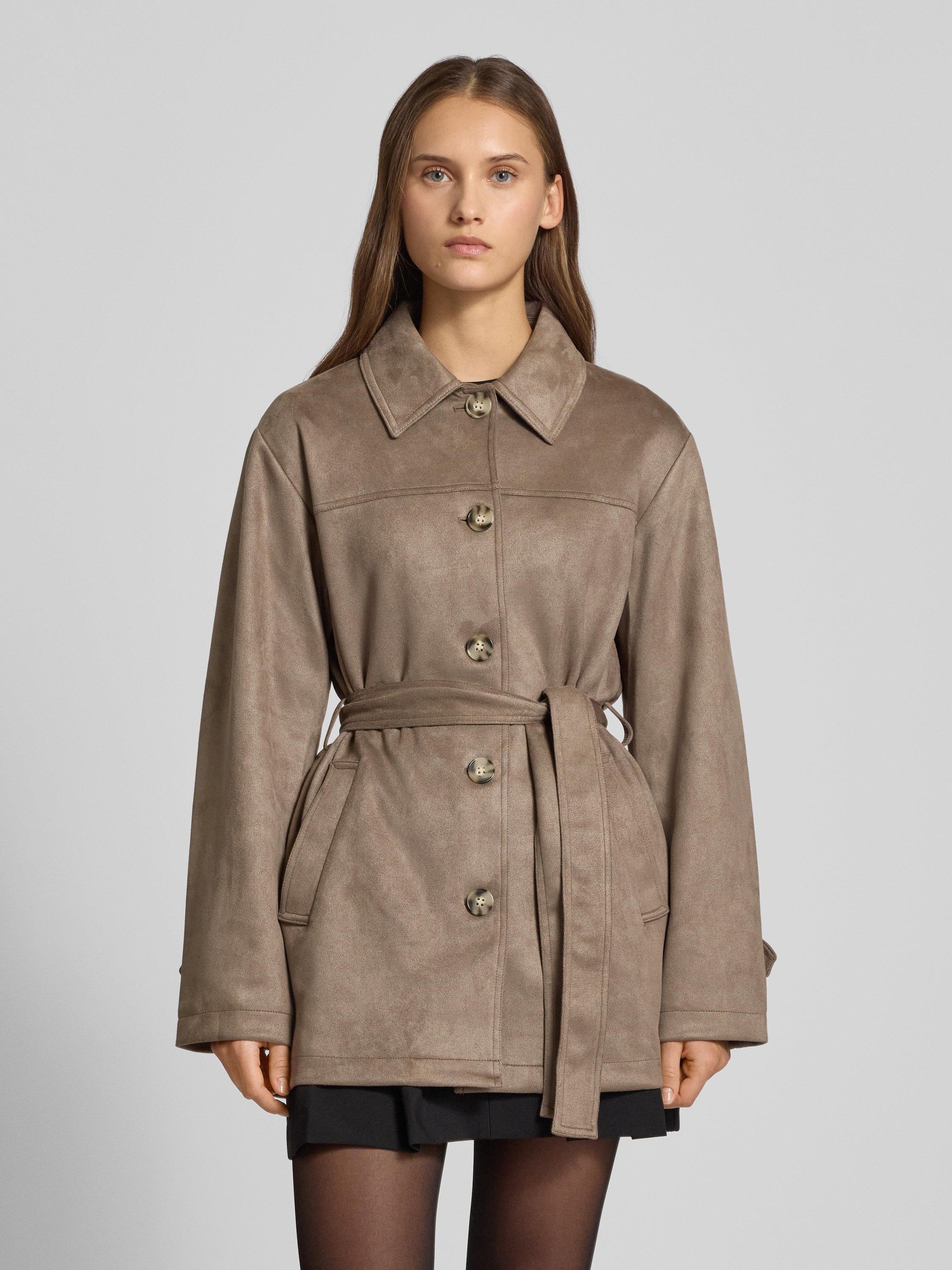 OnlyRegular Fit Kurzmantel in Wildleder-Optik Modell 'DIANE' in taupe