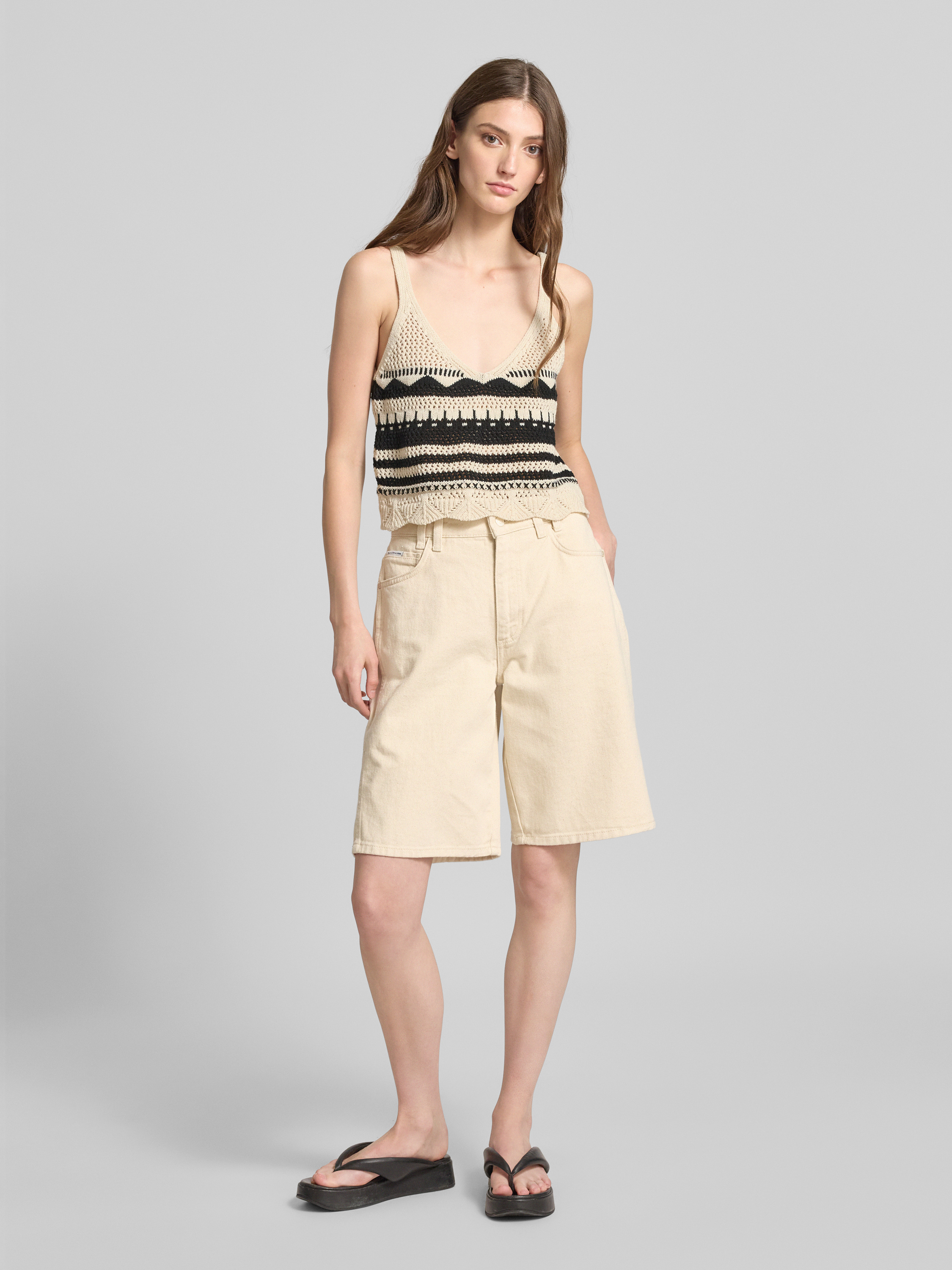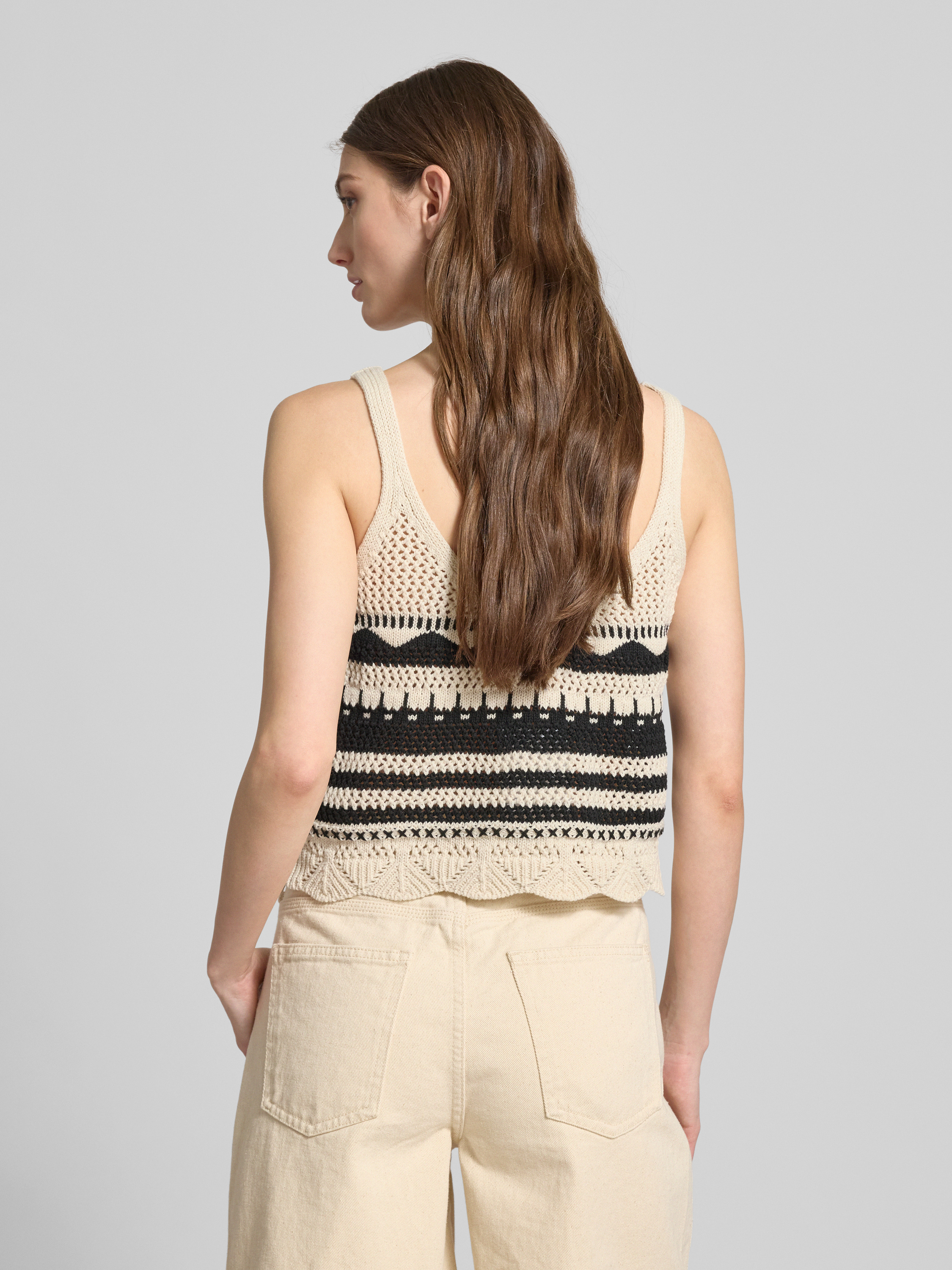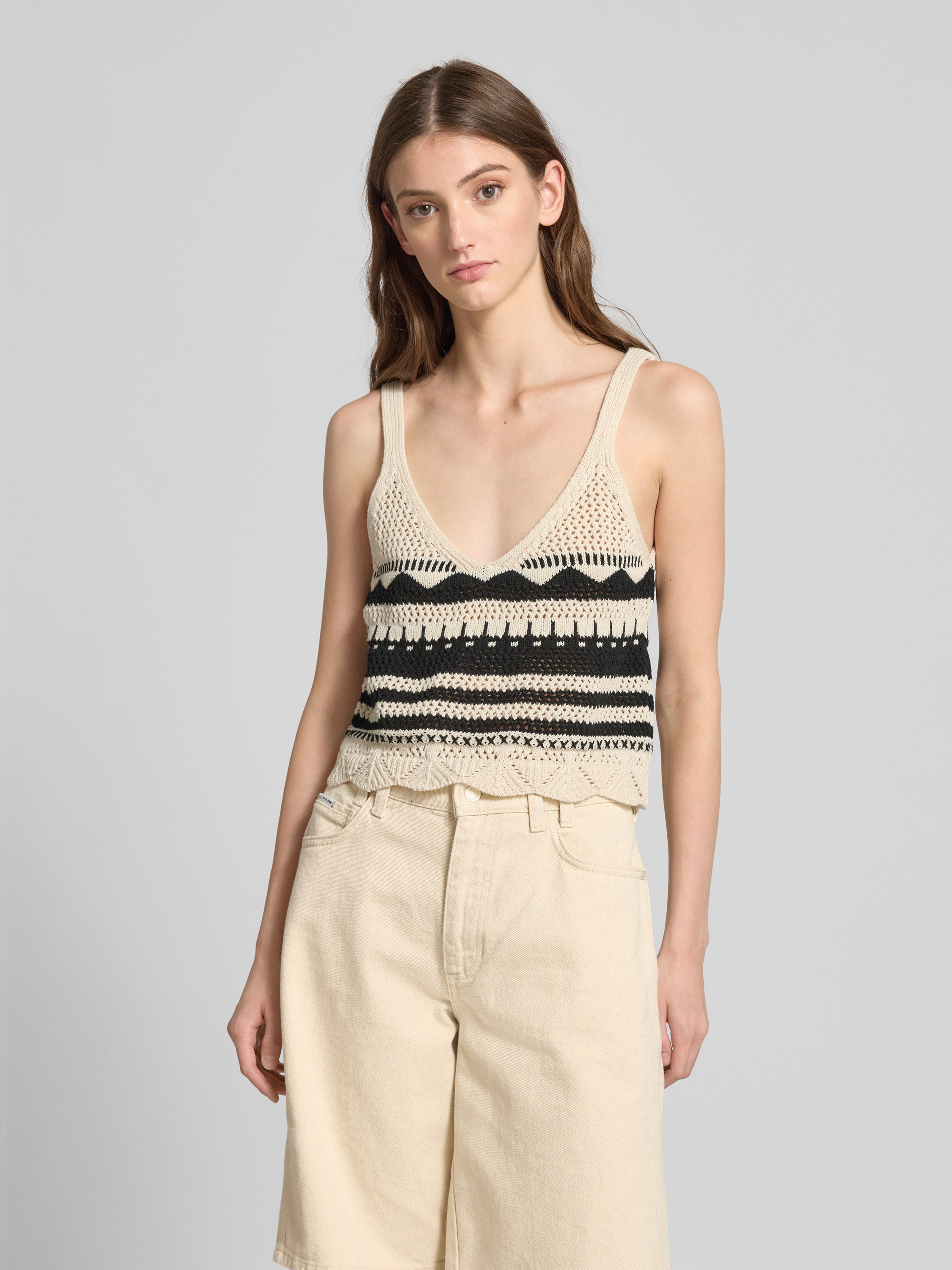 Das Regular Fit Strick Tank Top 'Merida' von Only kombiniert durch seinen Baumwoll-Mix Tragekomfort mit stilvollem Design. Die cropped Länge und der V-Ausschnitt verleihen jedem Outfit eine moderne Note, während das Allover-Muster für einen interessanten Look sorgt. Breite Träger bieten zusätzlichen Halt.