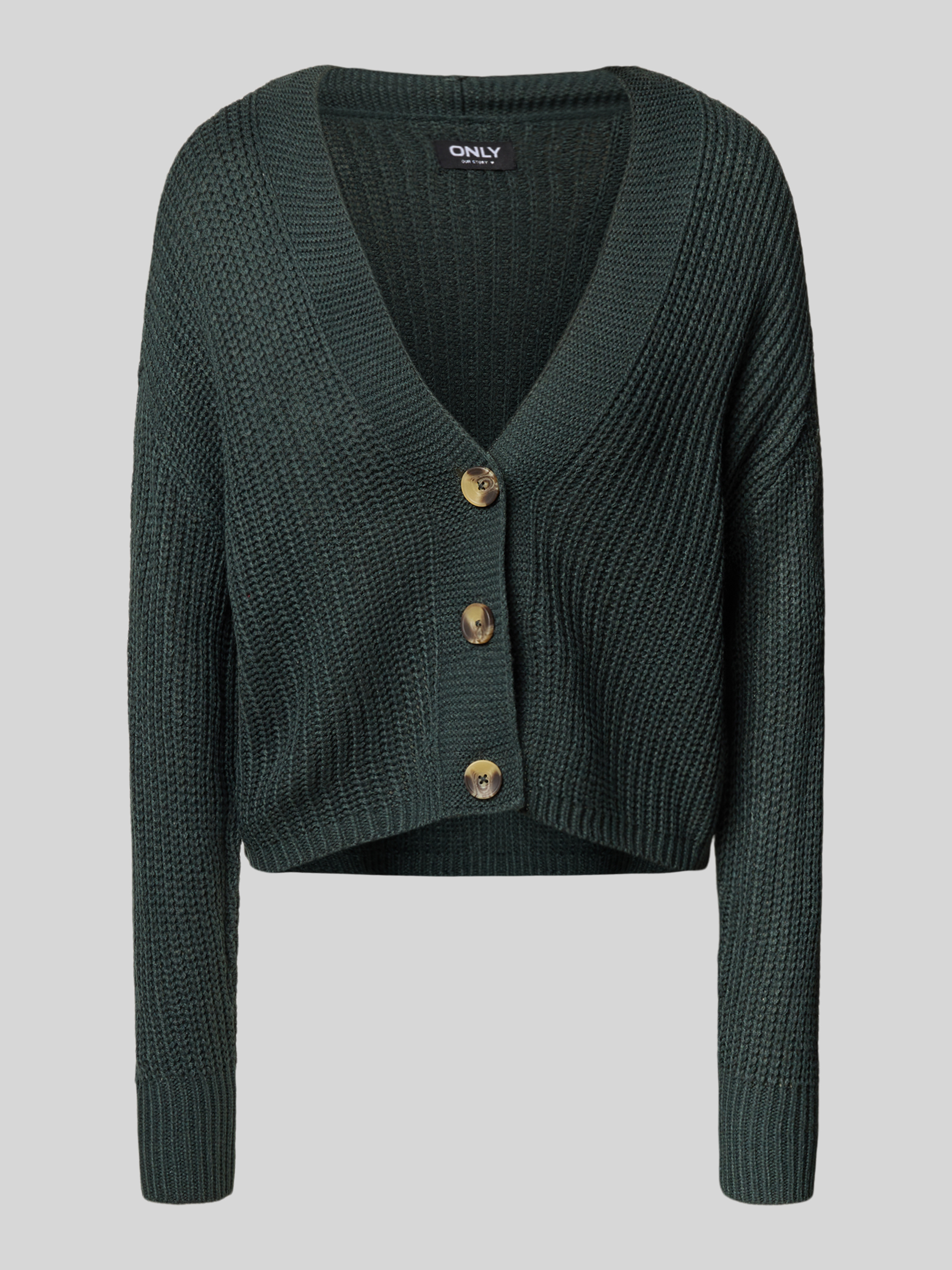OnlyRegular Fit Strickjacke mit überschnittenen Schultern MODELL 'CAROL' in dunkelgruen