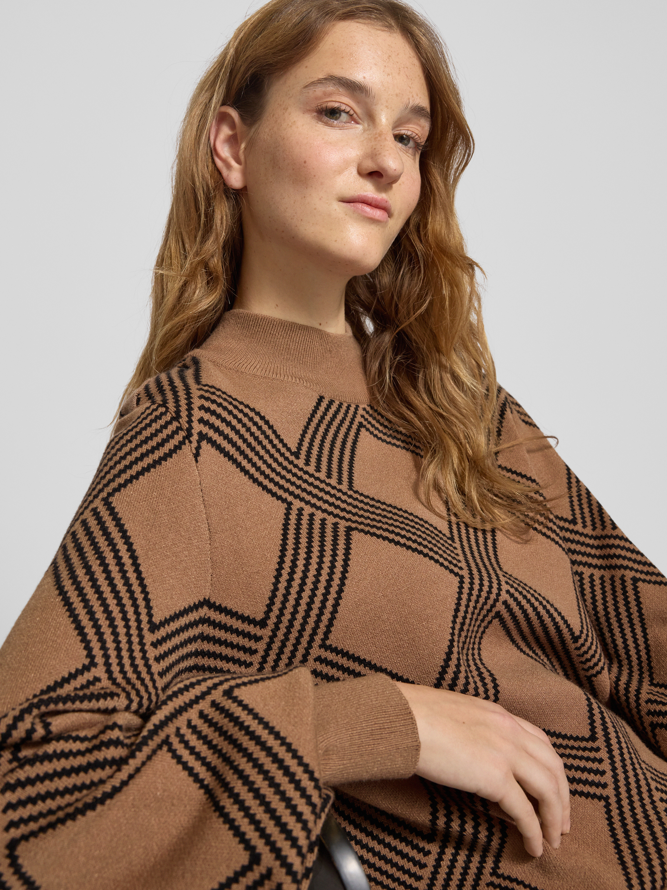Der Damenpullover Only Anny verbindet durch den Regular Fit angenehmen Tragekomfort mit einer entspannten Silhouette. Das abstrakte Allover-Muster sorgt für einen modernen Akzent, während der Mock Neck und die langen Ärmel dem Strickdesign eine zeitgemäße Note verleihen. Durch die geschmeidige Materialmischung fühlt sich das Modell angenehm weich auf der Haut an.