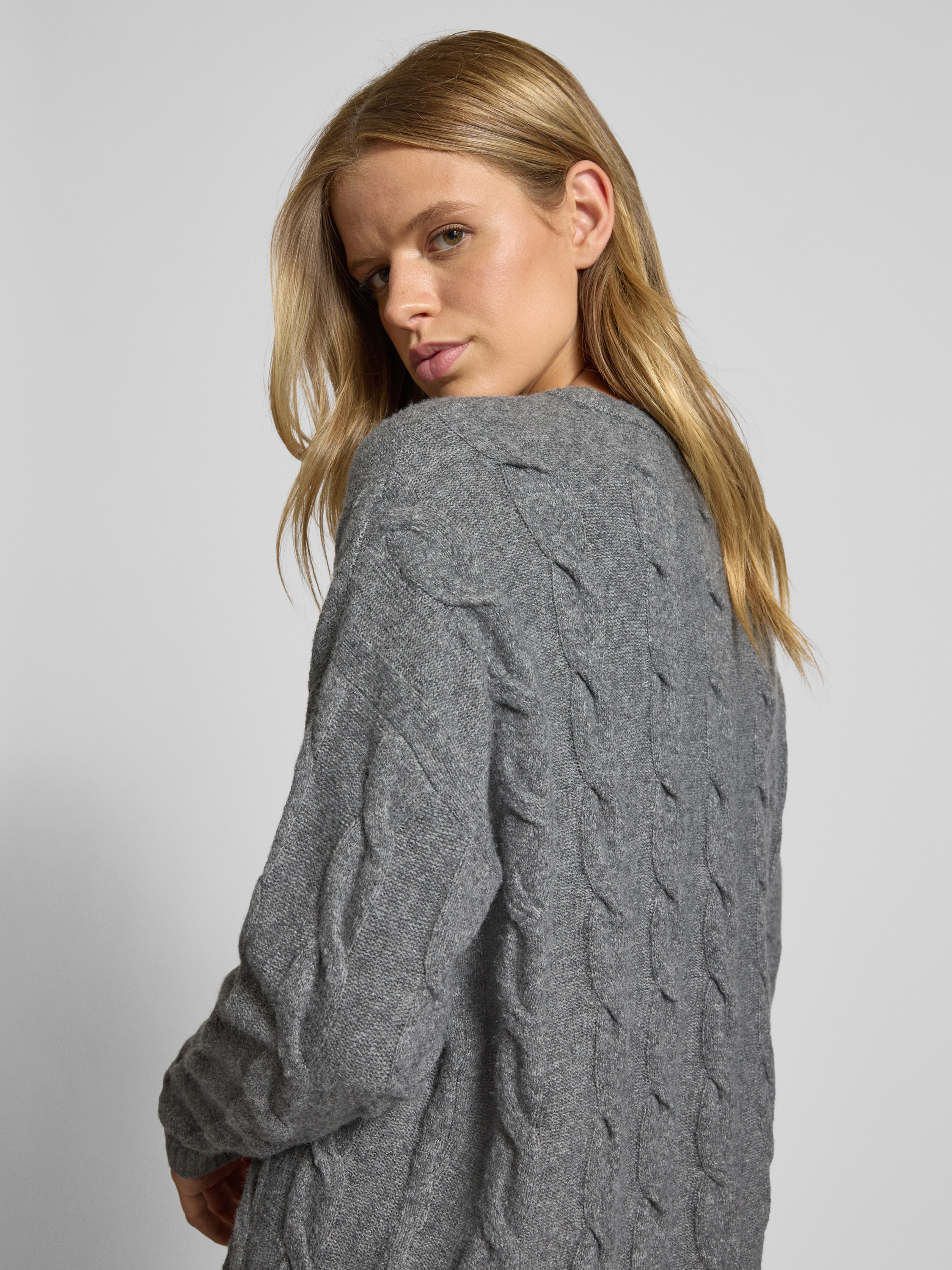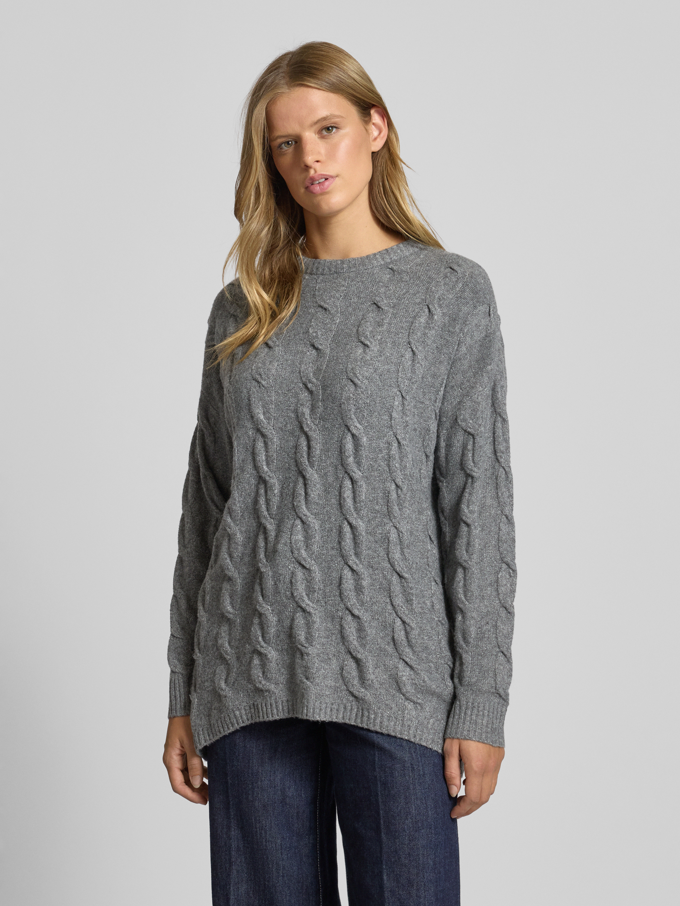 OnlyRegular Fit Strickpullover mit Strukturmuster Modell 'JEANETTE' in mittelgrau melange