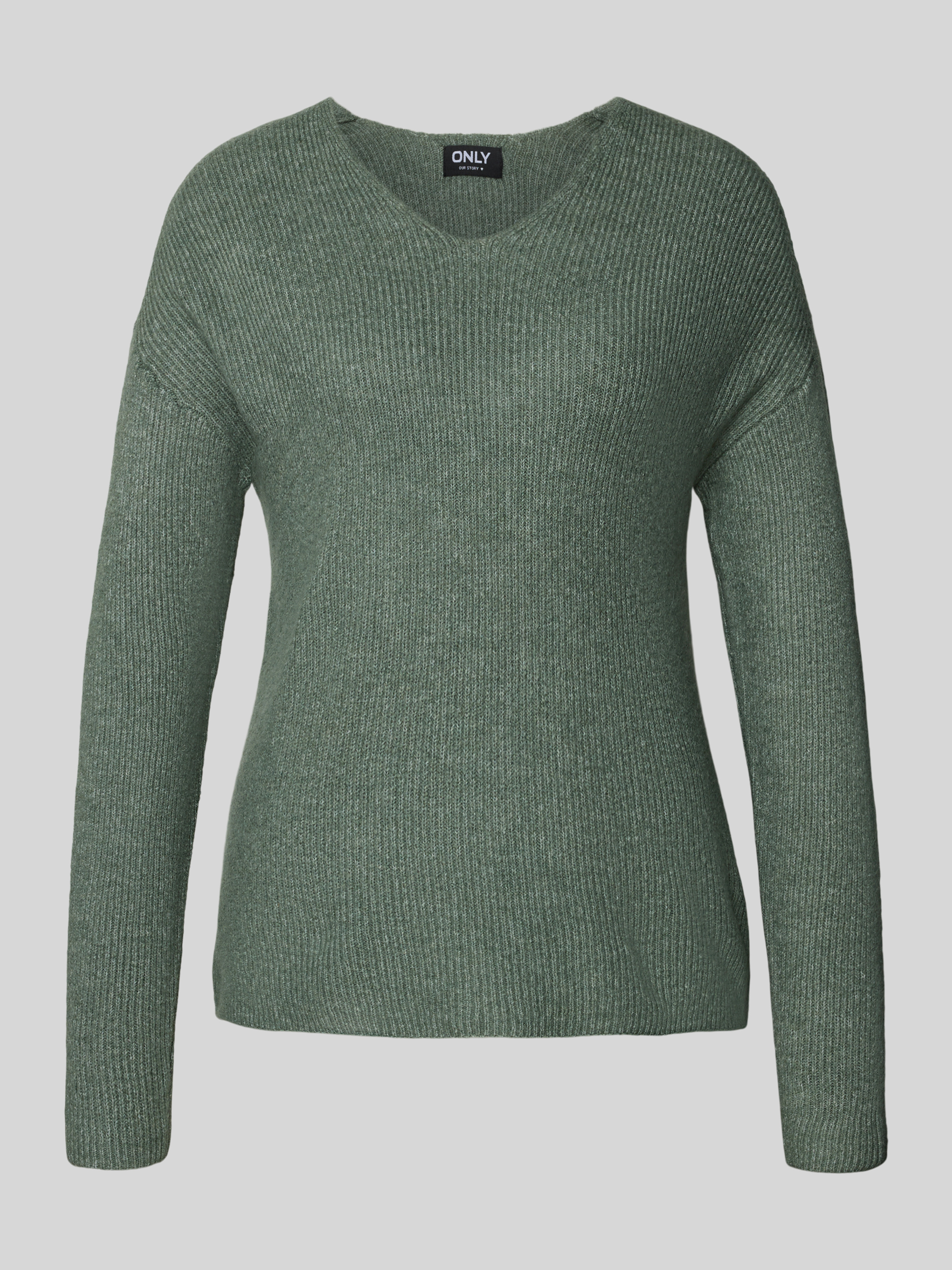 OnlyRegular Fit Strickpullover mit V-Ausschnitt Modell 'CAMILLA' in schilf