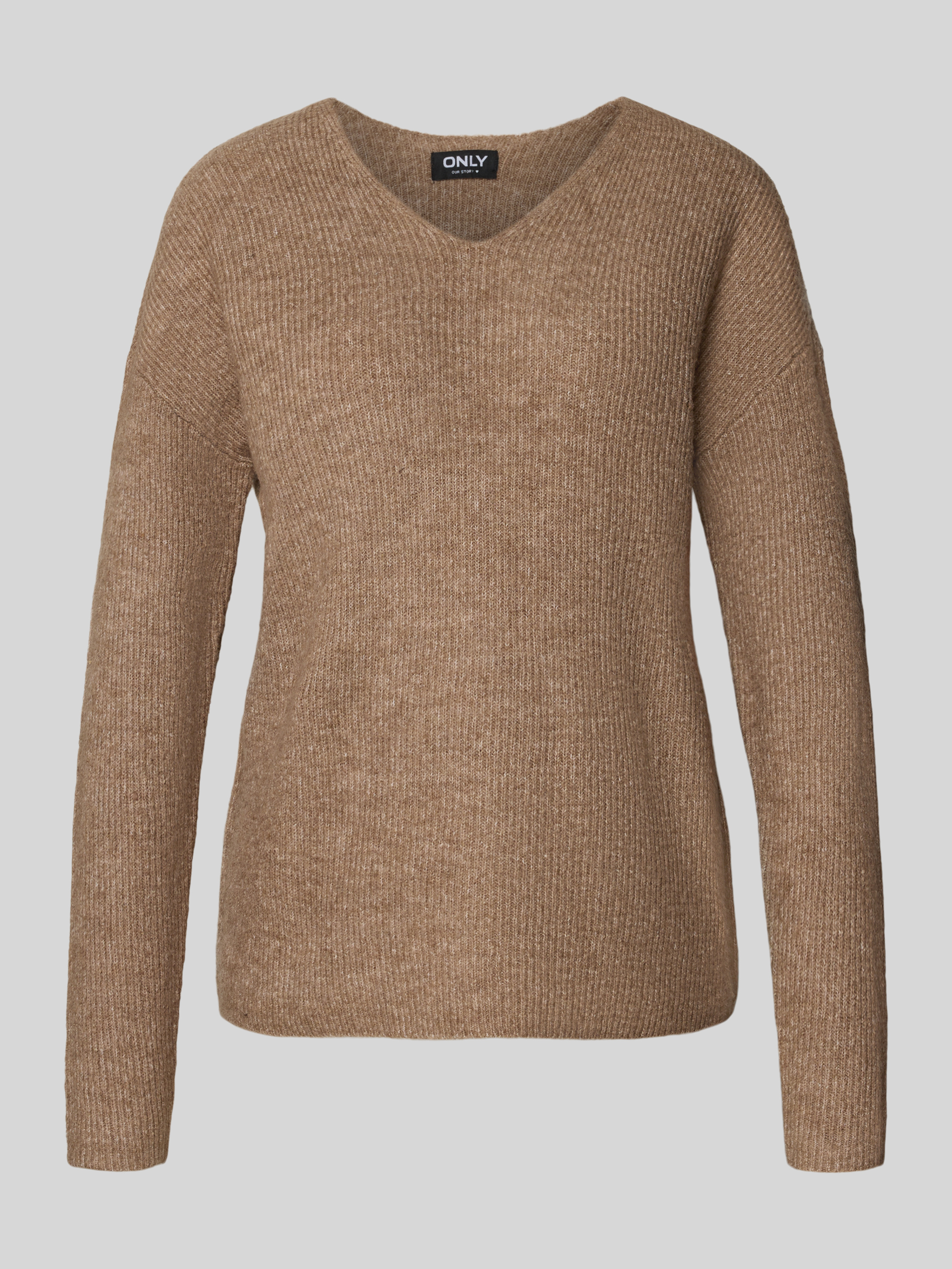 OnlyRegular Fit Strickpullover mit V-Ausschnitt Modell 'CAMILLA' in taupe melange