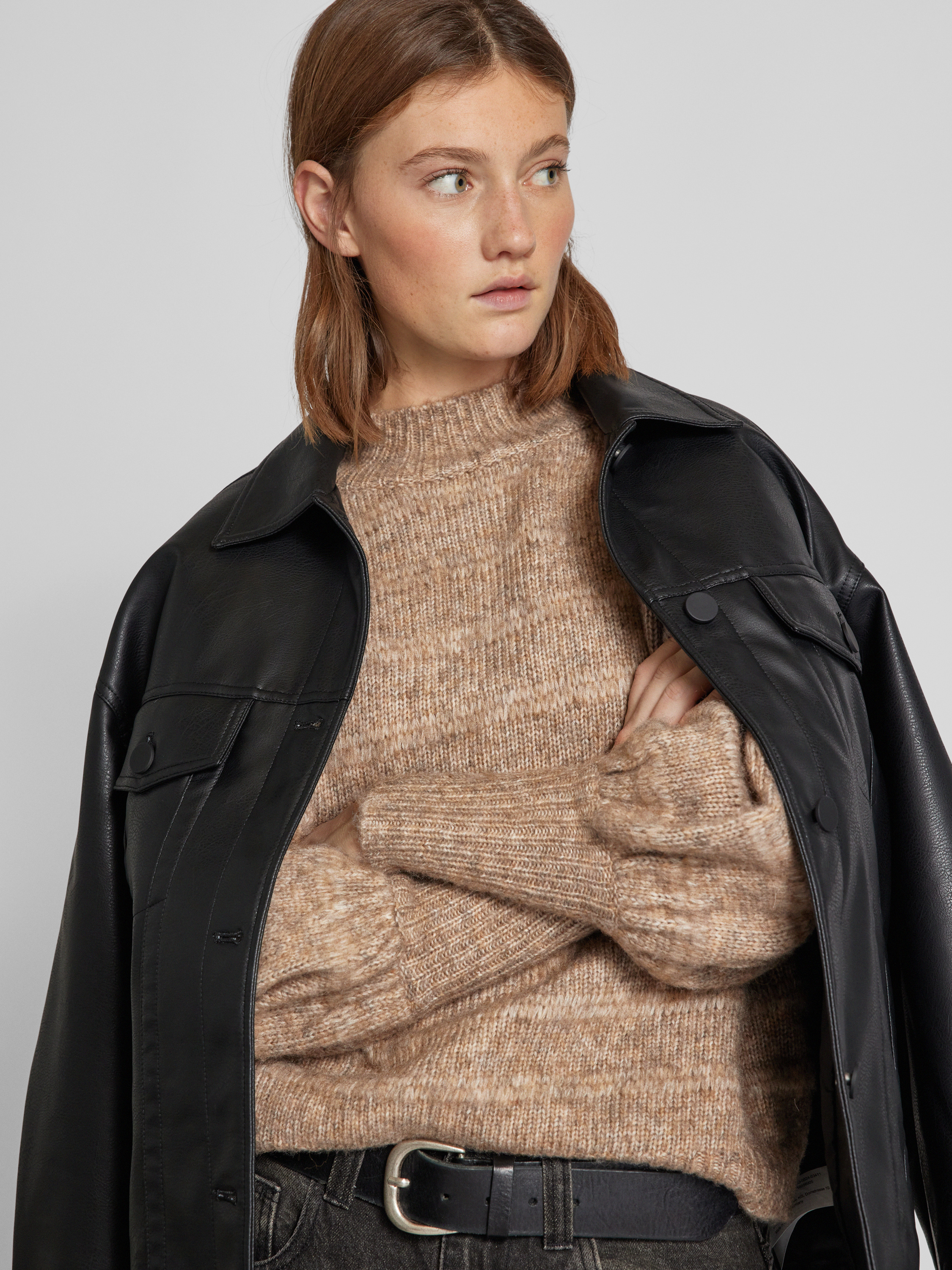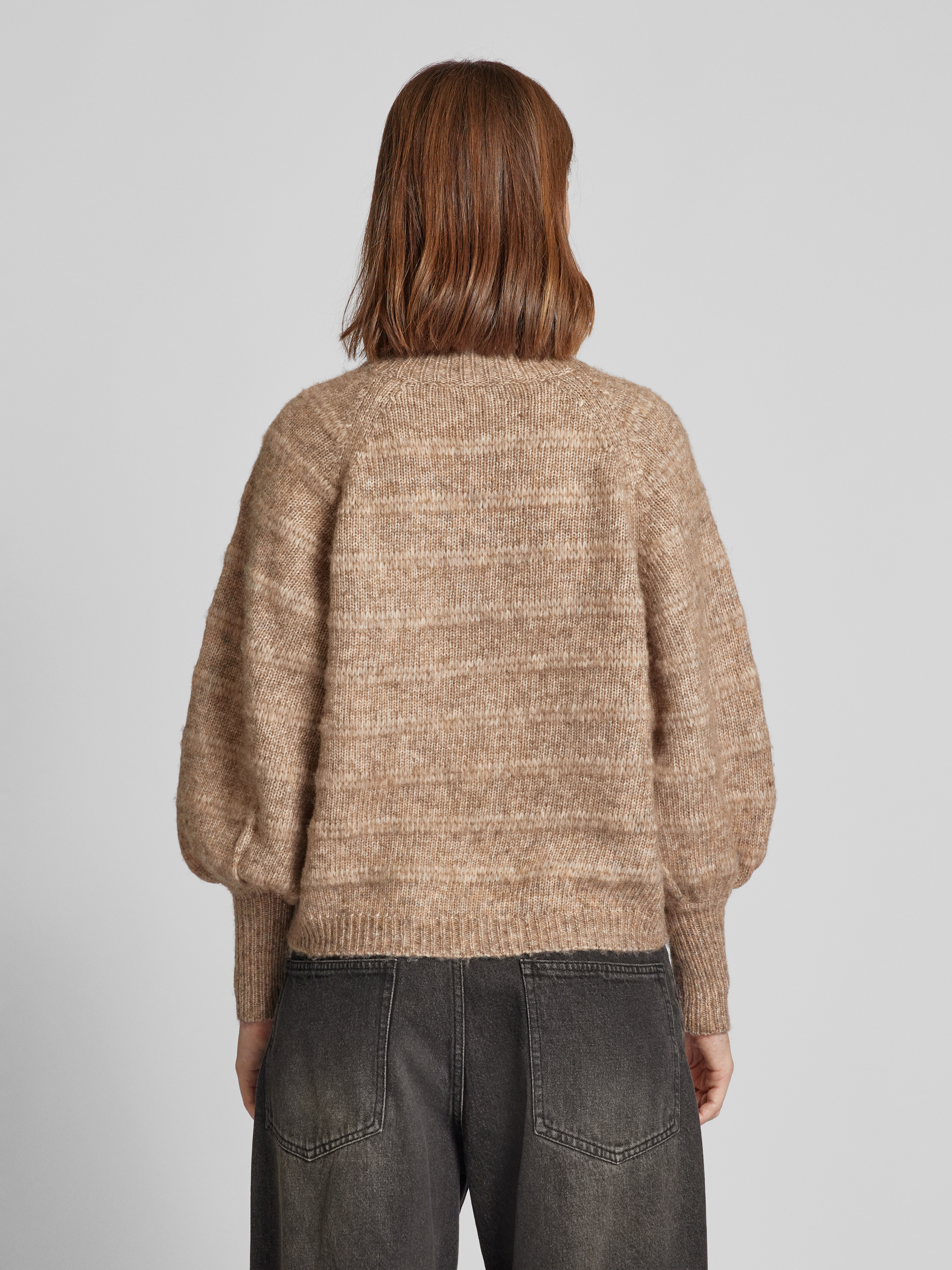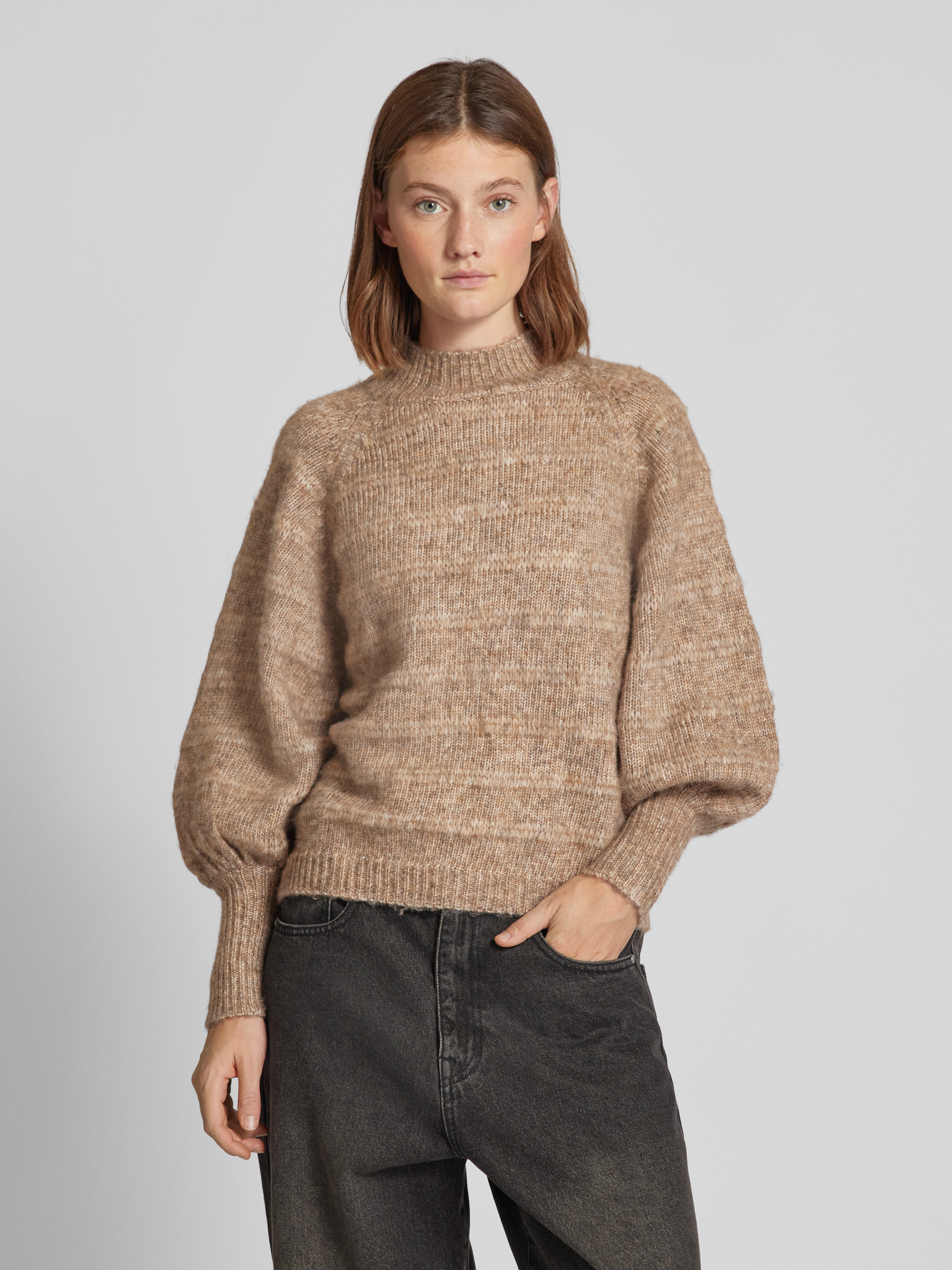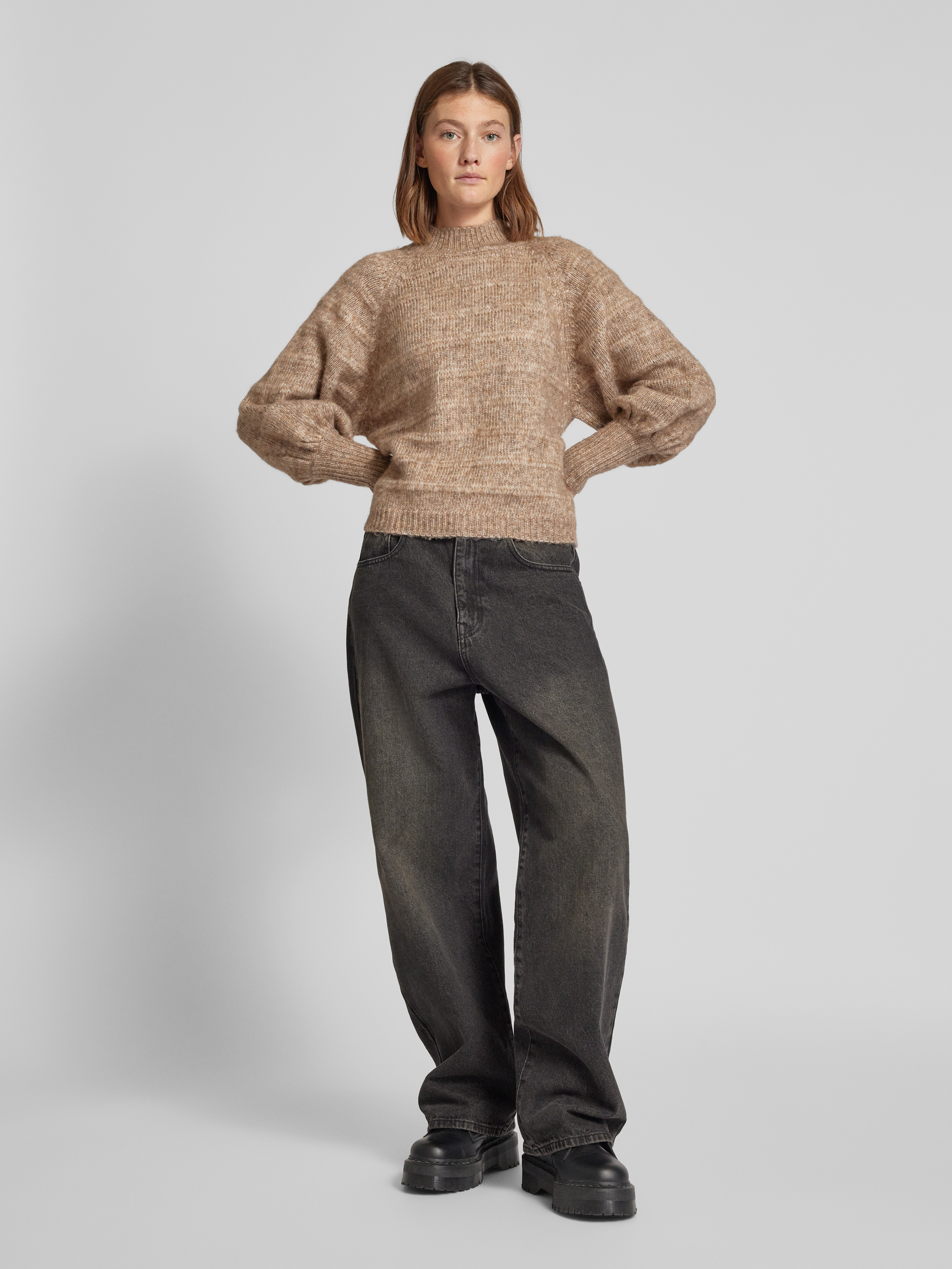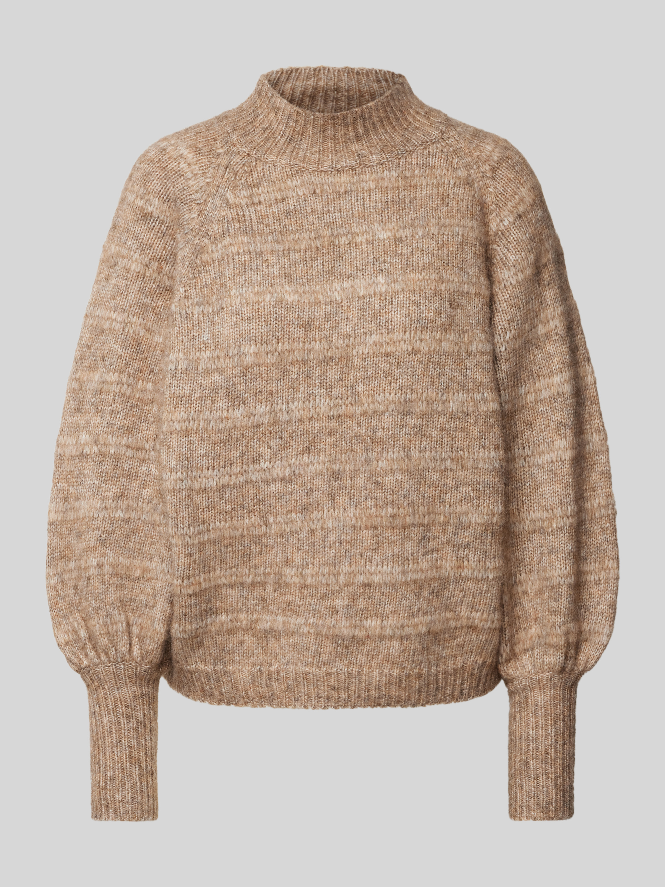 Der Regular Fit Strickpullover 'Celina' von Only vereint Komfort und Stil durch seine entspannte Passform und den eleganten Stehkragen. Mit Ballonärmeln und einem dezenten Woll-Anteil bietet er angenehme Wärme und eine weiche Haptik, ideal für kühle Tage.