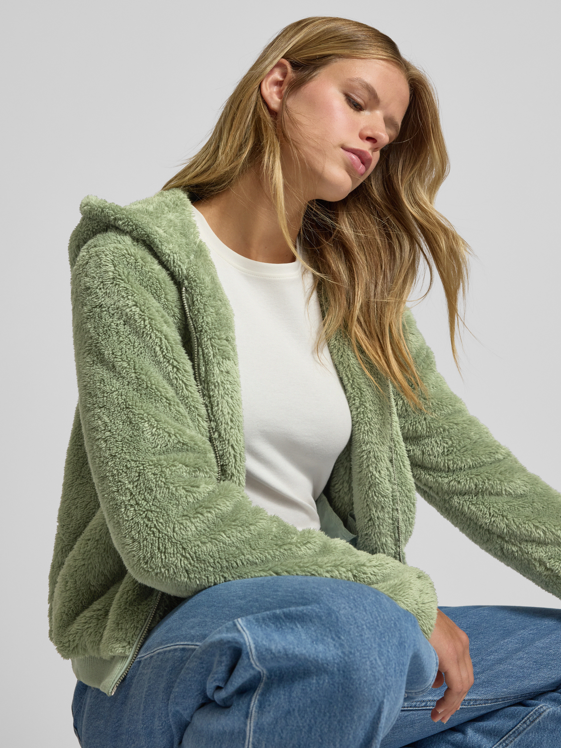 Die Damen Teddyfelljacke von Only, Modell New Anna, zeichnet sich durch ihren bequemen Regular Fit und die lässige Kapuze aus. Das unifarbene Design wirkt dezent, während das weiche Teddyfell ein angenehmes Tragegefühl vermittelt. Seitliche Taschen bieten Platz für Kleinigkeiten unterwegs.