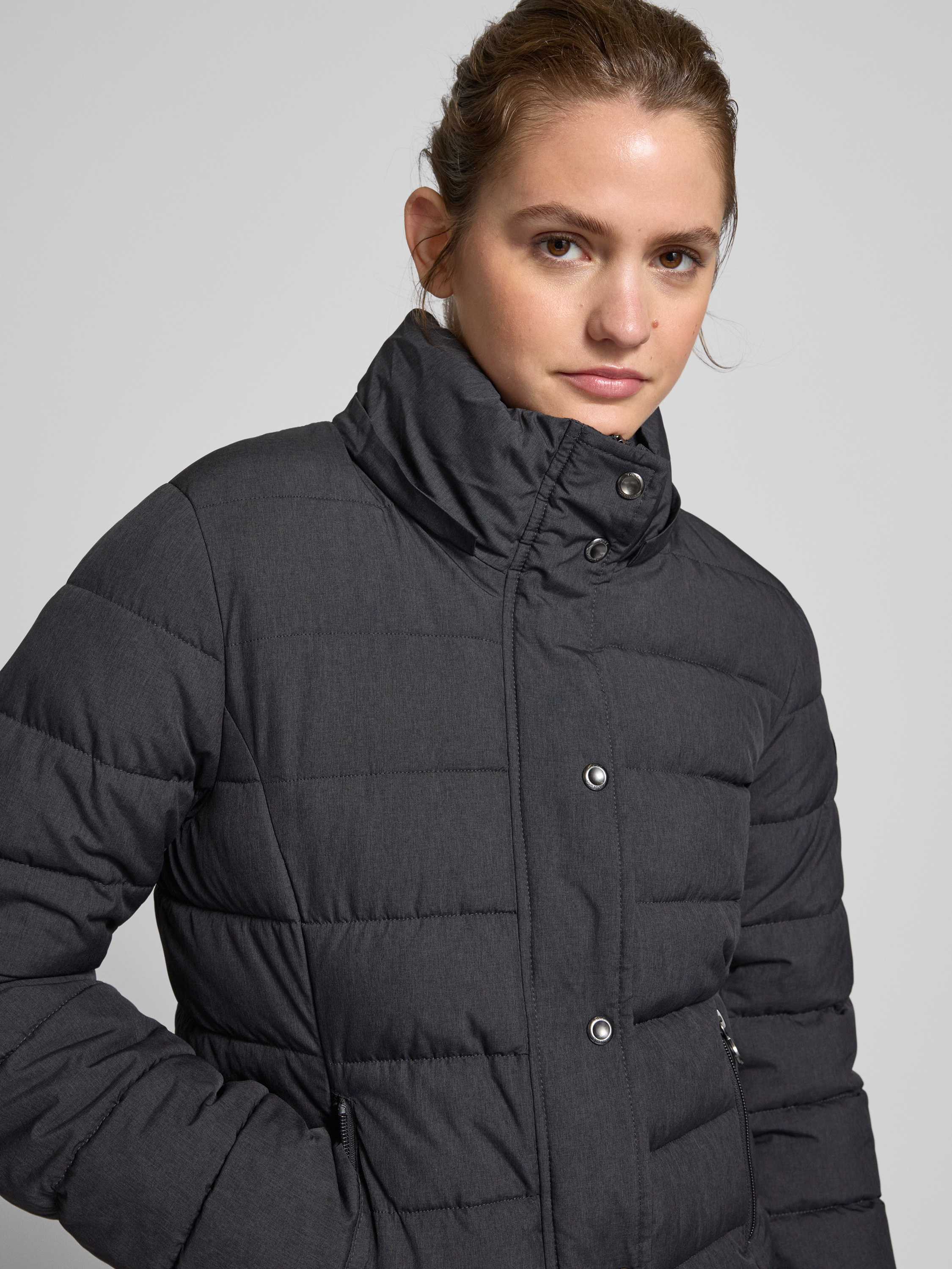Die Shaped Fit Steppjacke von Only, Modell 'NewLuna', vereint stilvolle Melange-Optik mit funktionaler Wärme. Die abnehmbare Kapuze mit Kunstfellbesatz bietet Flexibilität und Schutz bei wechselhaftem Wetter. Seitliche Reißverschlusstaschen ergänzen das Design, das sich ideal für kühle Tage eignet.