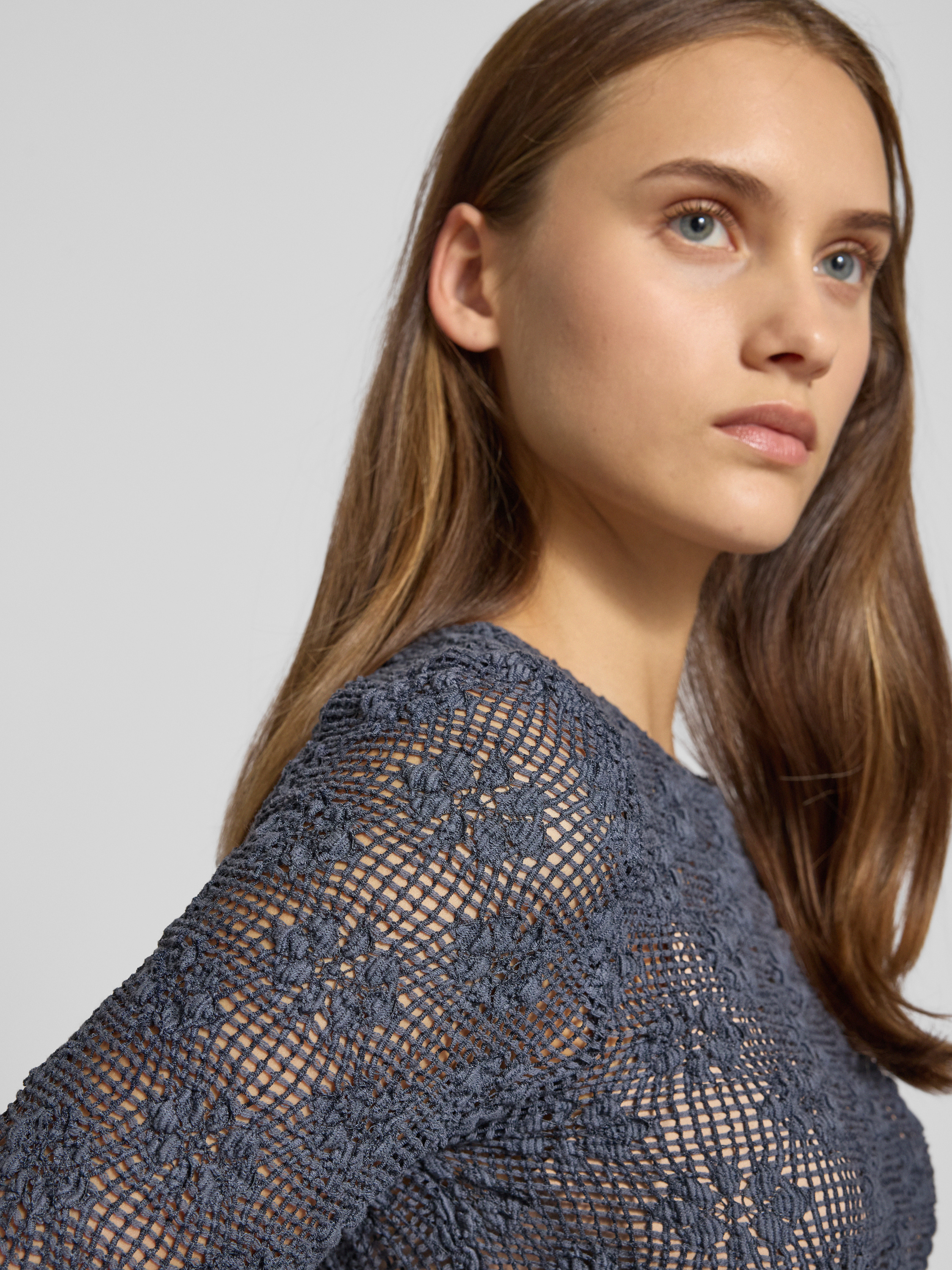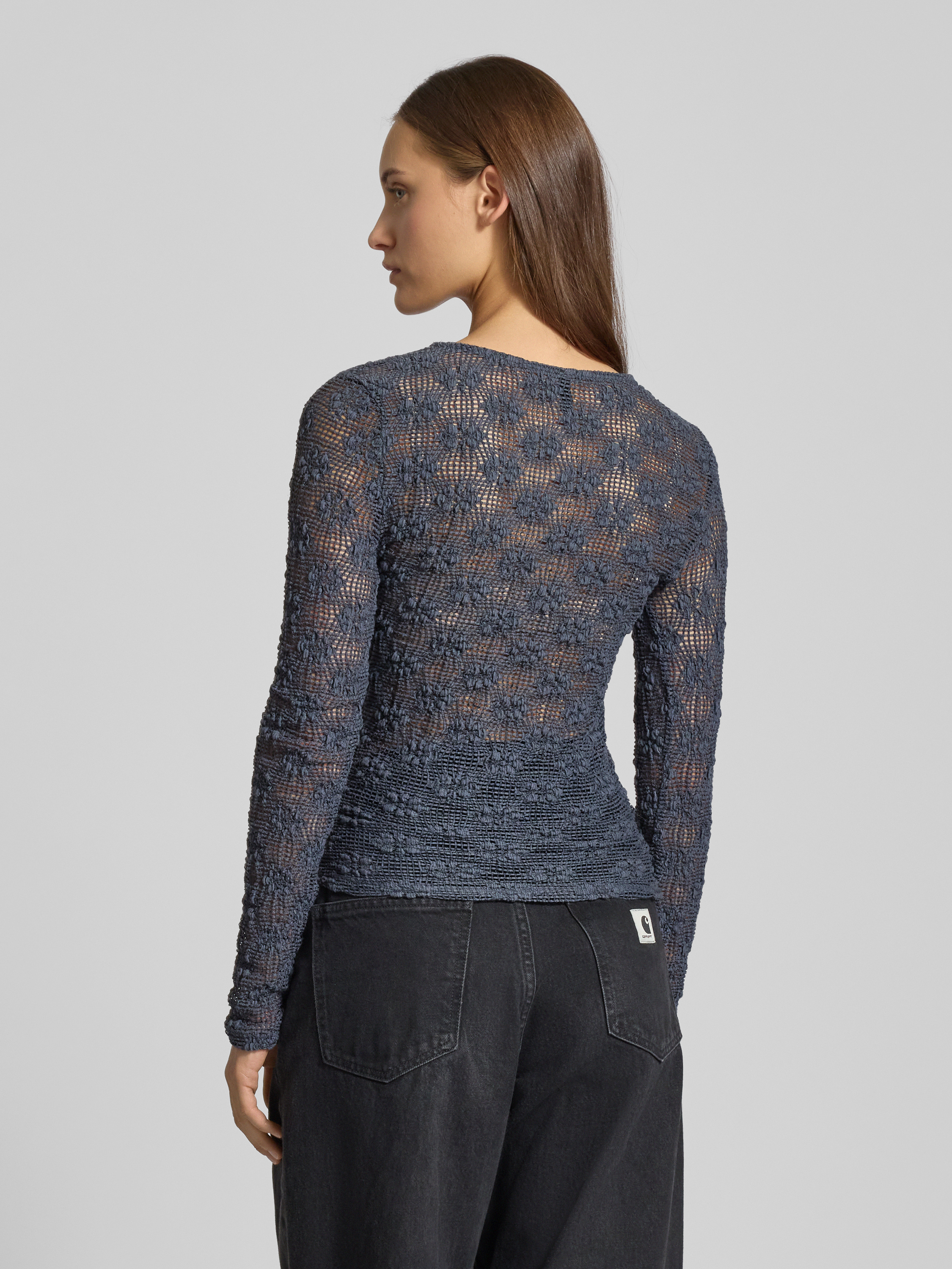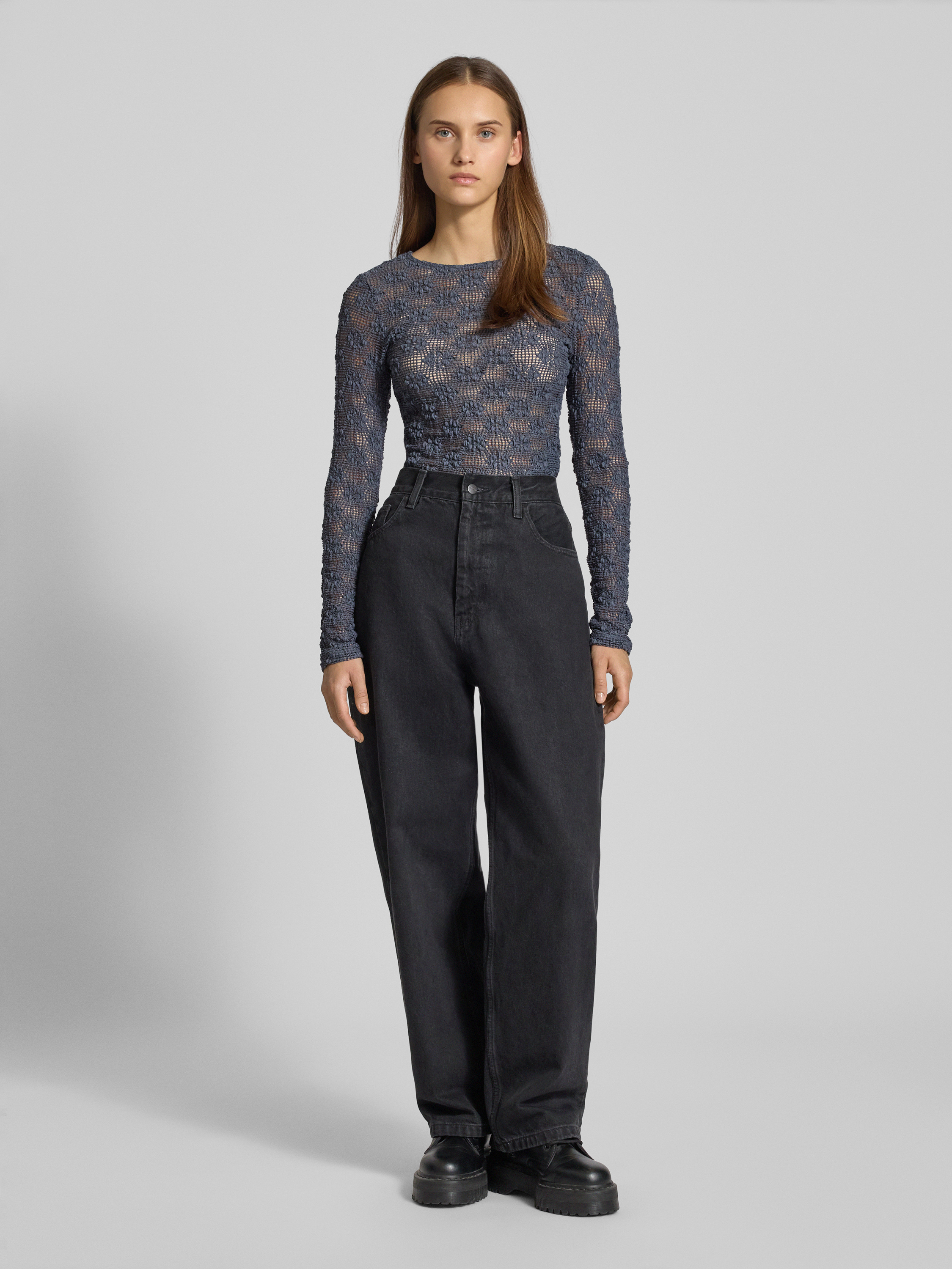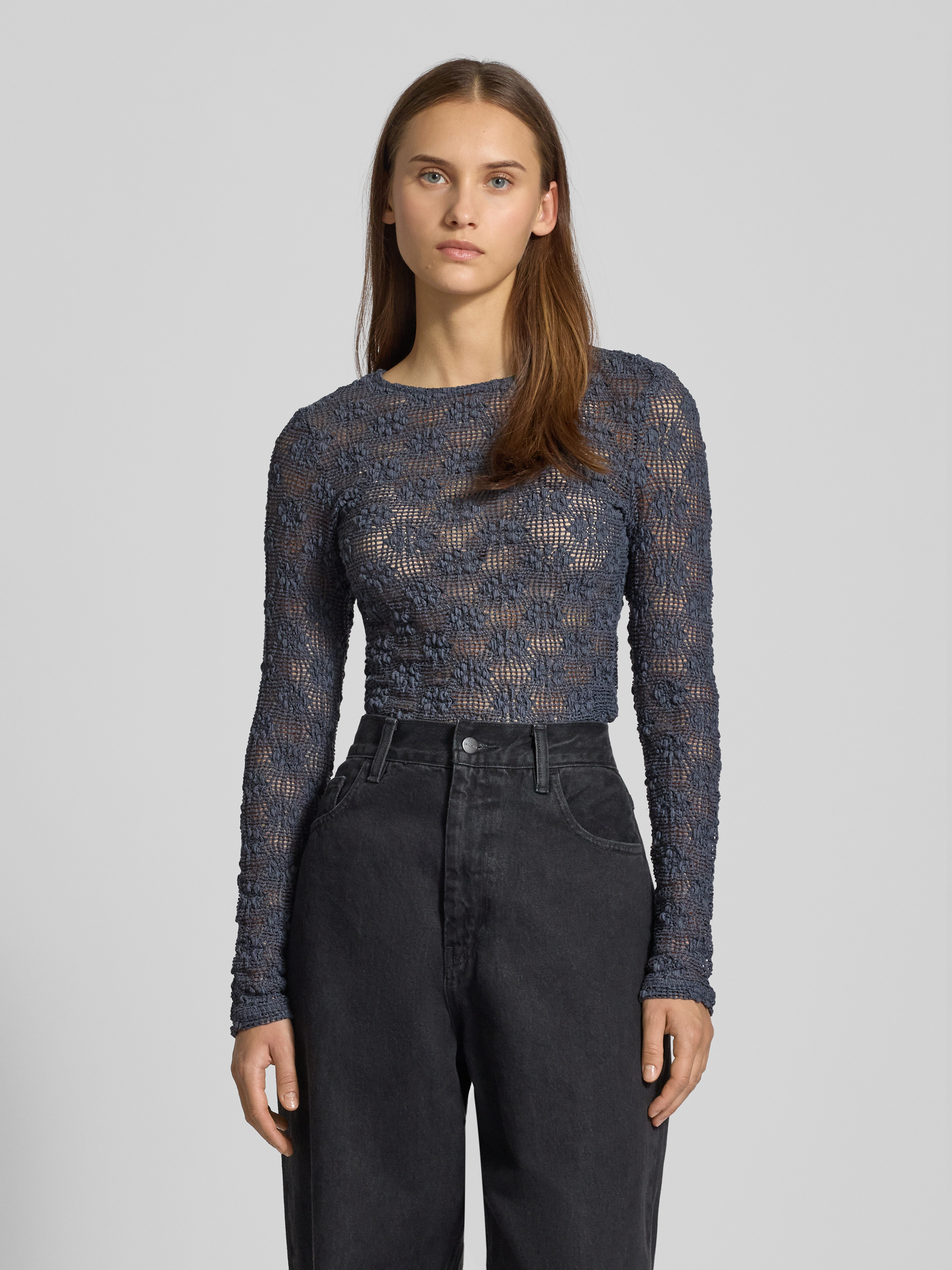 OnlySlim Fit Langarmshirt aus Baumwoll-Mix Modell 'LOLA' in rauchblau