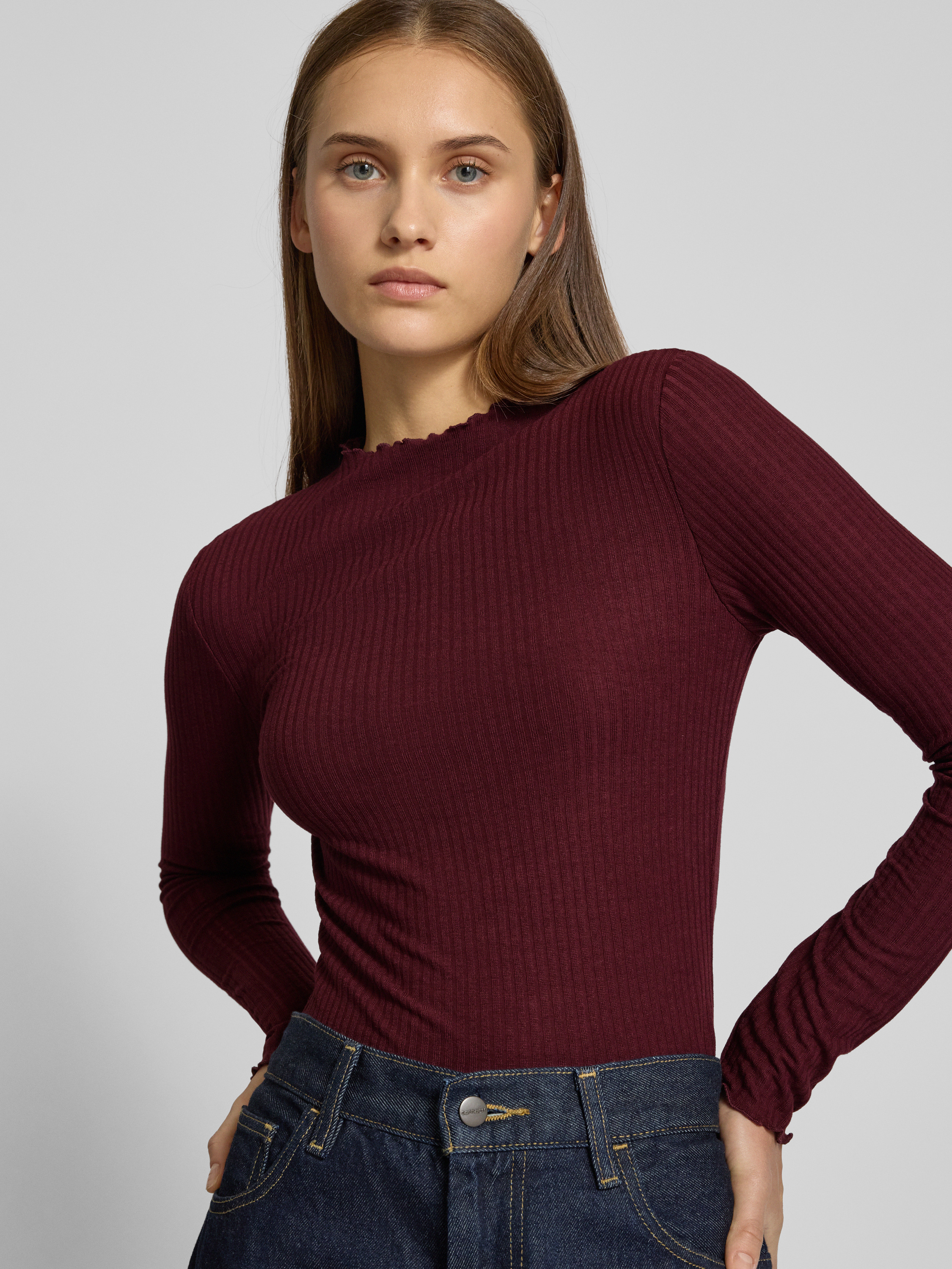 OnlySlim Fit Langarmshirt mit Viskose-Anteil Modell 'LEMMA' in bordeaux