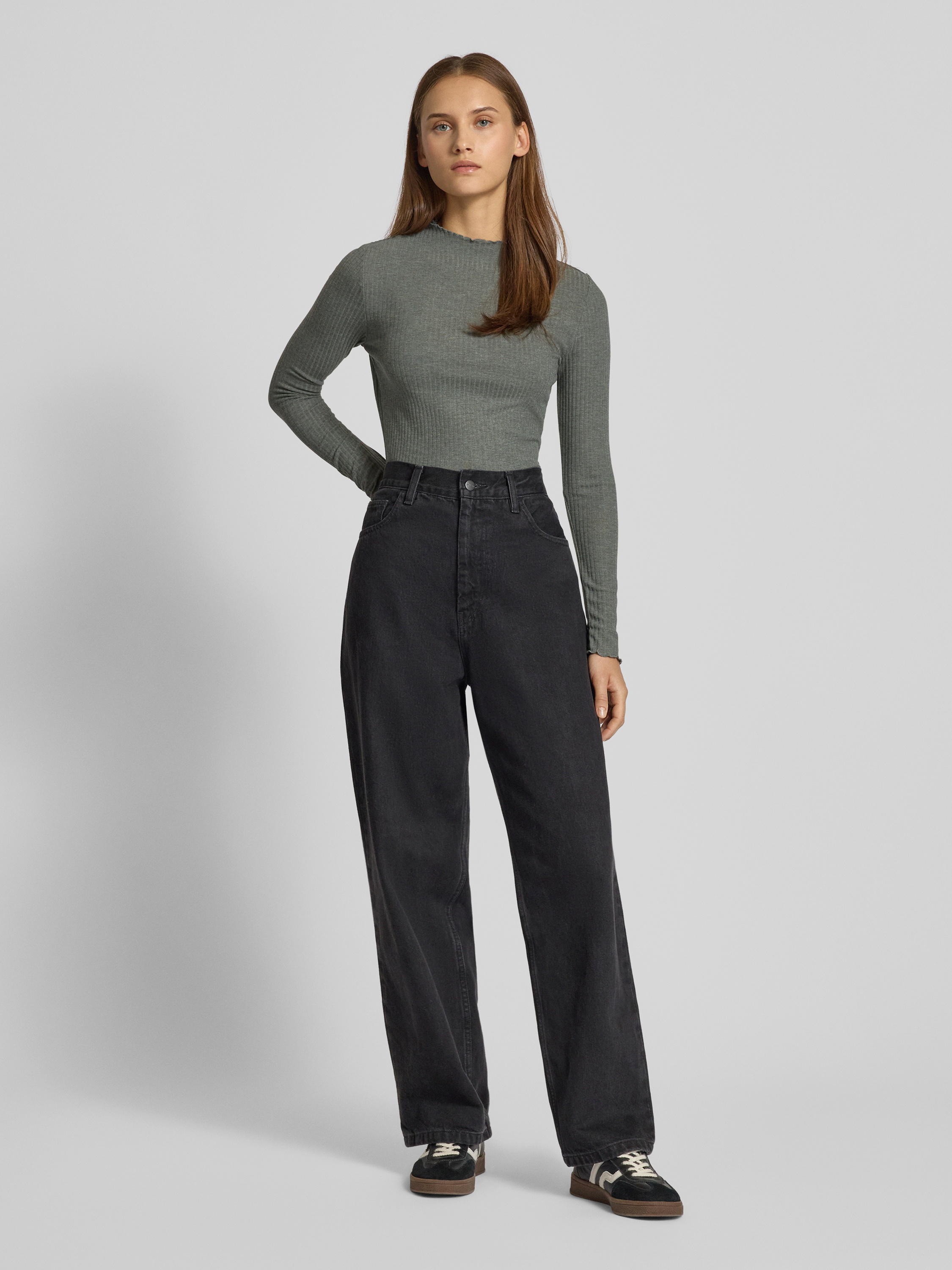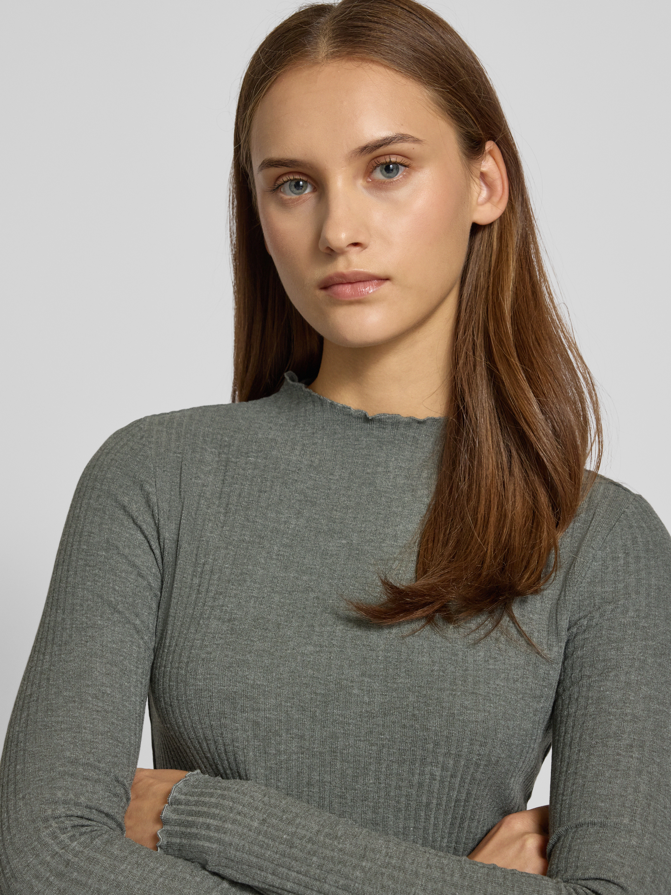 Das Damen Langarmshirt von Only, Modell Lemma, liegt mit seinem schlanken Schnitt angenehm an und bringt durch den Mock Neck dezente Eleganz in den Alltag. Unifarbene Optik und feiner Ripp-Jersey sorgen für eine moderne, vielseitig kombinierbare Grundlage. Frill-Abschlüsse setzen dabei sanfte Akzente.