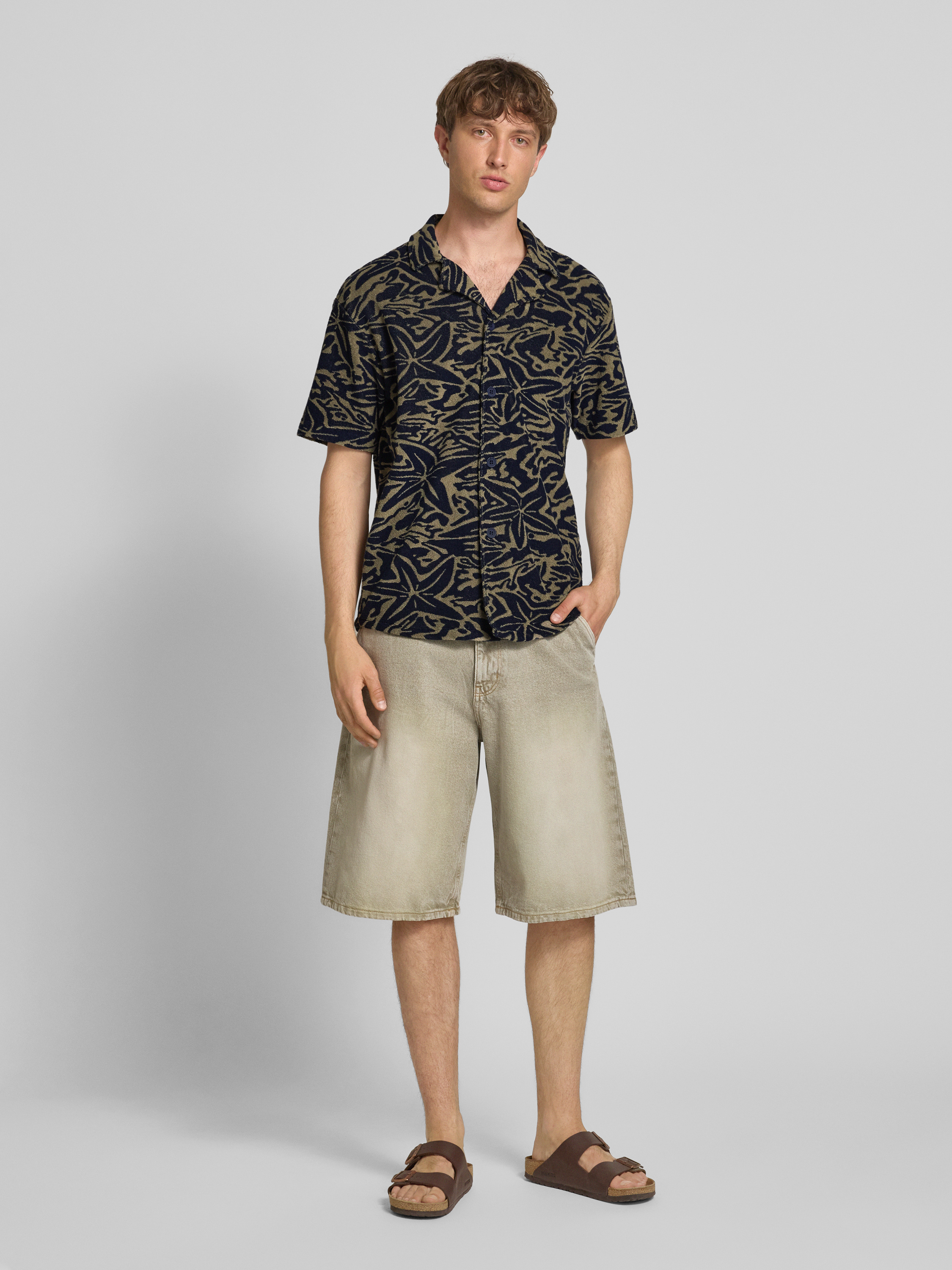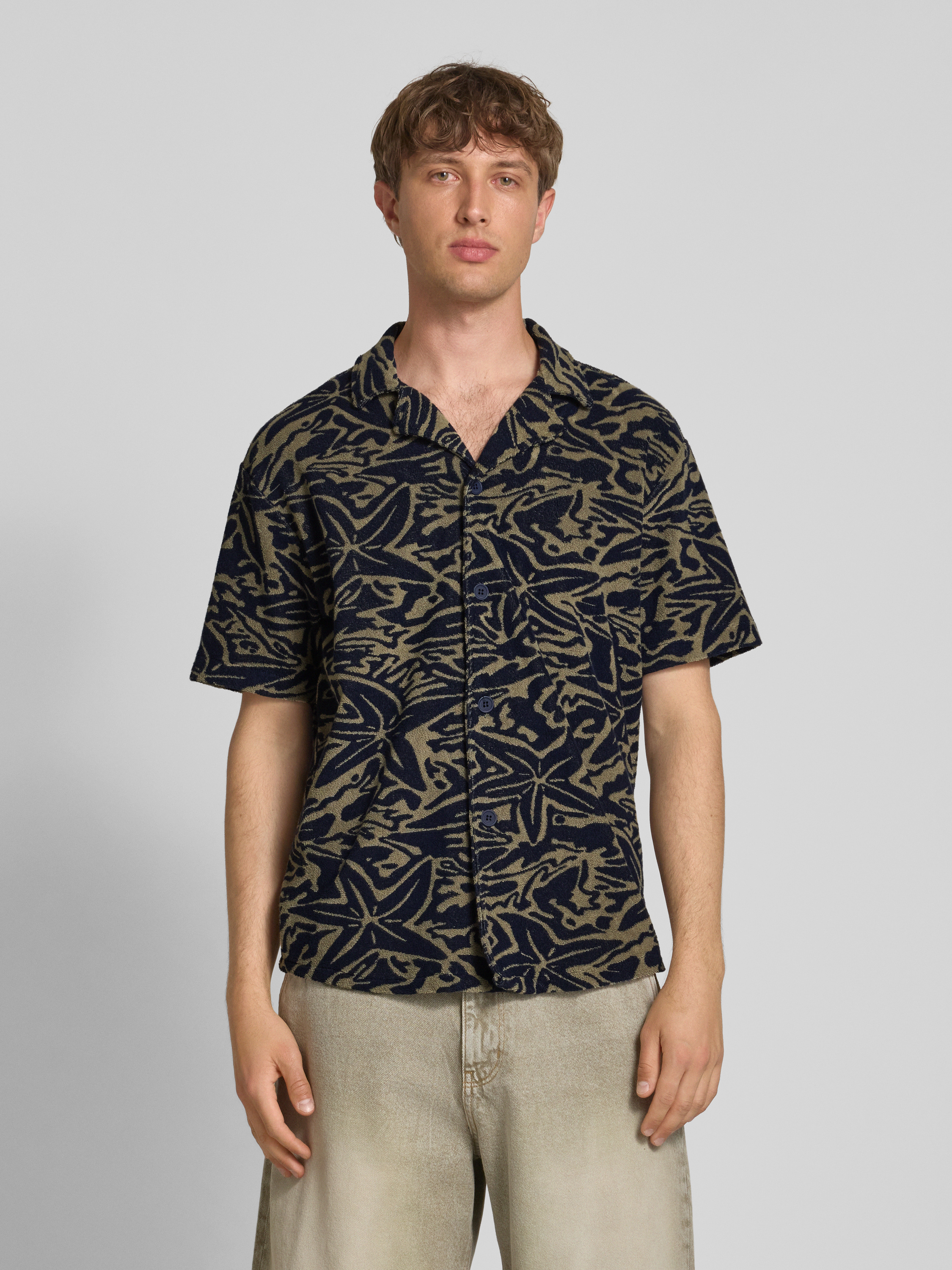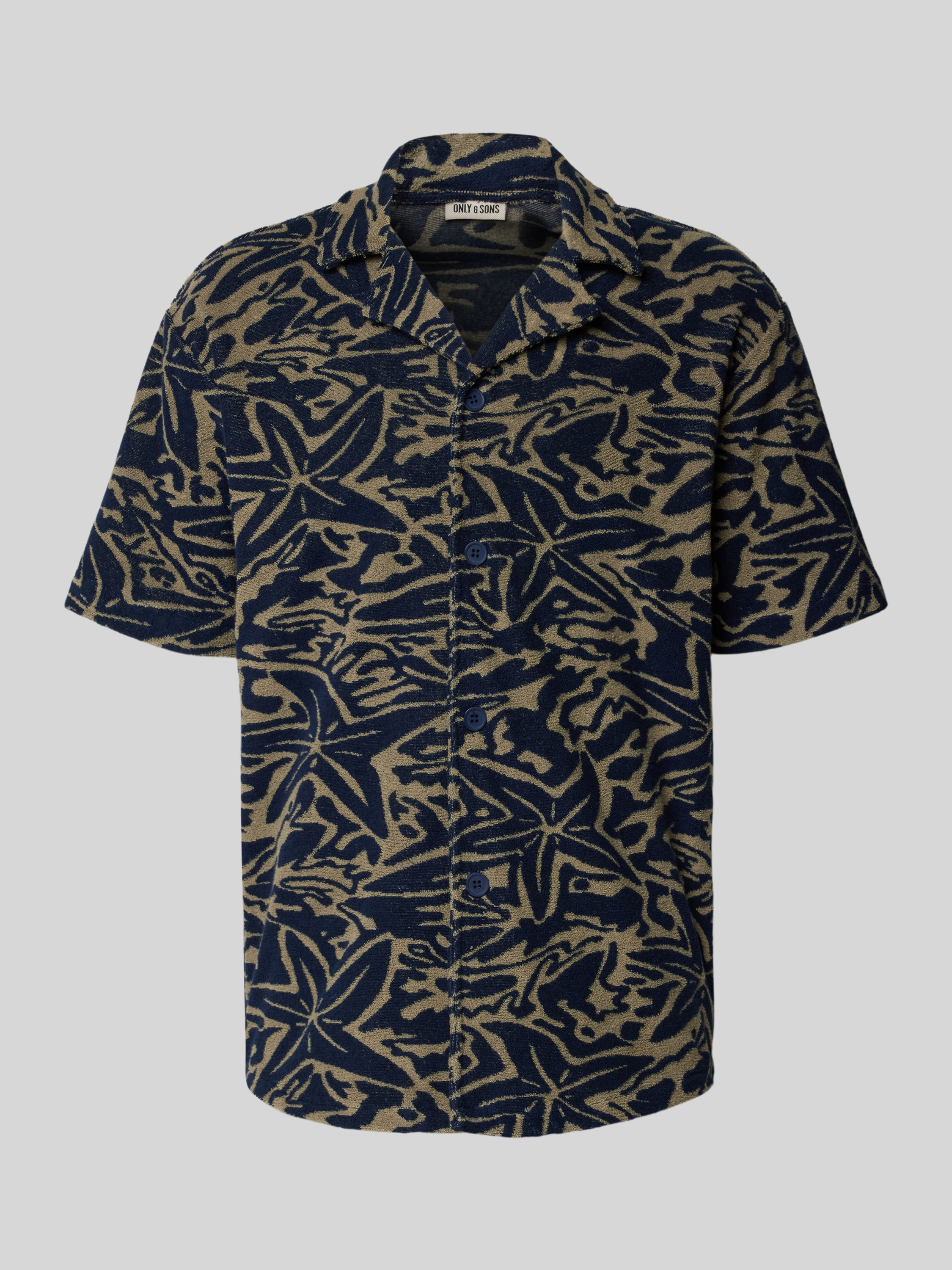 Das Herrenhemd von Only & Sons, Modell Searl, zeigt sich mit lässigem Relaxed Fit und einem Vario-Kragen, der für flexible Tragemöglichkeiten sorgt. Das Allover-Muster unterstreicht den unkomplizierten Look, während die weiche Frottee-Verarbeitung angenehm auf der Haut liegt. Kurze Ärmel runden das entspannte Design ab.