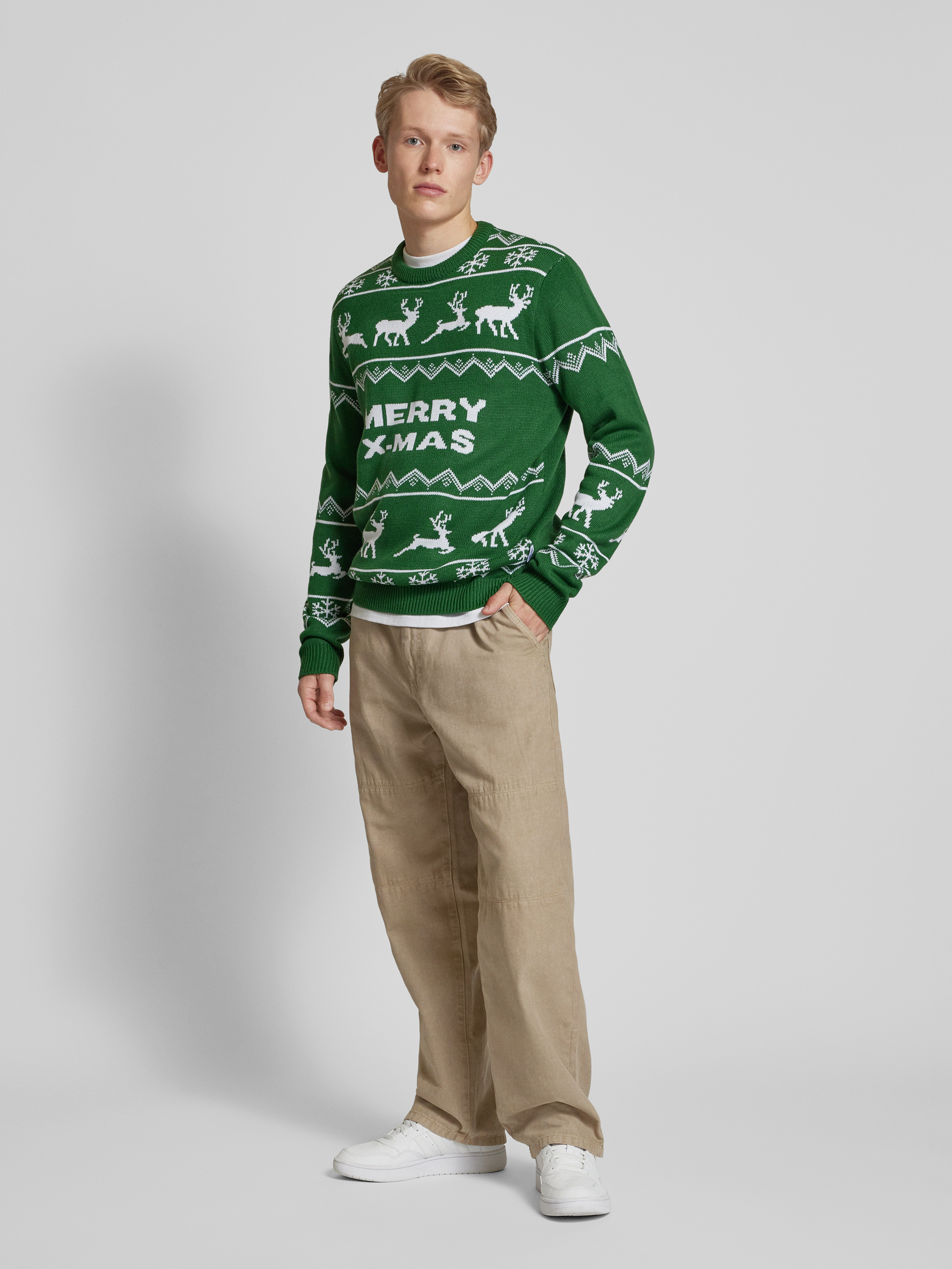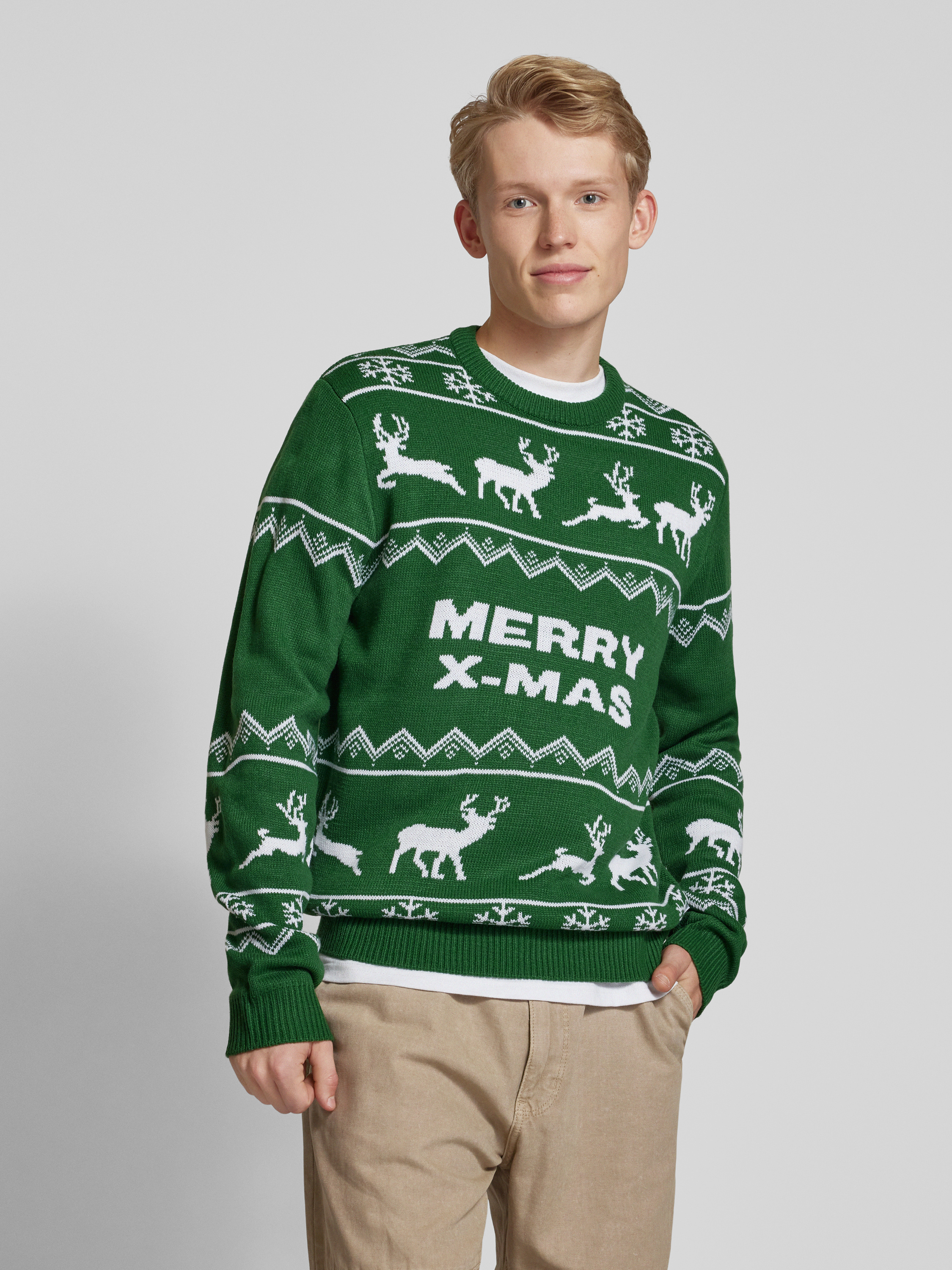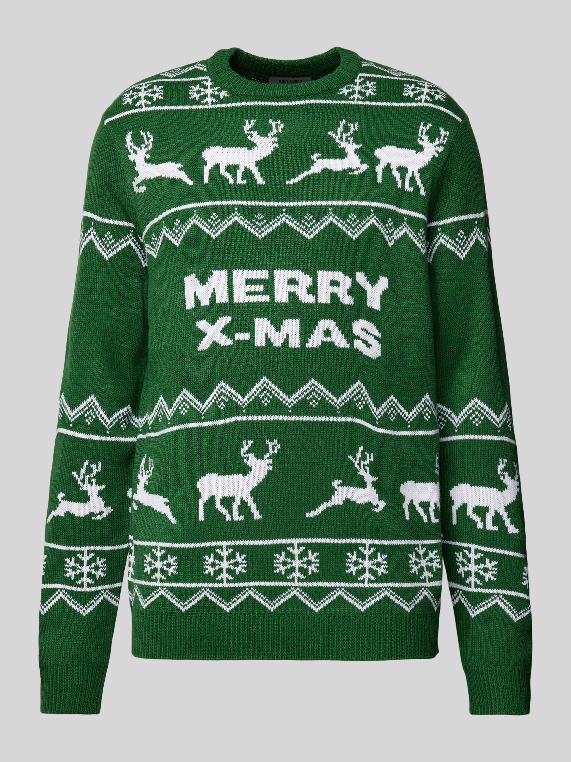 Only & SonsStrickpullover mit Motiv- und Statement-Stitching Modell 'XMAS' in gruen