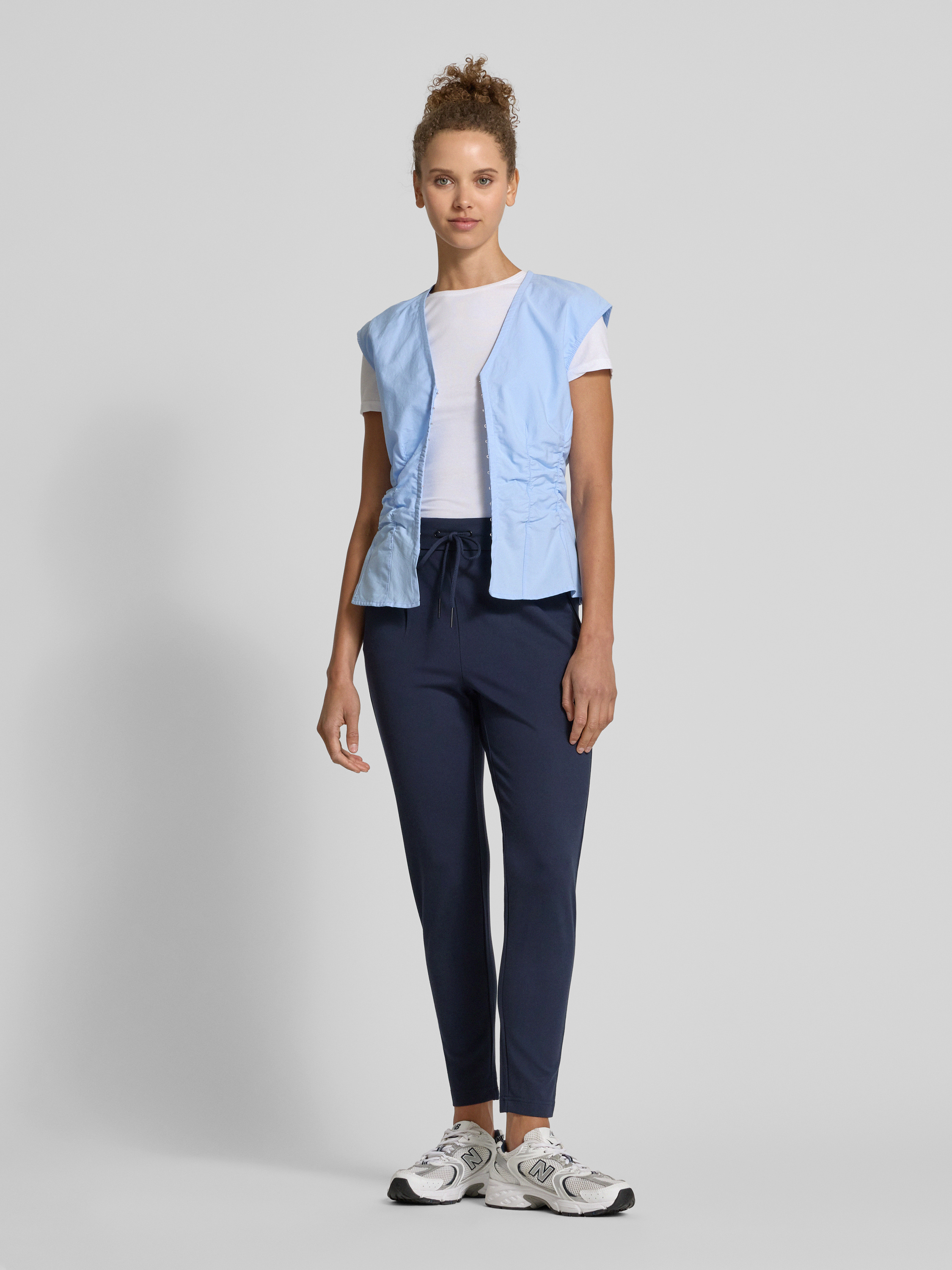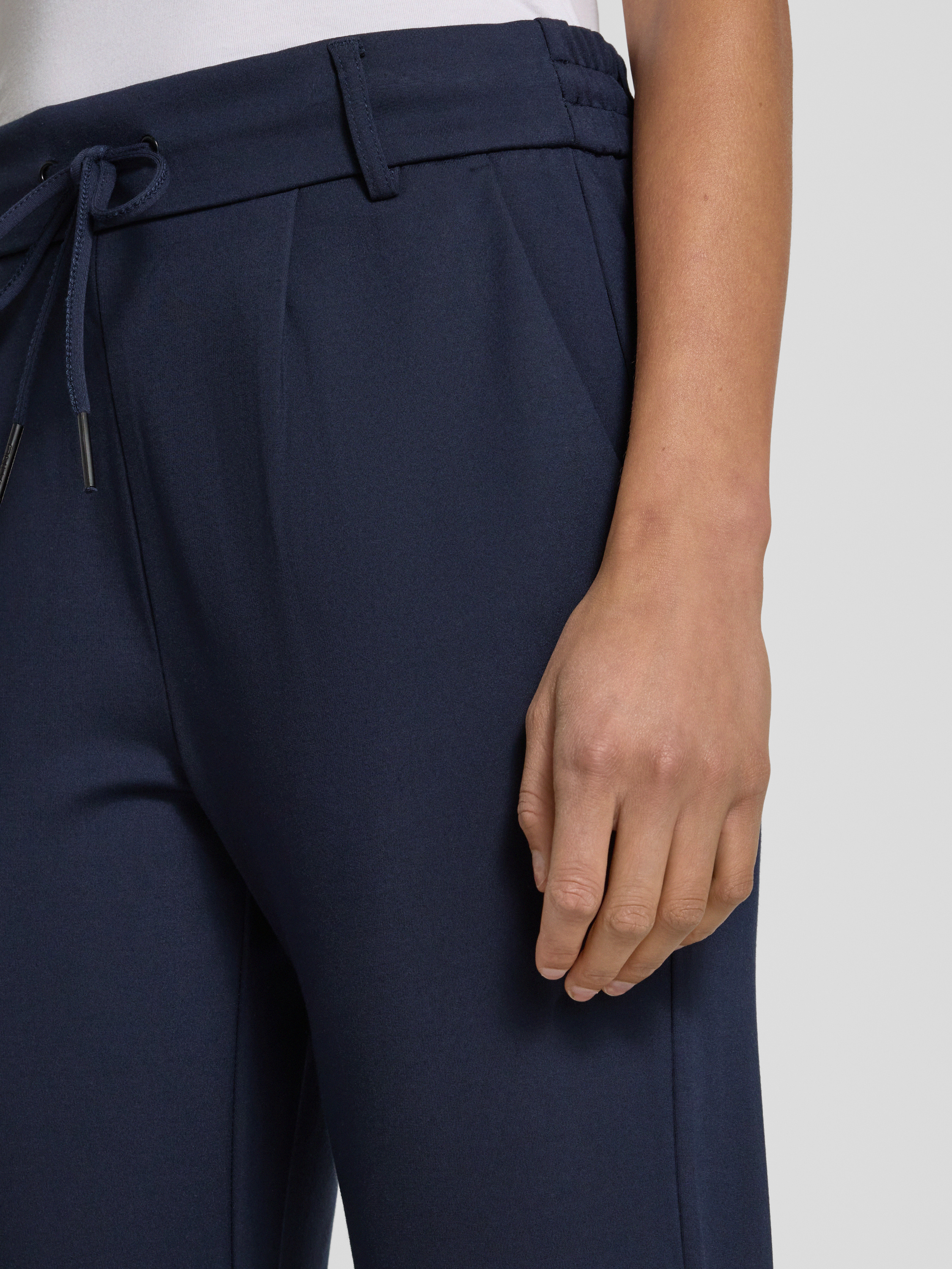 Die Stoffhose Poptrash von Only zeichnet sich durch ihre Viskosemischung mit Stretch-Anteil aus, die Bewegungsfreiheit und Komfort gewährleistet. Der lockere Schnitt und der elastische Bund mit Tunnelzug bieten eine entspannte Passform, während seitliche Eingrifftaschen und Zierleisten am Gesäß funktionale Details hinzufügen. Bundfalten verleihen der Hose eine stilvolle Note.