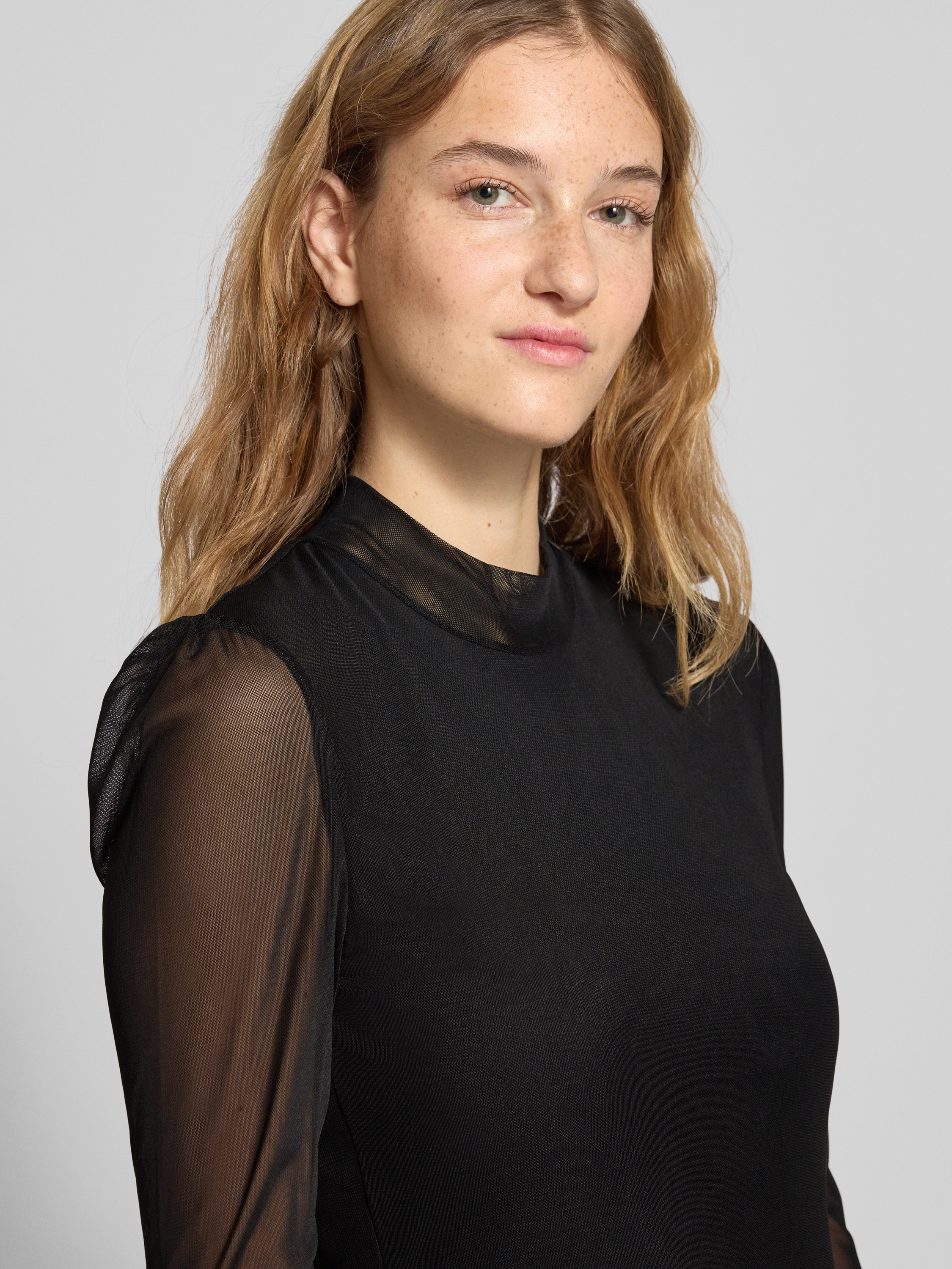 Das taillierte Minikleid von Only, Modell 'Erica', bringt mit seiner schmalen Silhouette und dem hochgeschlossenen Ausschnitt frischen Schwung in die Garderobe. Unifarbene Optik und semitransparente Ärmel setzen subtile Akzente, während der Mesh-Stoff angenehm leicht auf der Haut liegt. Die Mini-Länge eignet sich ideal für vielseitige Kombinationen.