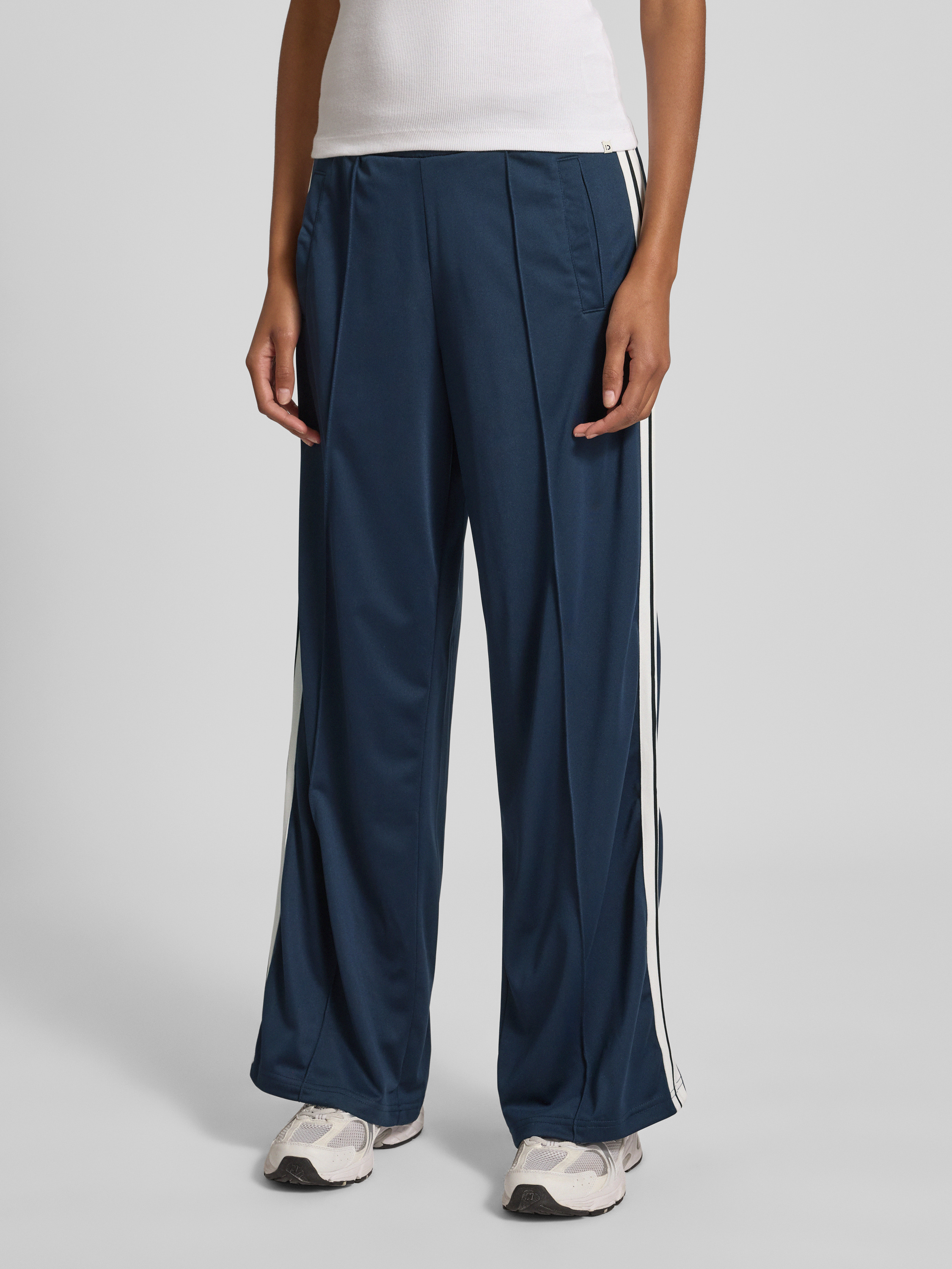 Die Wide Leg Sweatpants von Only, Modell 'Sports', zeichnen sich durch ihren lässigen Schnitt aus, der viel Bewegungsfreiheit bietet. Die fixierten Bügelfalten verleihen der Hose Struktur, während die Kontraststreifen einen modernen Akzent setzen. Seitliche Eingrifftaschen ergänzen den praktischen Komfort.