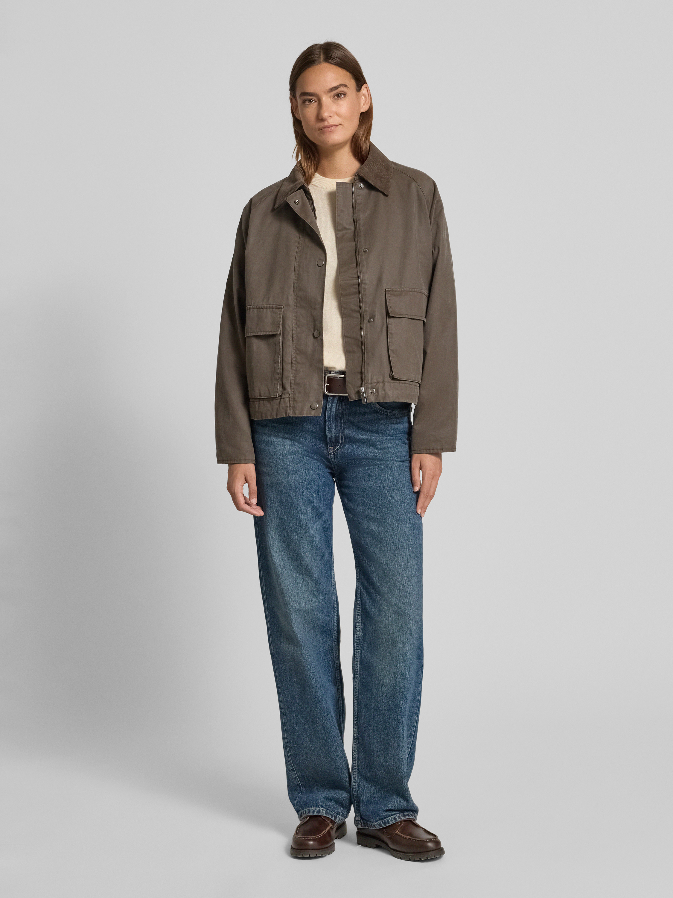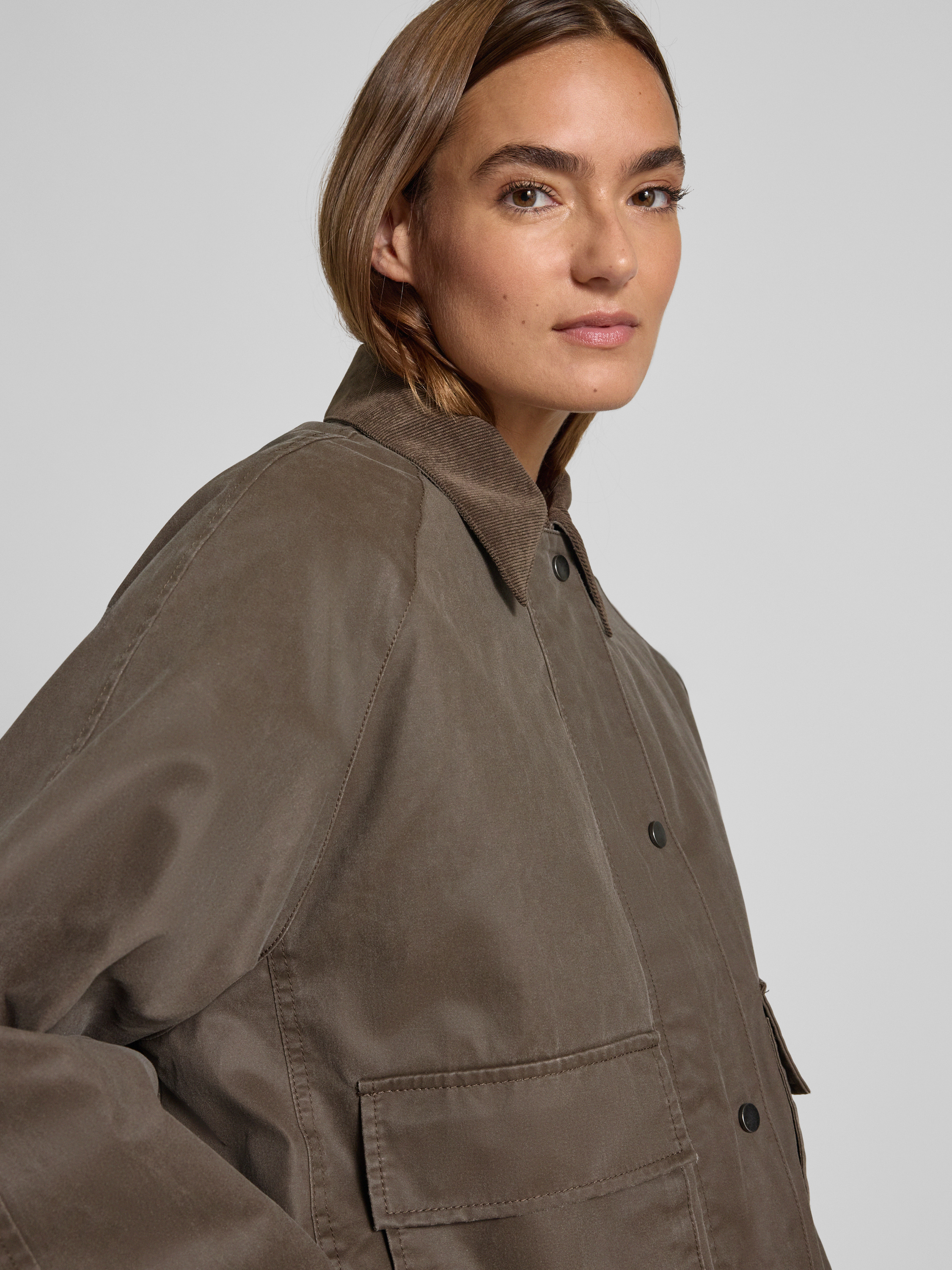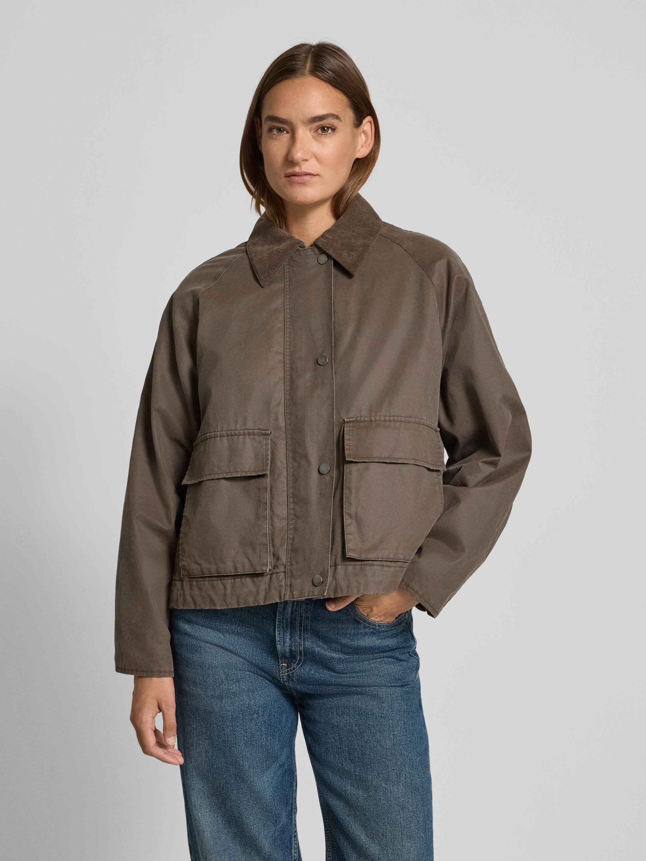Die Damen Jacke Hamine von OPUS kombiniert einen klassischen Umlegekragen mit praktischen Pattentaschen, wodurch sich verschiedene Looks unkompliziert gestalten lassen. Der Regular Fit sorgt für angenehme Bewegungsfreiheit und einen entspannten Sitz. Dank des Baumwoll-Mix bleibt das Tragegefühl den ganzen Tag über angenehm.