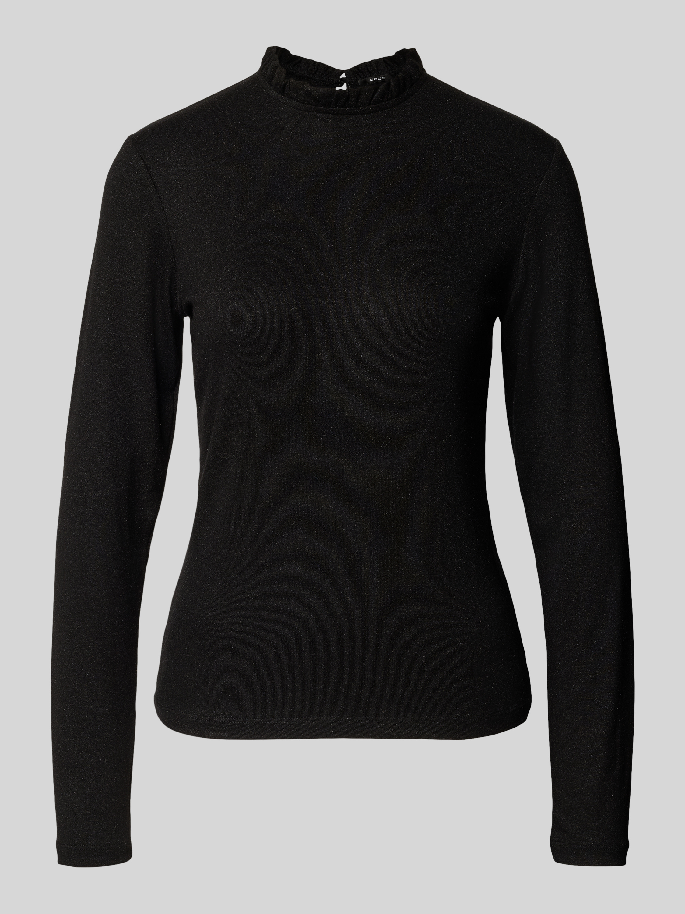 Das Damen Longsleeve von OPUS im Modell 'Sanba' schmiegt sich durch den Viskose-Mix mit Stretch-Anteil angenehm an den Körper an. Der Stehkragen verleiht dem Slim Fit eine klare, moderne Linie und sorgt so für ein vielseitig kombinierbares Oberteil. Dank der durchdachten Passform fühlt man sich im Alltag ebenso wohl wie beim Ausgehen.