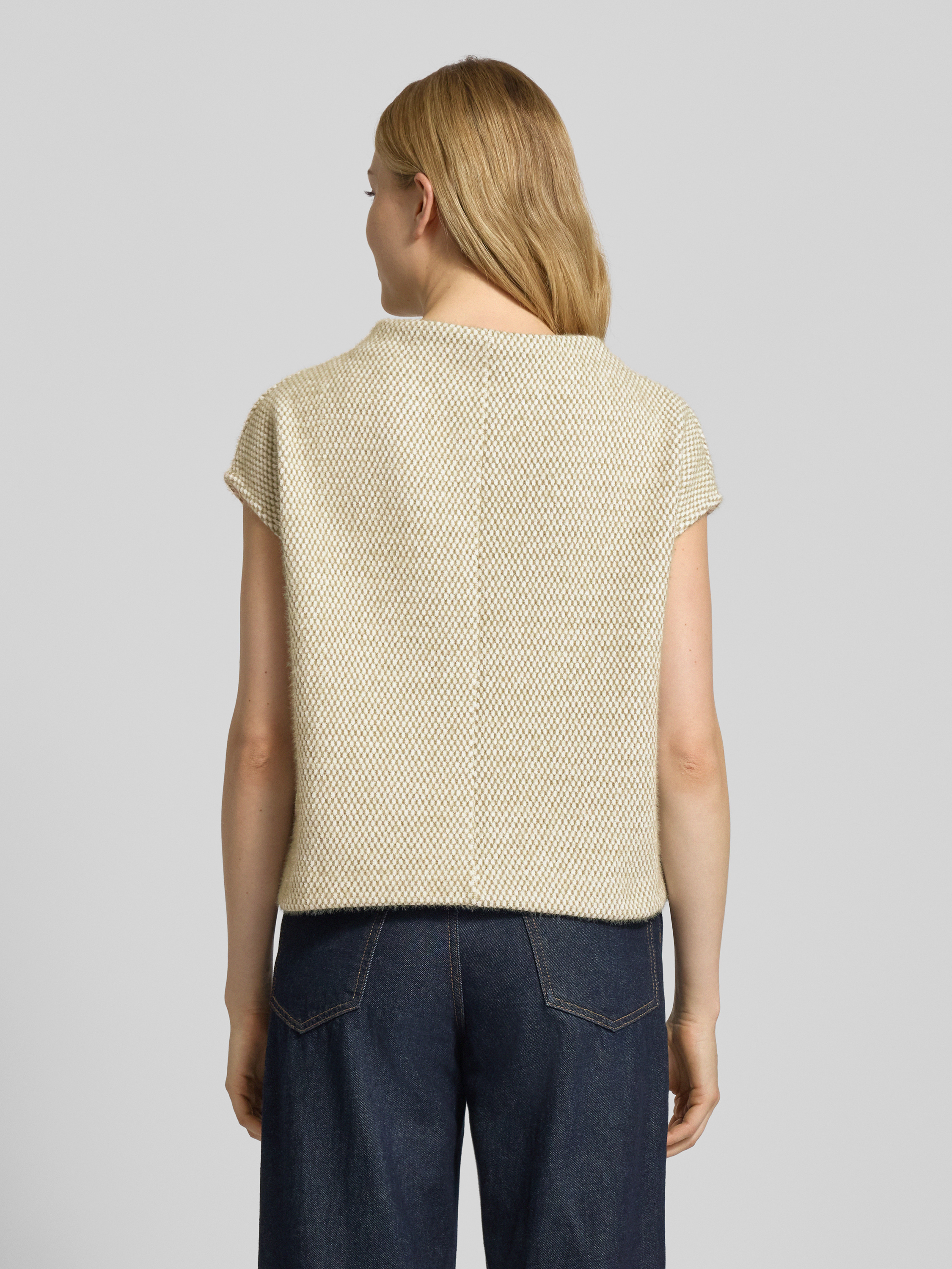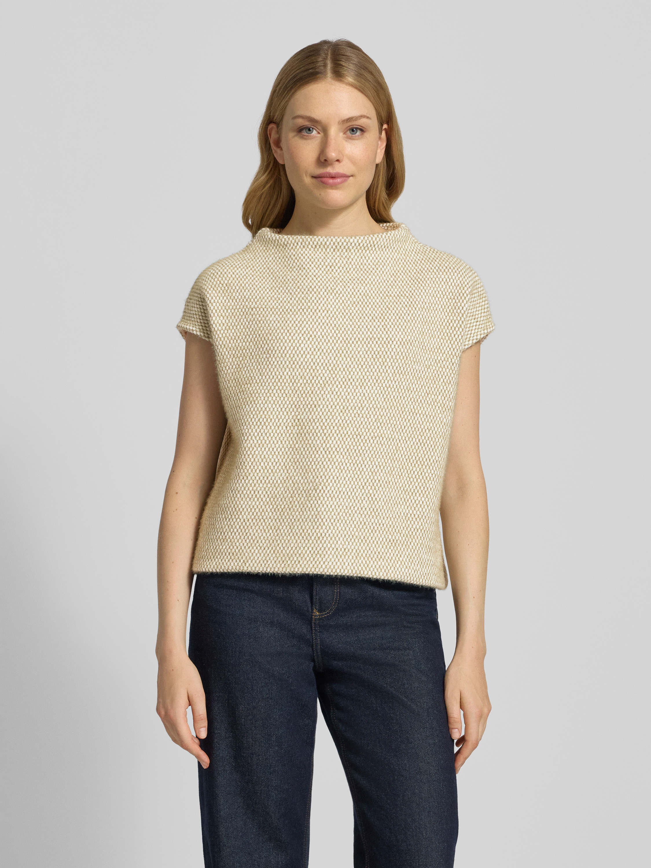 Der Damen Pullunder von OPUS im Modell Gofir zeigt sich in Regular Fit und fällt durch den bequemen Rundhalsausschnitt angenehm auf. Kappärmel verleihen dem Look eine dezente Modernität, während der gerade Schnitt vielseitige Kombinationsmöglichkeiten eröffnet. So lässt sich der Pullunder unkompliziert in verschiedene Outfits einfügen.