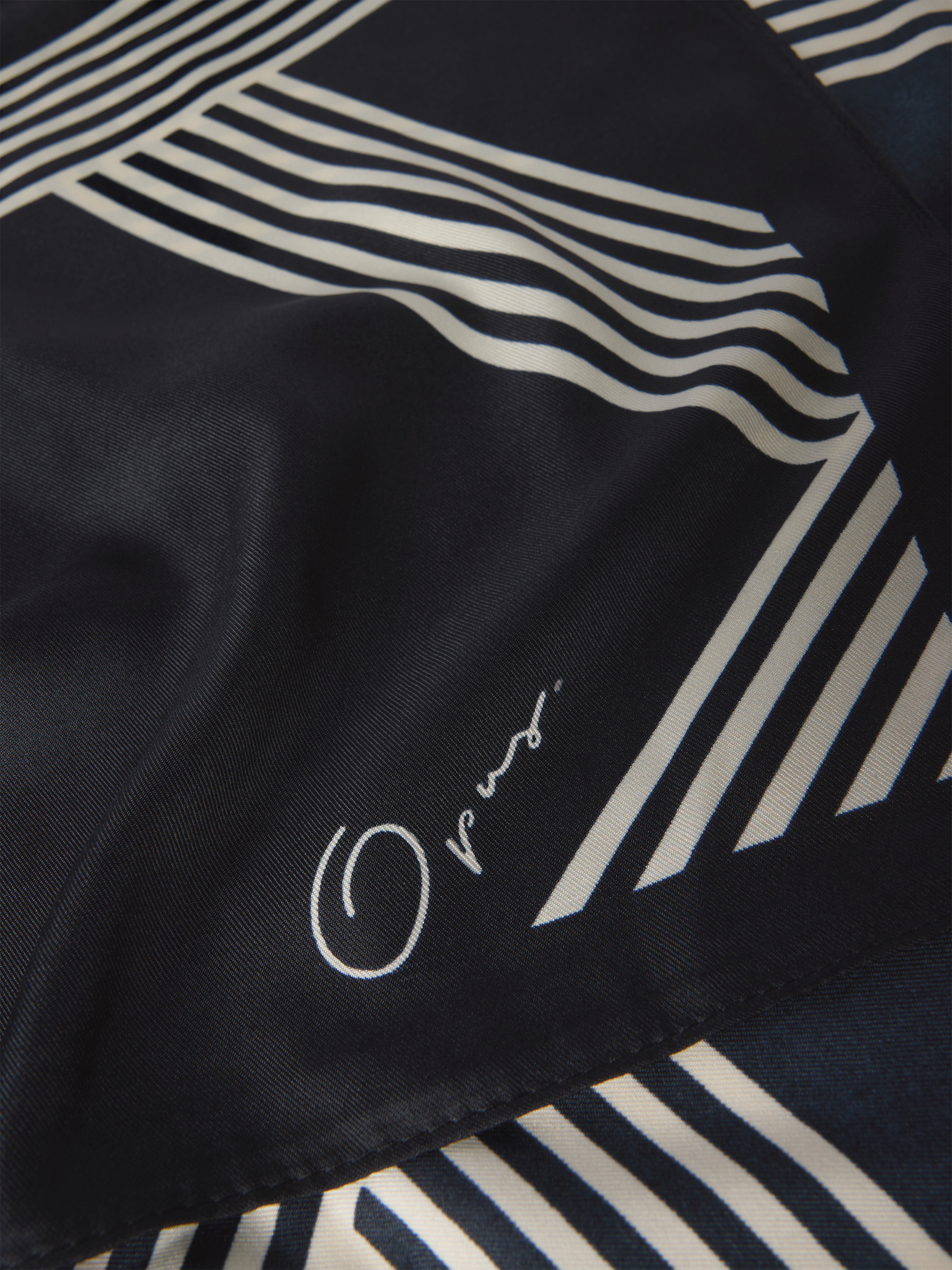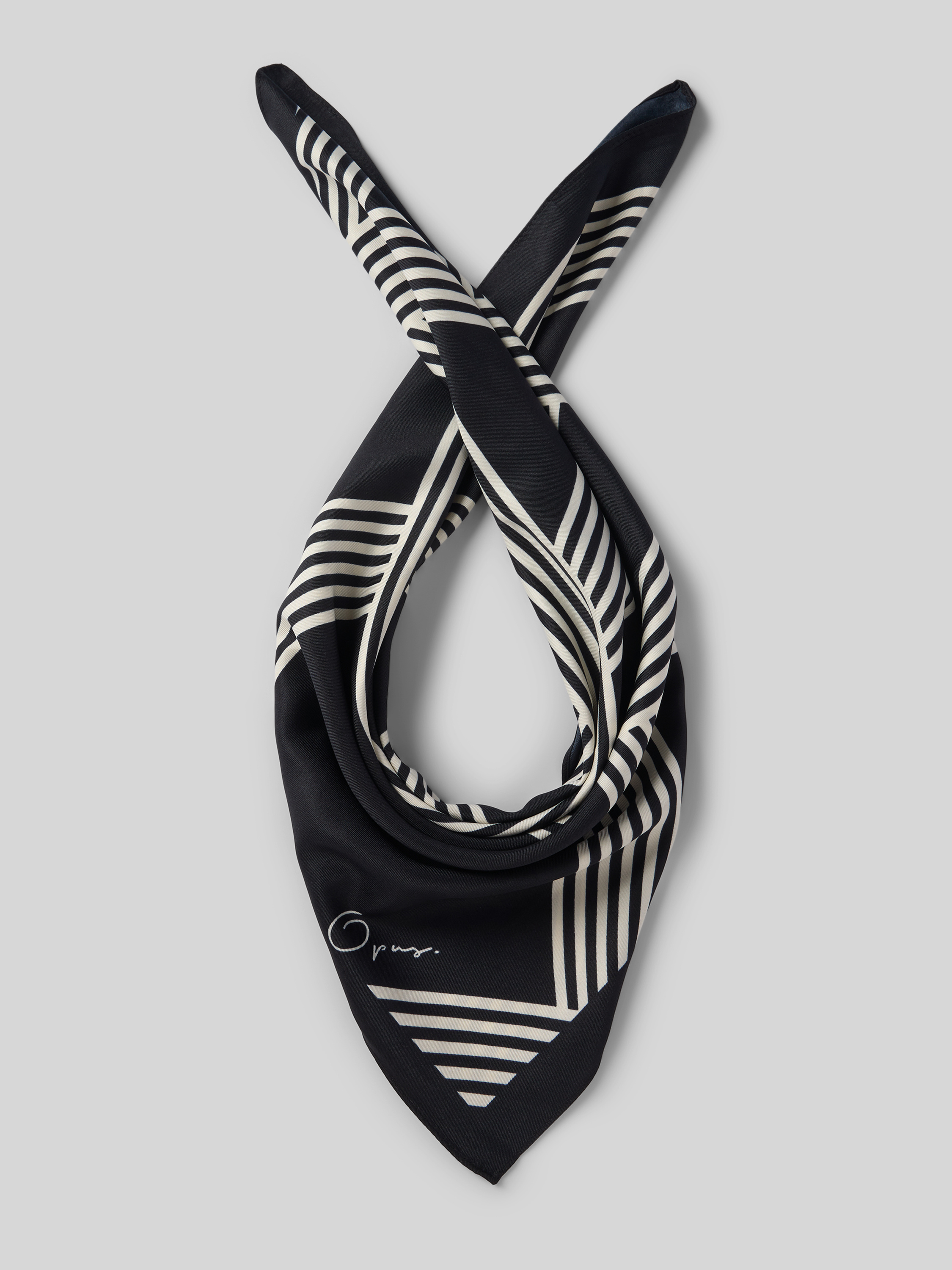 Der Damen Schal von OPUS im Modell Adilly präsentiert sich in einer modernen, dreieckigen Form und fällt durch den markanten Label-Print auf. Dank der eingefassten Abschlüsse liegt das Tuch angenehm an und bleibt formstabil. Das Design eignet sich besonders, um schlichte Outfits aufzulockern.