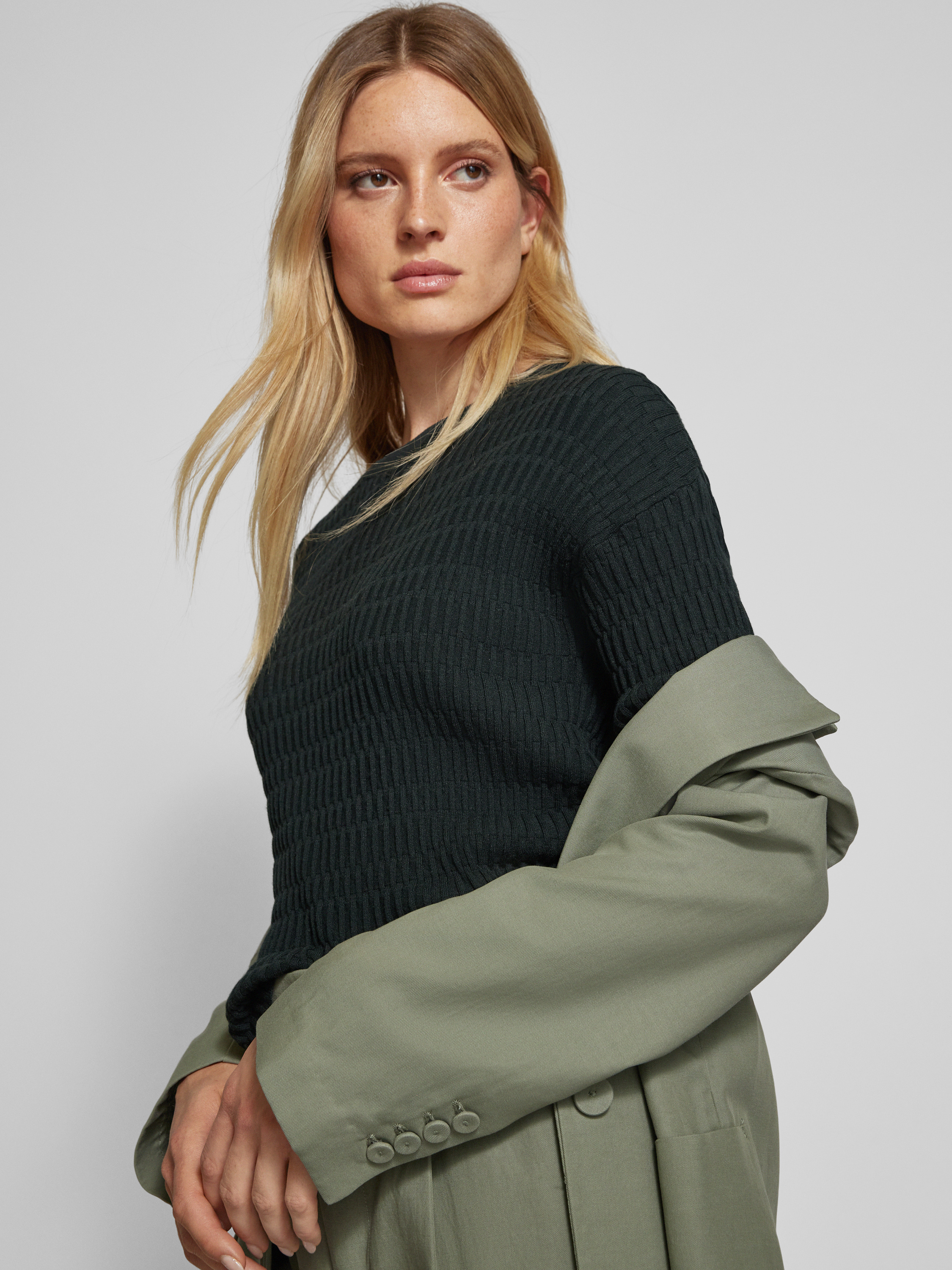 OPUSSlim Fit T-Shirt mit Leinen-Anteil Modell 'PINU' in dunkelgruen