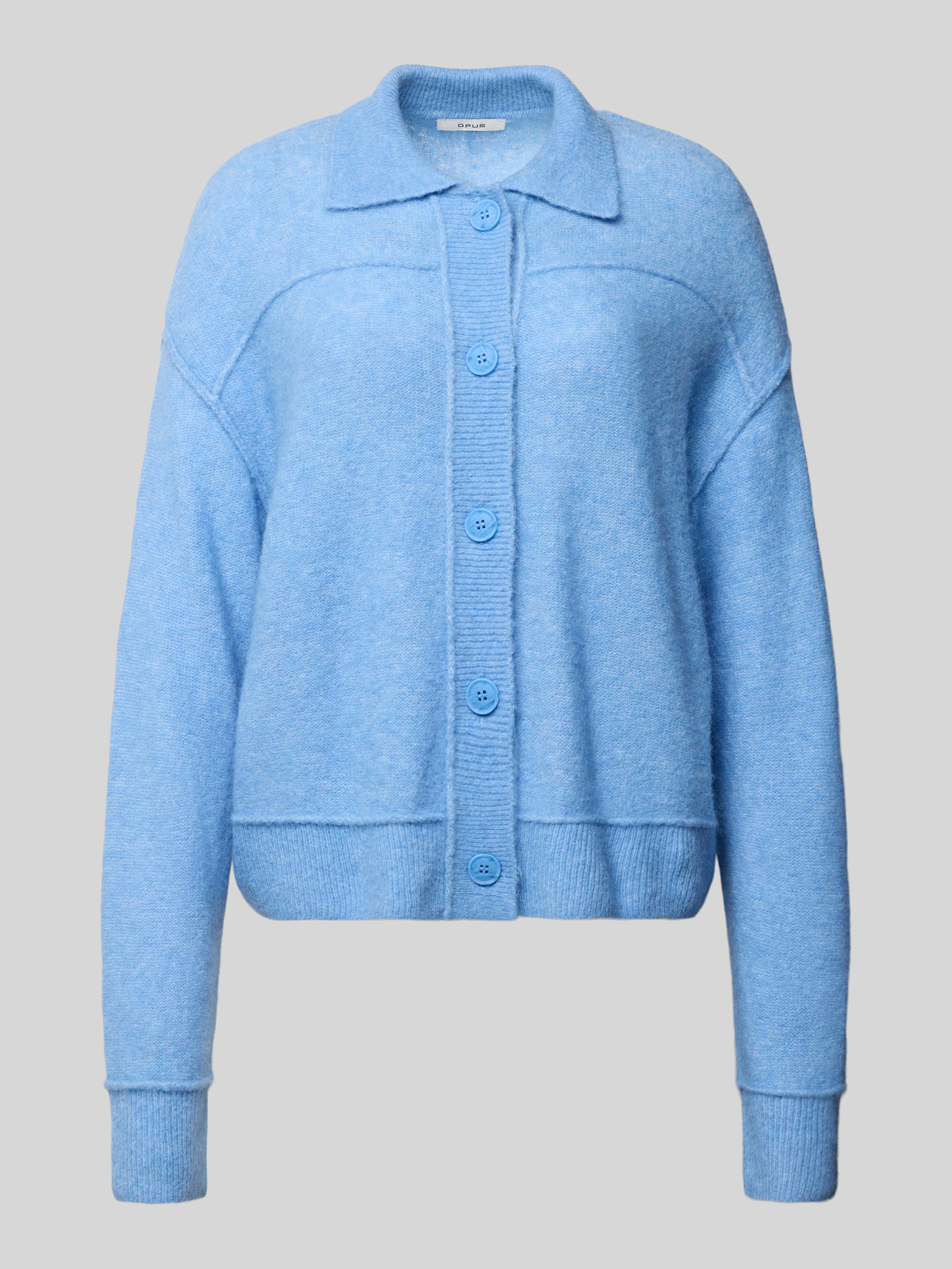 Die Damen Strickjacke von Opus Modell 'Daneke' vereint einen angenehm weichen Material-Mix mit Woll-Anteil und einen geraden Schnitt, wodurch sie vielseitig kombinierbar bleibt. Durch den Umlegekragen und die überschnittenen Schultern erhält das Modell eine entspannte Ausstrahlung. So eignet sich die Strickjacke für unterschiedlichste Gelegenheiten im Alltag.