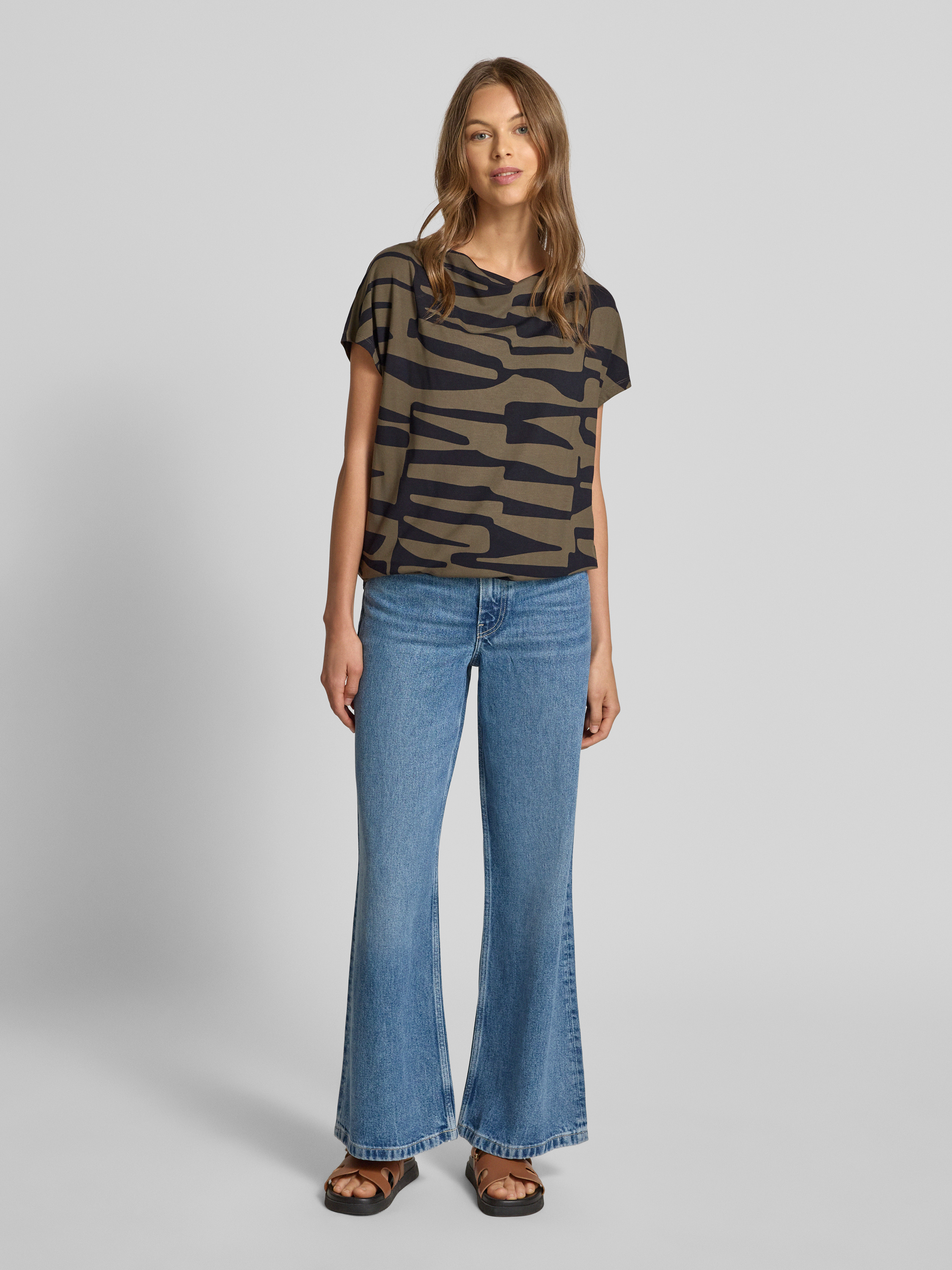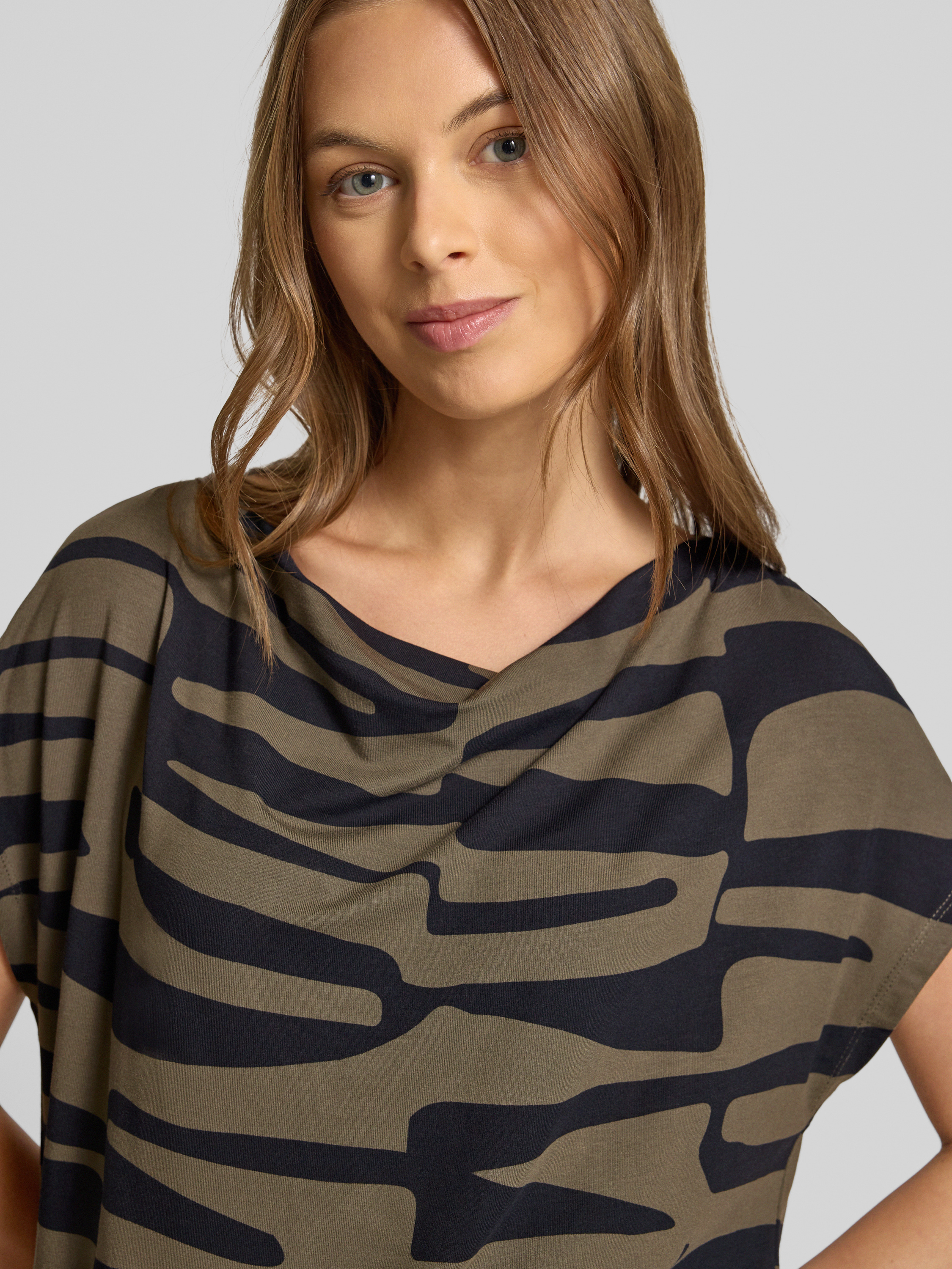 OPUST-Shirt mit Wasserfall-Ausschnitt Modell 'Sapaya' in khaki