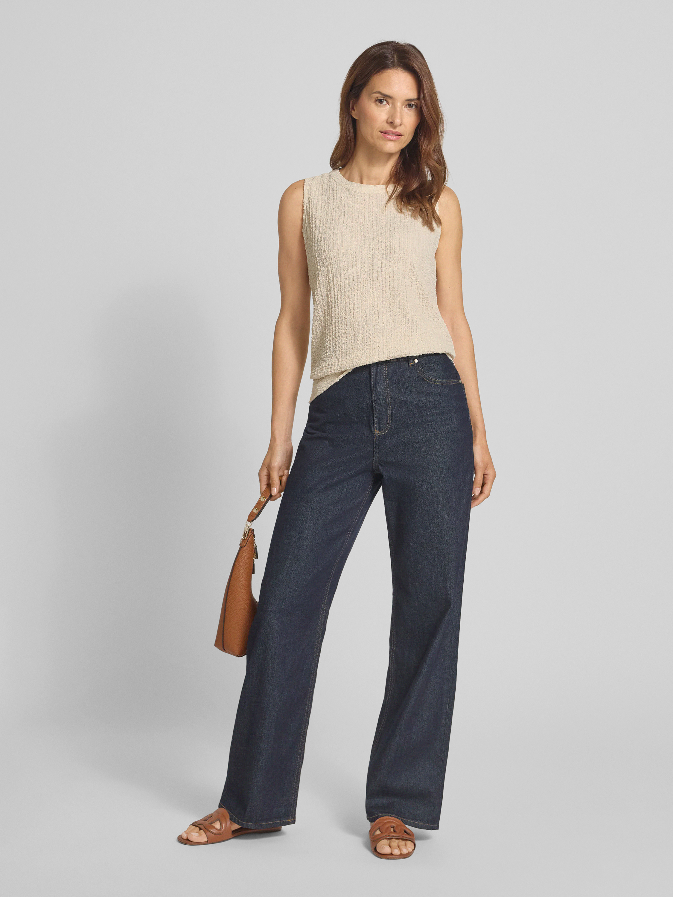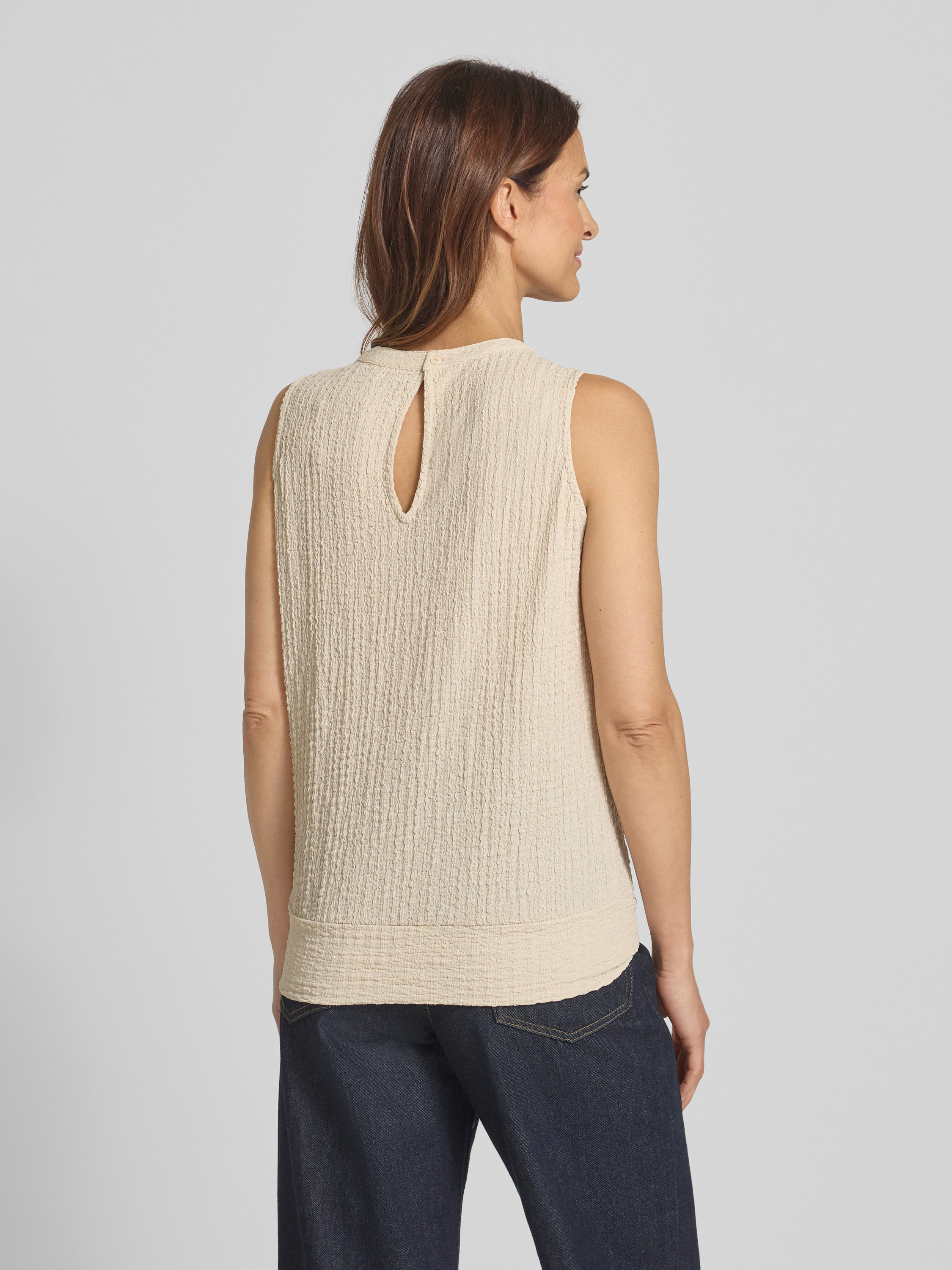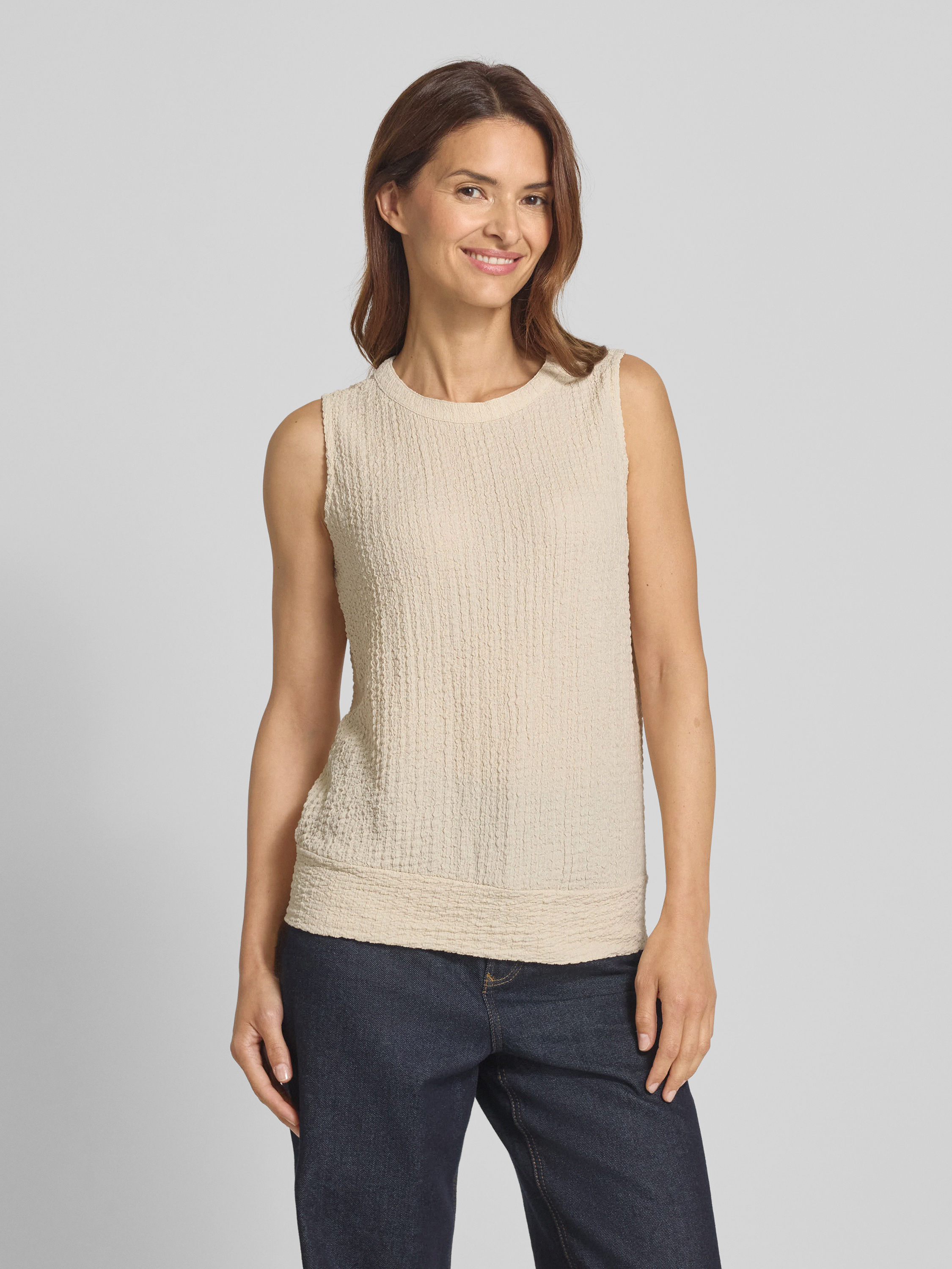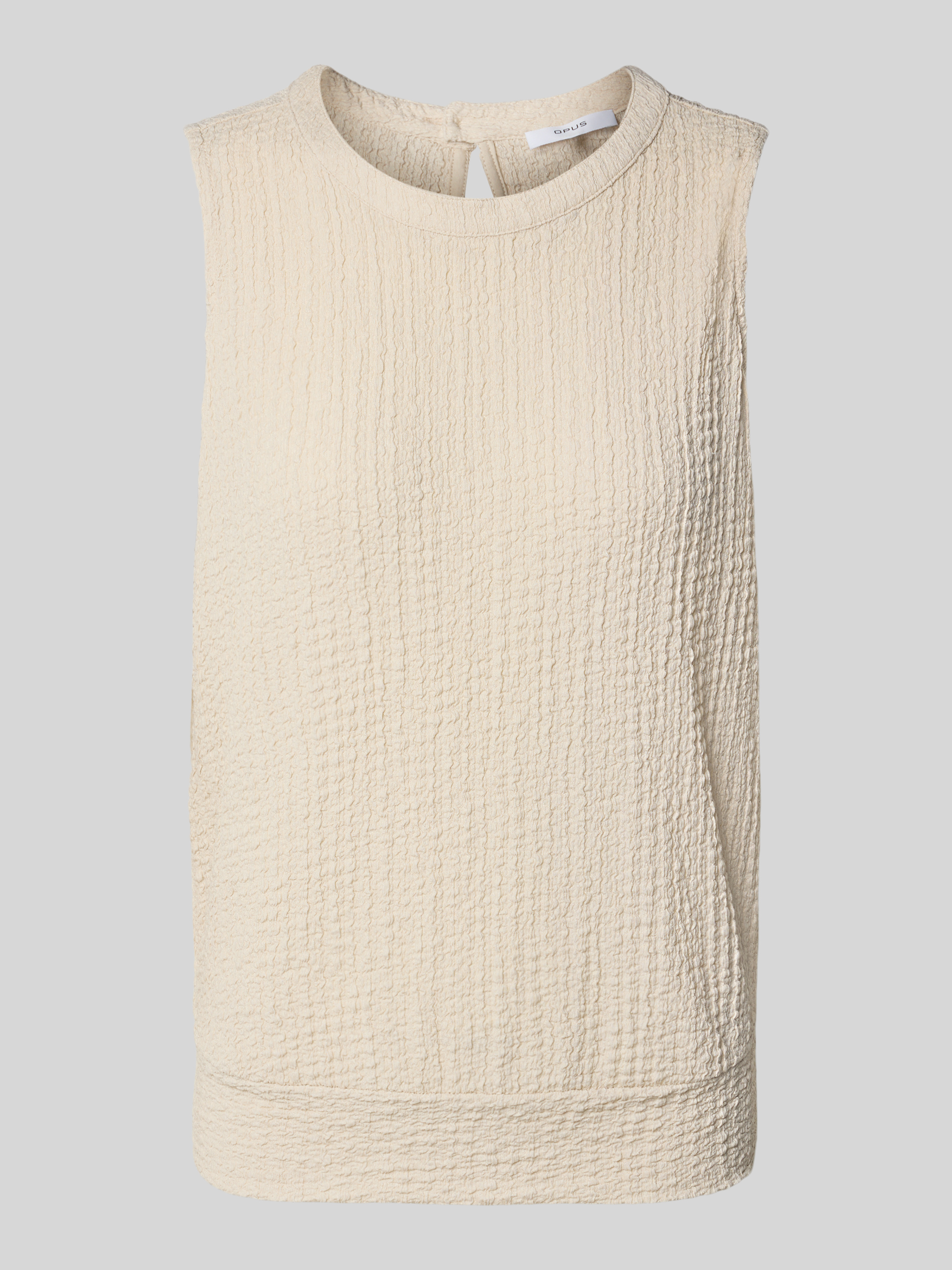 Das Damen Top von OPUS, Modell 'Ikini', kombiniert einen modernen Material-Mix mit einem dezenten Strukturmuster, das für eine ansprechende Optik sorgt. Durch den Regular Fit und den elastischen Anteil im Gewebe passt es sich angenehm an und bietet Bewegungsfreiheit im Alltag. Der klassische Rundhalsausschnitt rundet das vielseitige Design stilvoll ab.