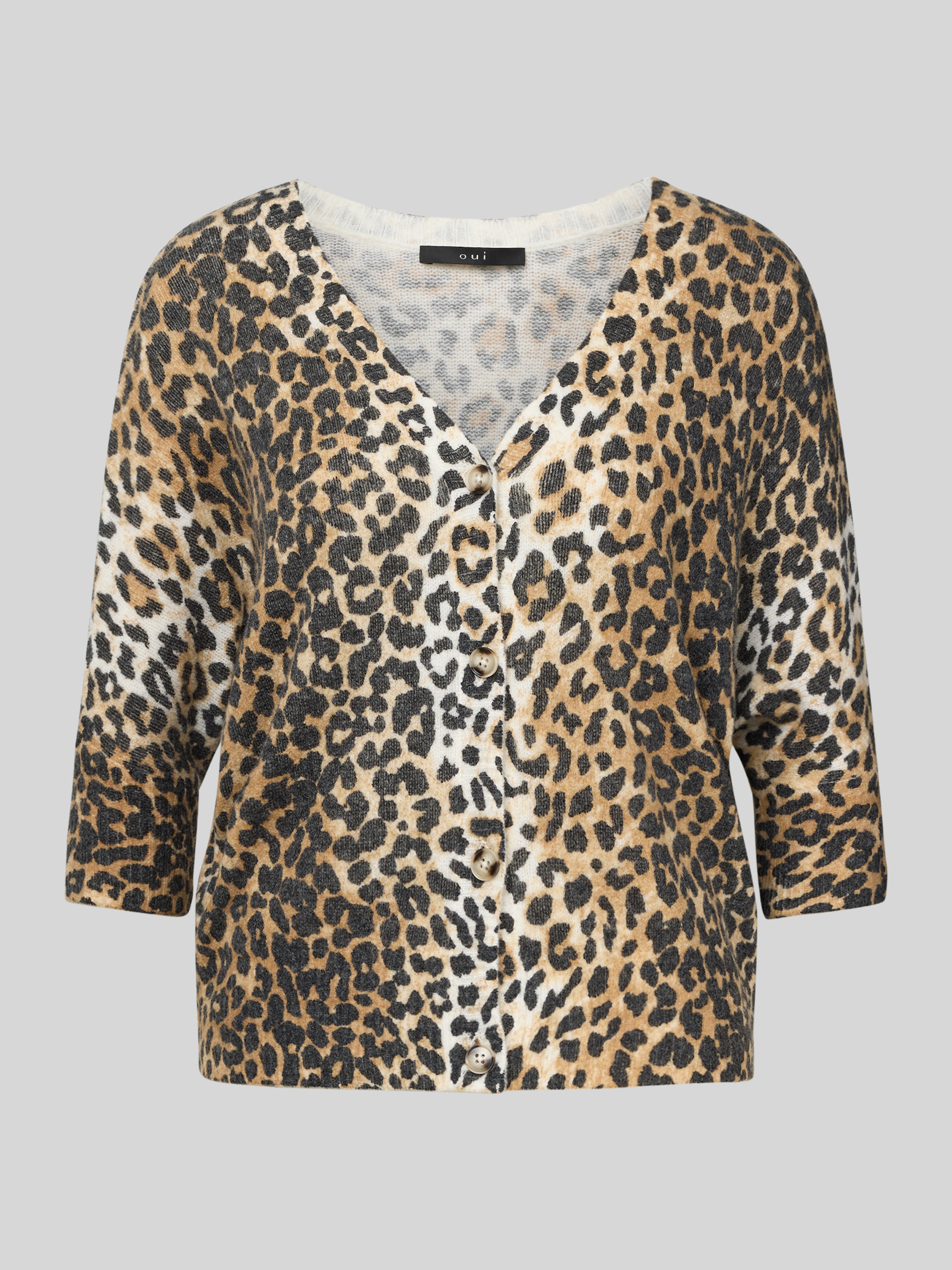 Die Strickjacke von Oui kombiniert einen angenehmen Material-Mix mit Woll-Anteil und sorgt für ein angenehmes Tragegefühl. Der Regular Fit und der V-Ausschnitt unterstreichen eine lässige Eleganz, während die 3/4-Ärmel vielseitig für unterschiedliche Anlässe geeignet sind.