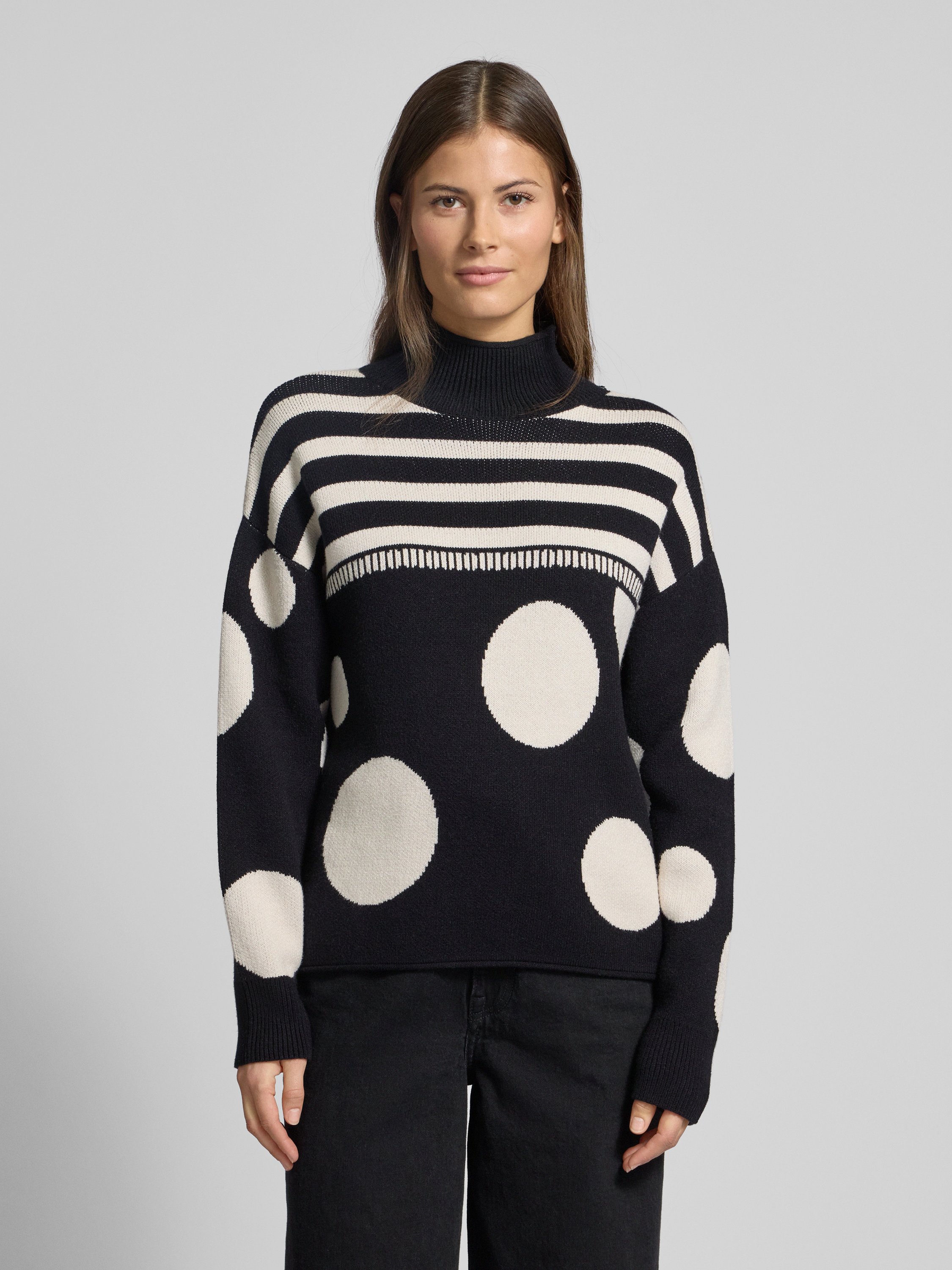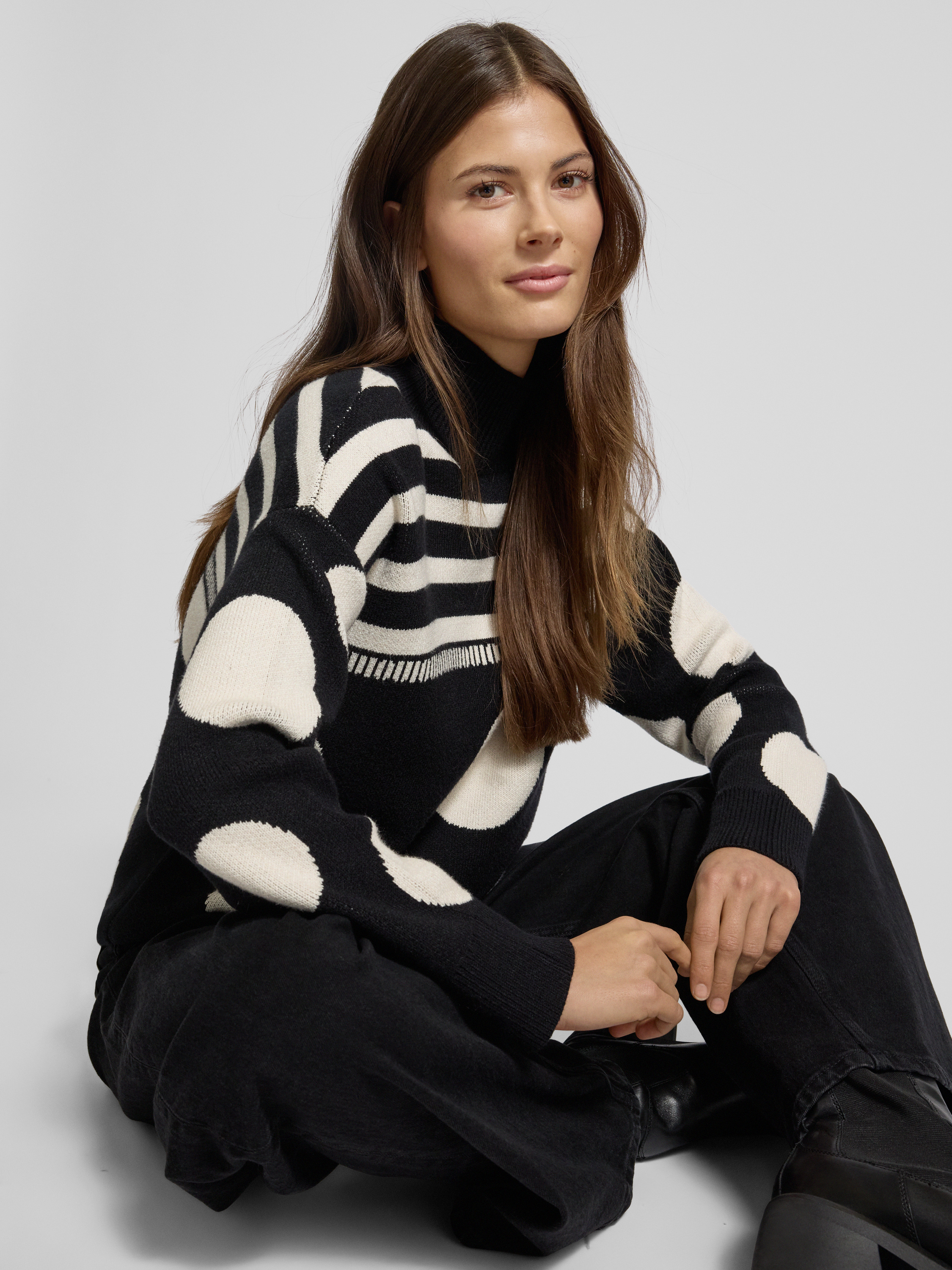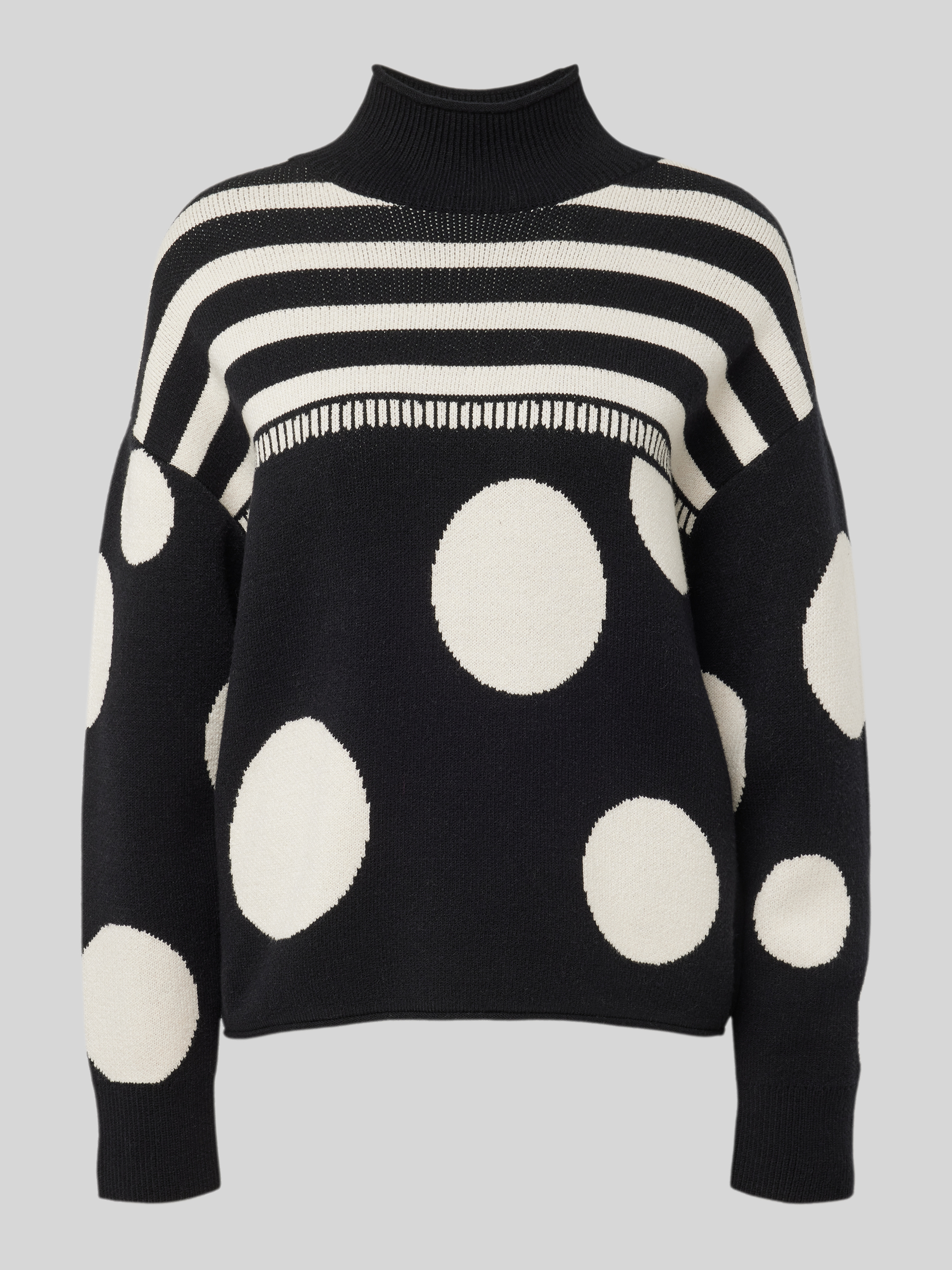 Der Strickpullover von Oui kombiniert einen bequemen Viskose-Mix mit einem lockeren Schnitt, der durch den Turtleneck eine elegante Note erhält. Überschnittene Schultern verleihen dem Pullover eine lässige Passform, die sich ideal für entspannte Tage eignet. Ein vielseitiges Kleidungsstück für jede Garderobe.