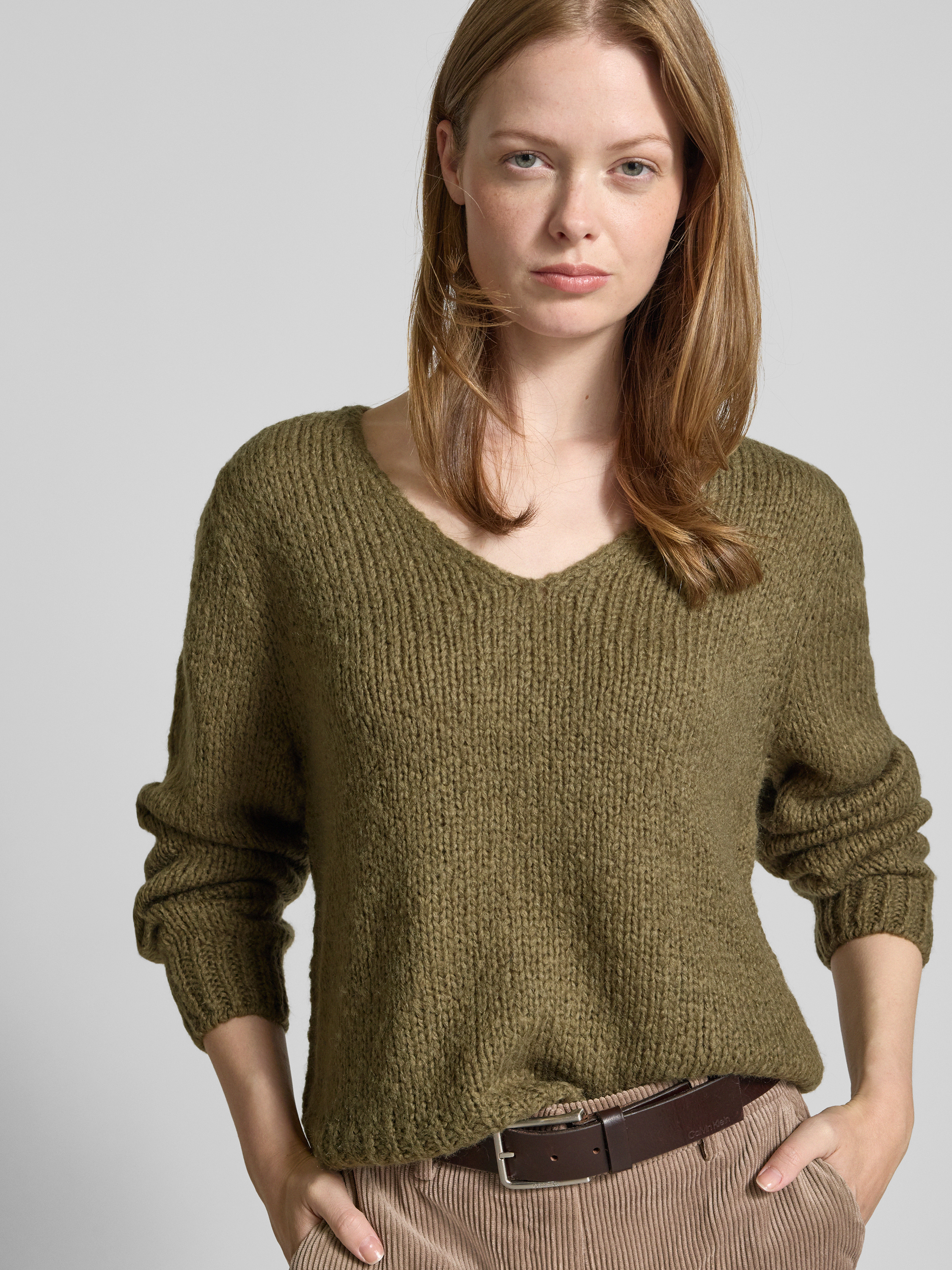 Der Damen Strickpullover von Oui verbindet durch seinen Woll-Anteil angenehme Wärme mit einem lockeren Schnitt, der Bewegungsfreiheit lässt. Dank V-Ausschnitt entsteht ein vielseitig kombinierbarer Look, während gerippte Abschlüsse die Passform abrunden. So eignet sich der Strickpullover mit V-Ausschnitt für entspannte Outfits.