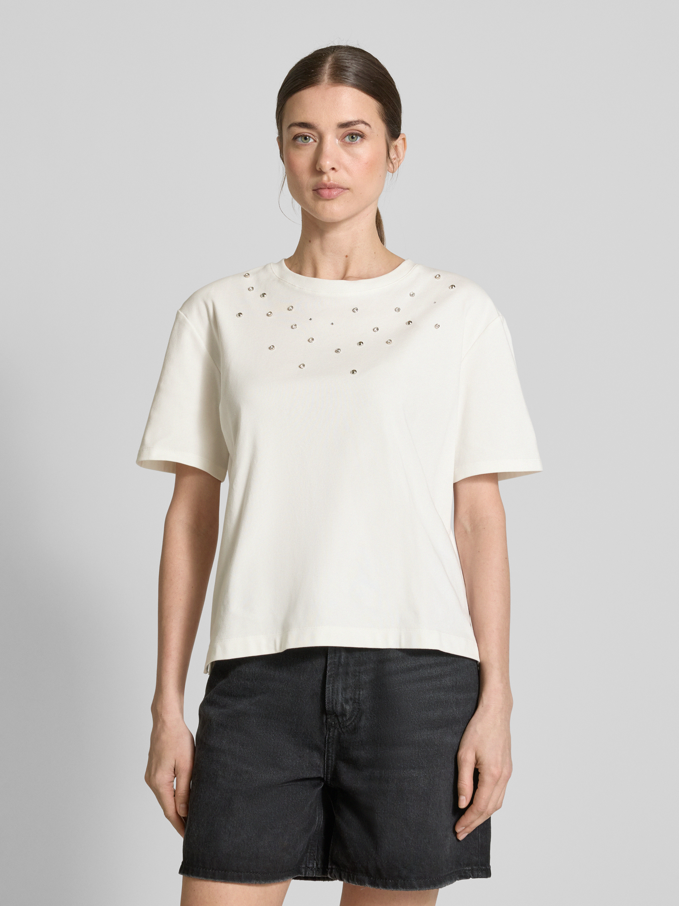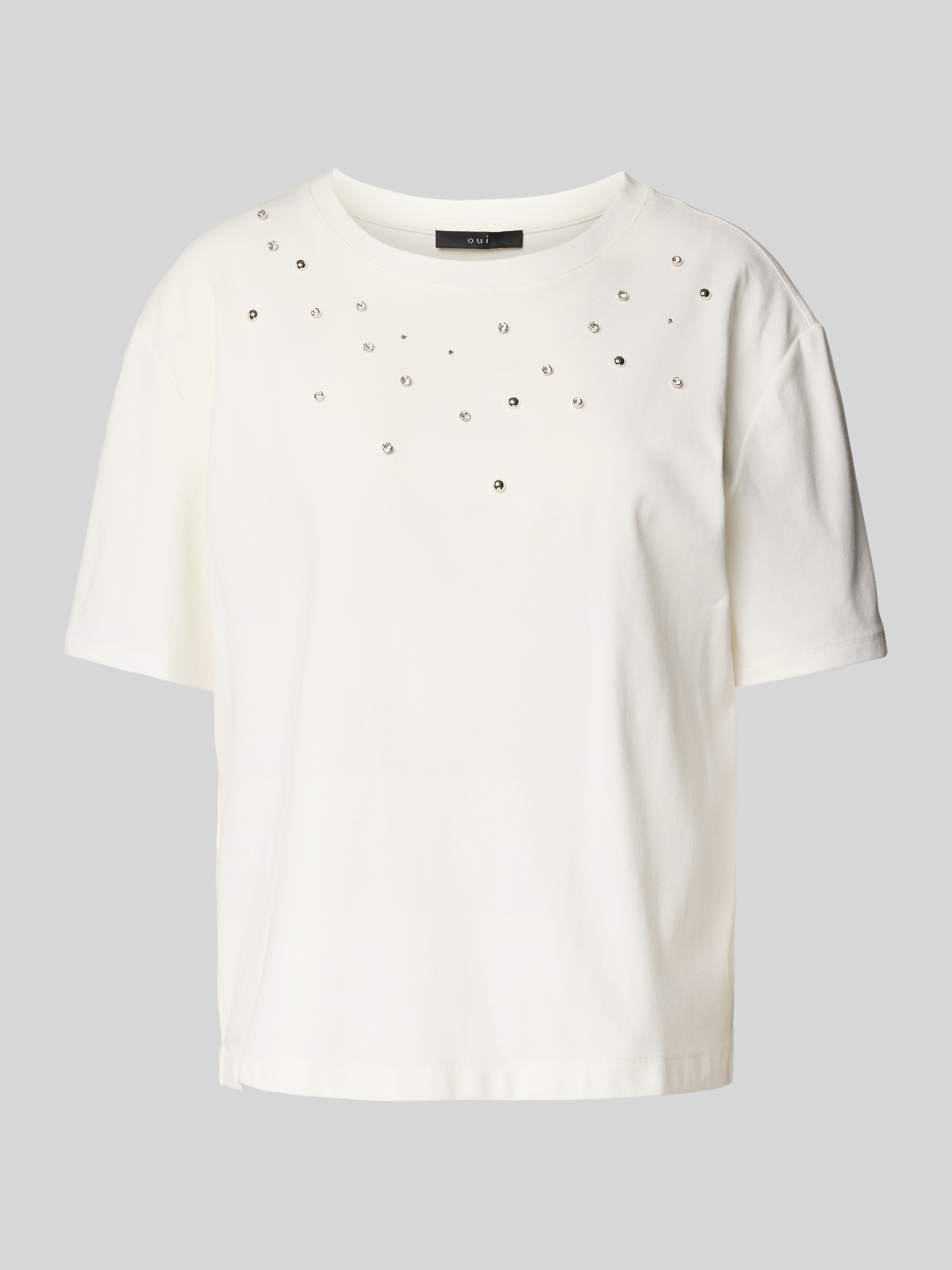 OuiT-Shirt mit Ziersteinbesatz in offwhite