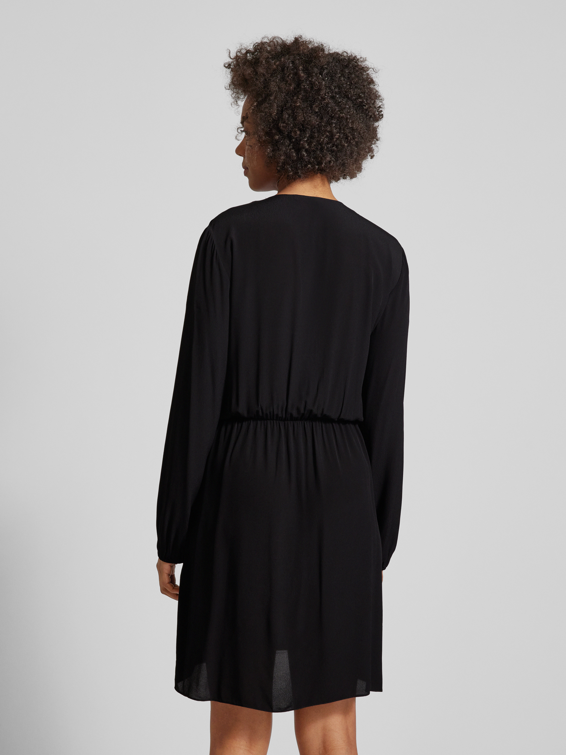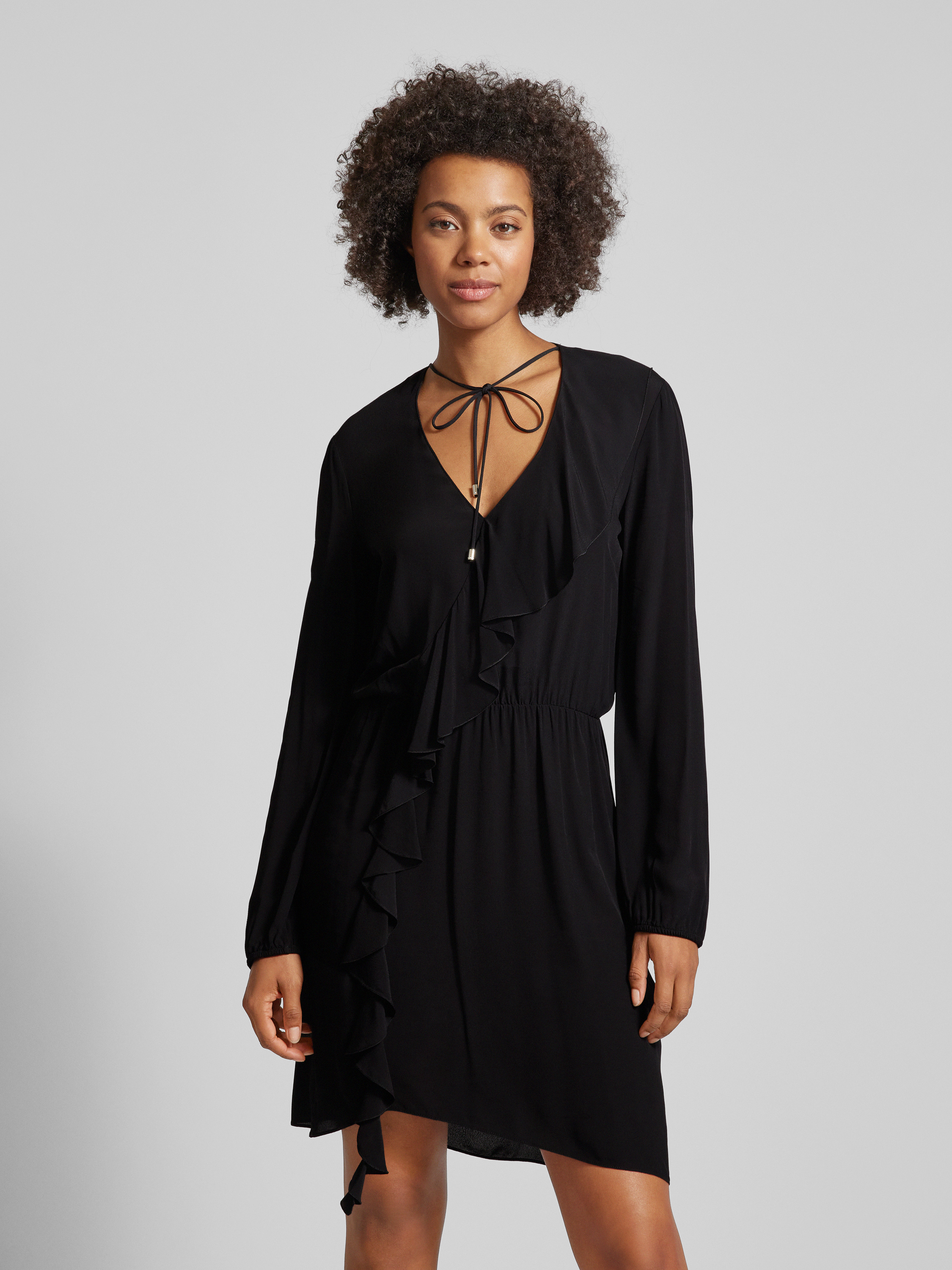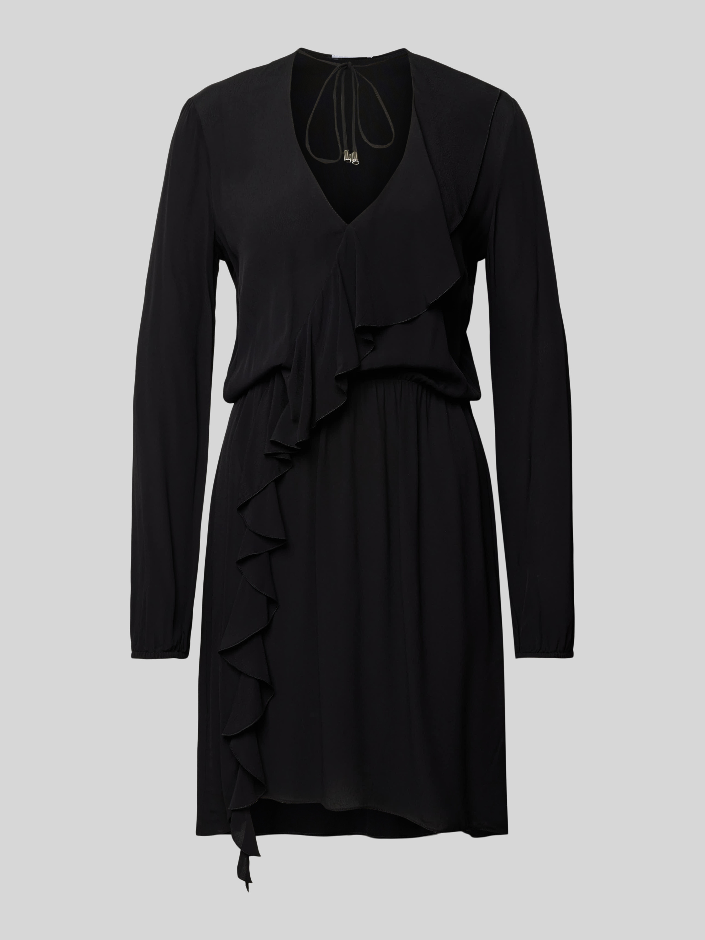 Das knielange Kleid von Patrizia Pepe aus reiner Viskose kombiniert einen taillierten Schnitt mit einem eleganten V-Ausschnitt und fließenden Volants, die für eine feminine Silhouette sorgen. Es eignet sich ideal für Anlässe, bei denen Komfort und Stil gleichermaßen gefragt sind.