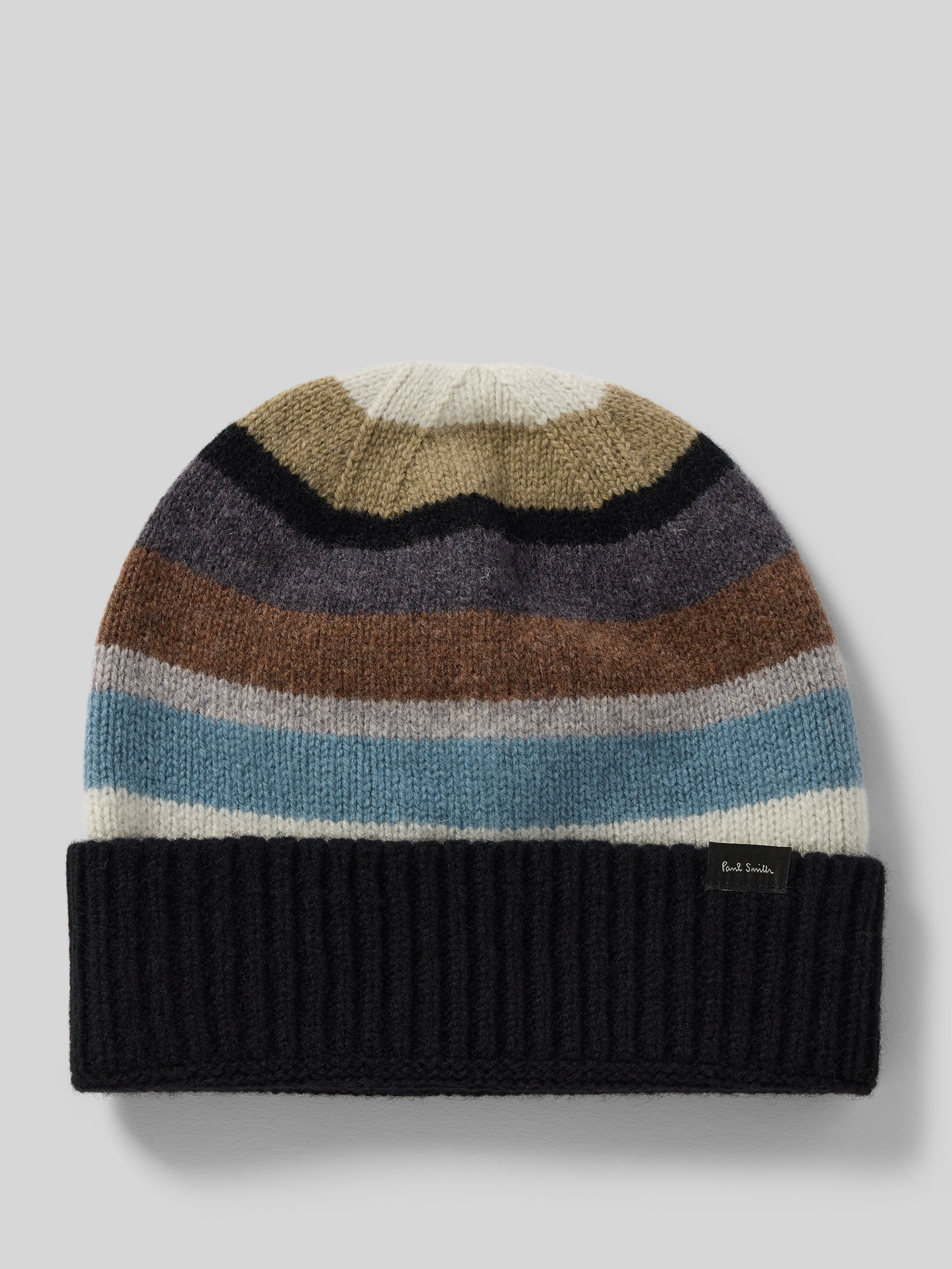 Die Herren Beanie von PAUL SMITH überzeugt durch reine Lammwolle, die angenehm wärmt und für ein weiches Tragegefühl sorgt. Dank der breiten Krempe lässt sich das Modell vielseitig stylen und schmiegt sich bequem an den Kopf. Das dezente Label-Detail rundet den entspannten Look ab.