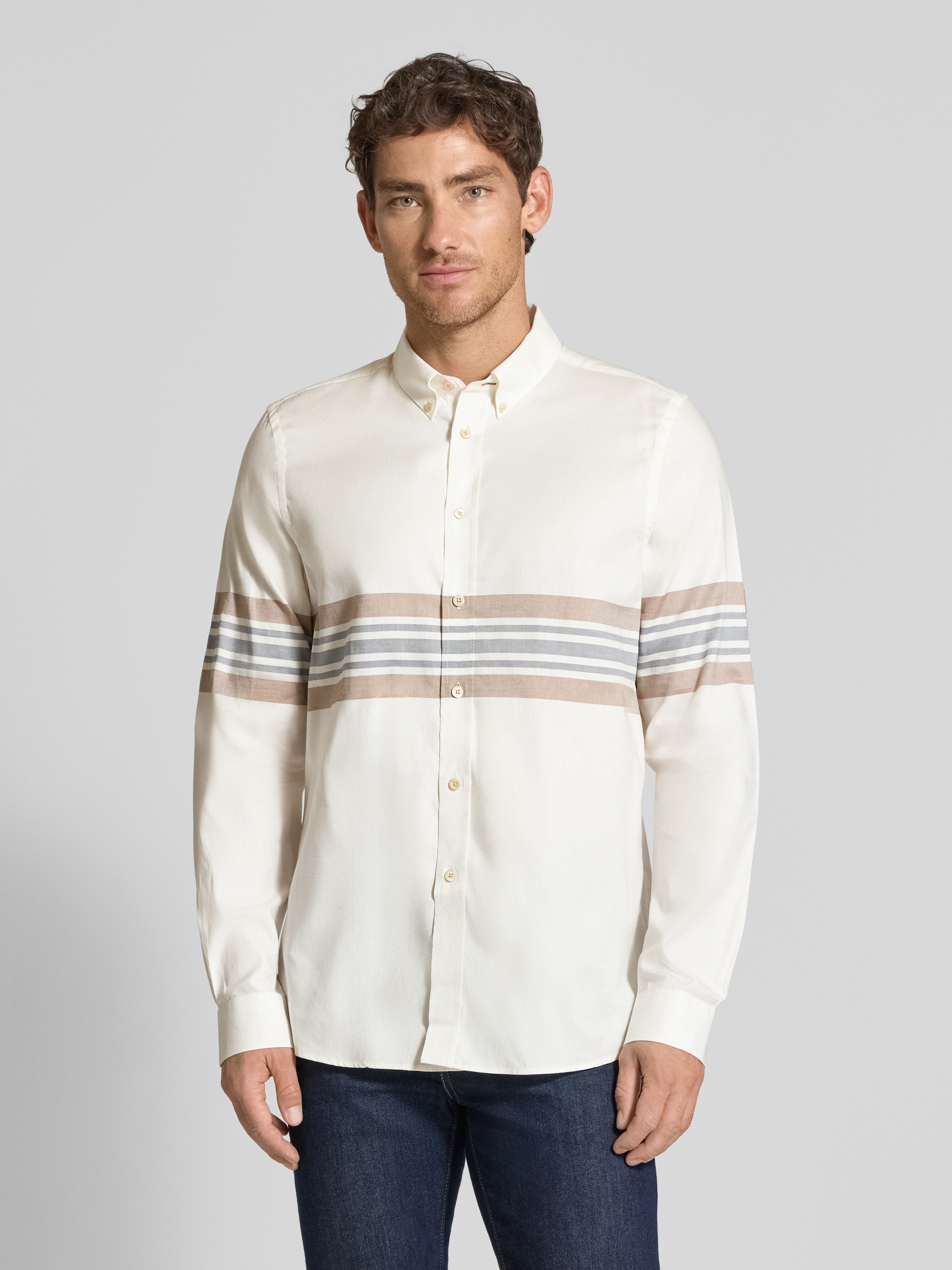 Das Herrenhemd von PAUL SMITH präsentiert sich im Regular Fit und sorgt durch die reine Baumwolle für angenehmen Tragekomfort. Der klassische Button-Down-Kragen verleiht dem Hemd eine dezente, gepflegte Note. So eignet es sich sowohl für entspannte Stunden als auch für legere Anlässe.