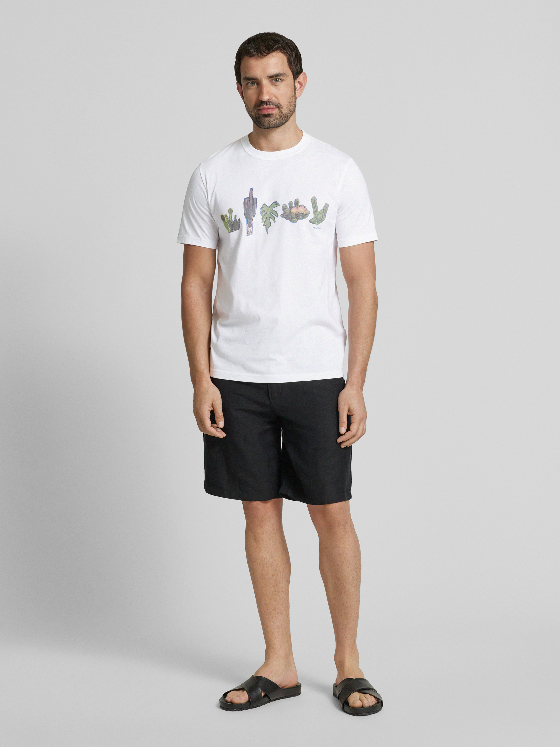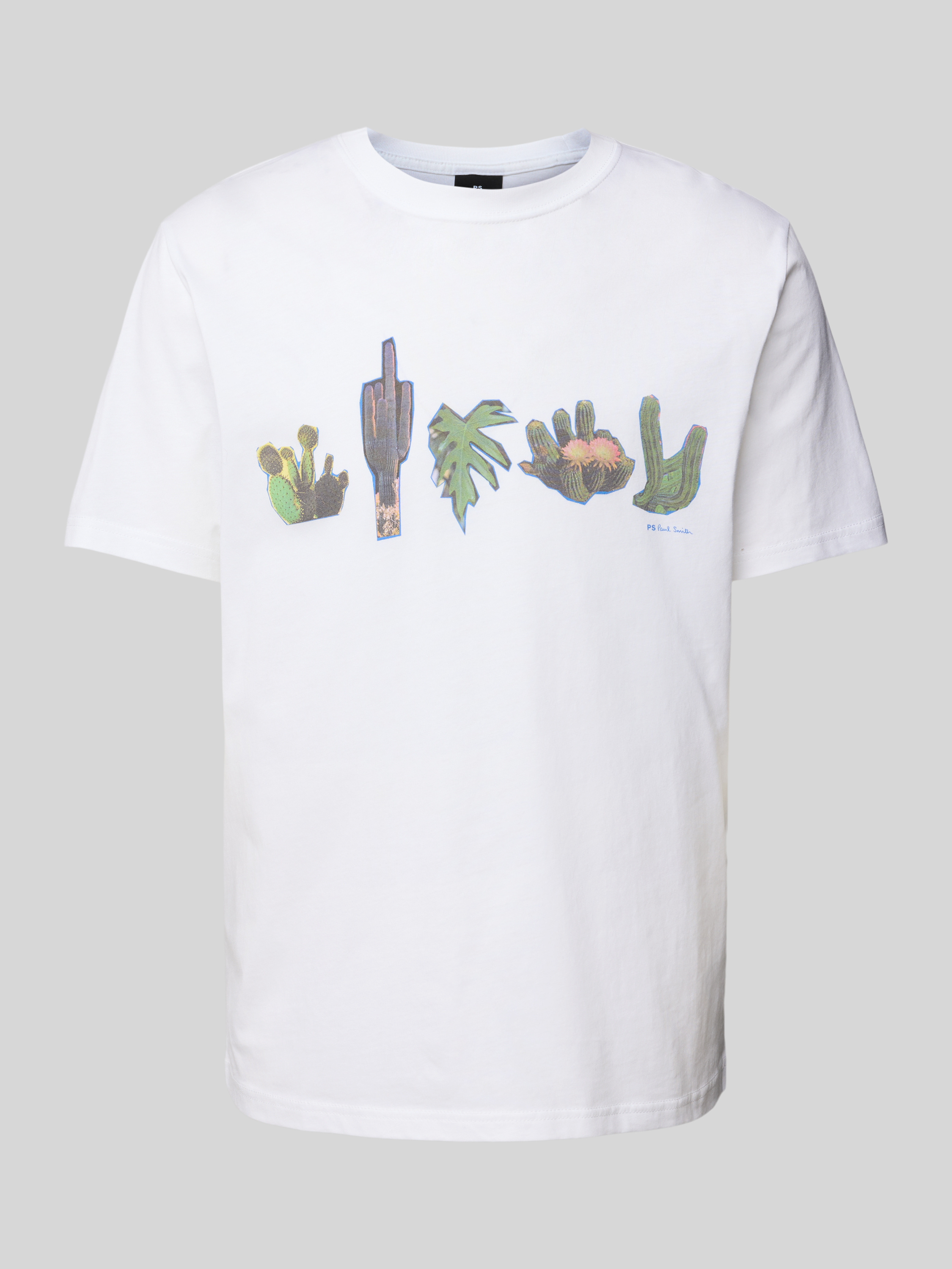 Das Herren T-Shirt von PAUL SMITH überzeugt mit seinem lässigen Regular Fit und der reinen Baumwolle, die für ein angenehmes Tragegefühl sorgt. Der gerippte Rundhalsausschnitt und der auffällige Motiv-Print verleihen dem T-Shirt einen besonderen, stilvollen Touch. Ideal für legere Alltagsoutfits.