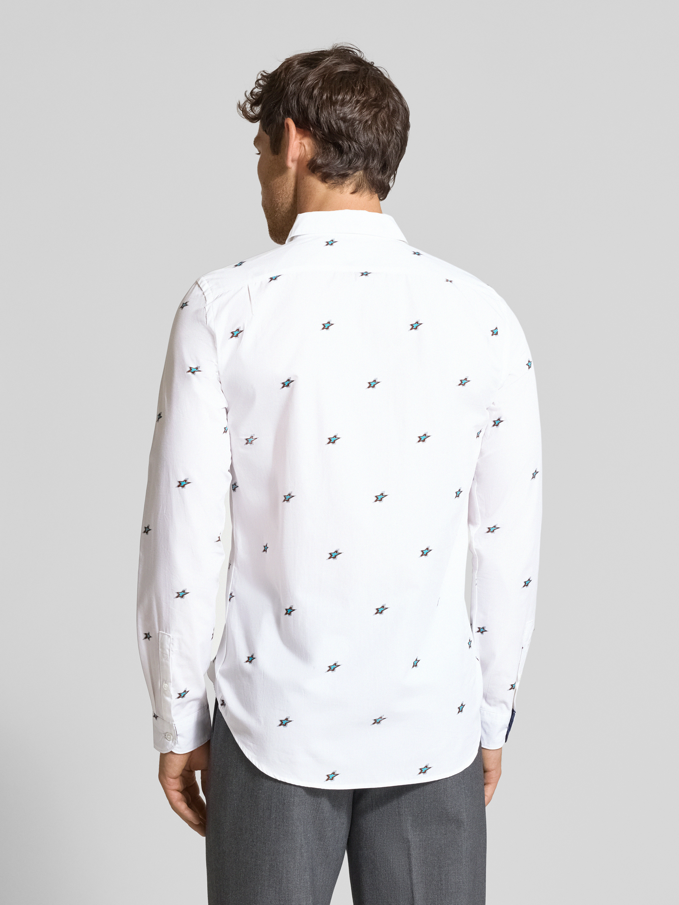 Das Herrenhemd von PAUL SMITH aus reiner Baumwolle sitzt durch den Tailored Fit angenehm am Körper und sorgt für eine gepflegte Silhouette. Der klassische Kentkragen verleiht dem Hemd eine zeitlose Note. Dank seiner leichten Struktur eignet es sich für vielseitige Kombinationen.