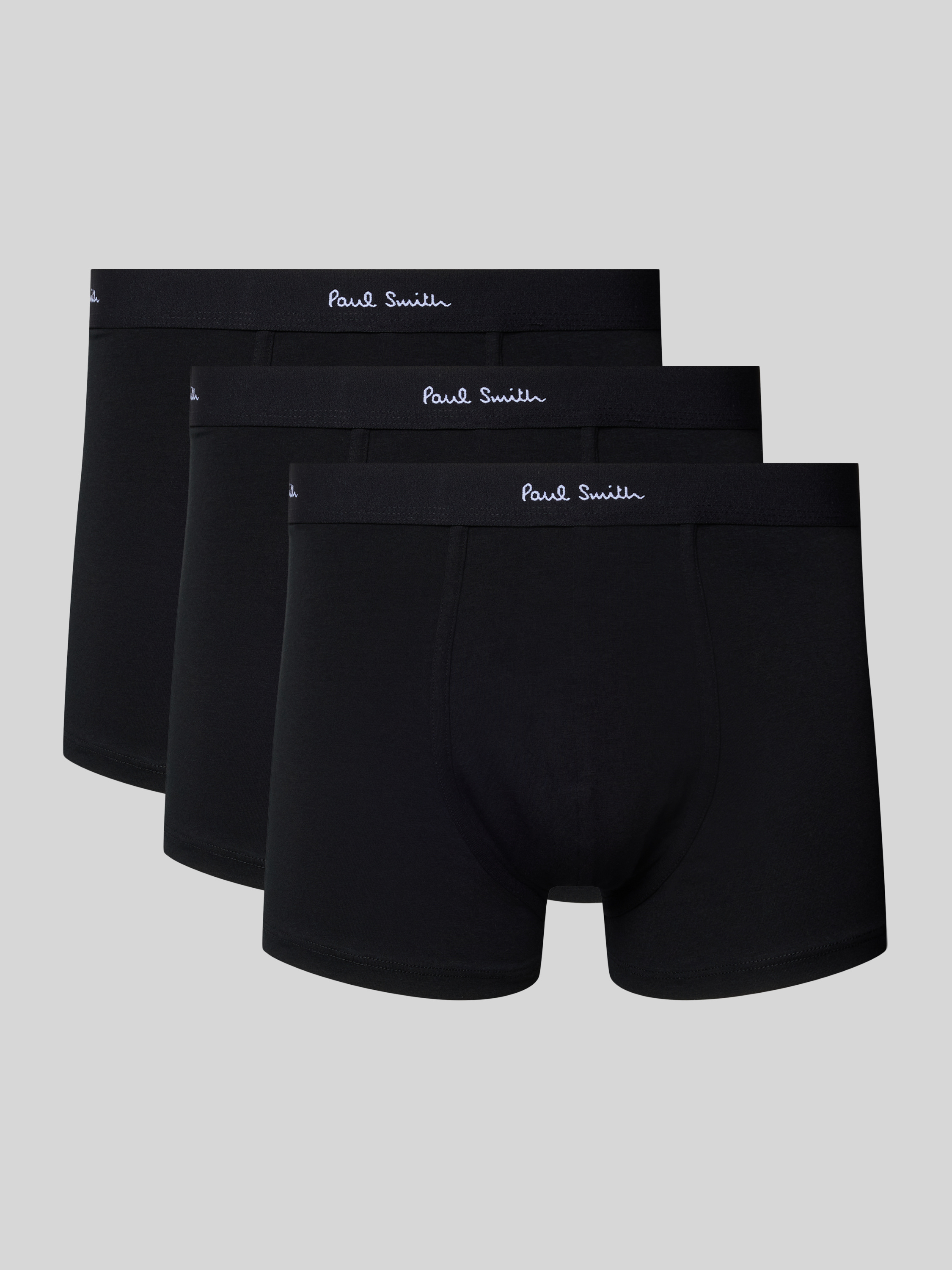 Die Herren Trunks von PAUL SMITH im 3er-Pack zeichnen sich durch einen körpernahen Schnitt aus, der für eine angenehme Passform sorgt. Der Baumwoll-Elasthan-Mix fühlt sich auf der Haut weich an und bleibt auch im Alltag formstabil. Durch den elastischen Logo-Bund sitzt die Unterwäsche zuverlässig, ohne einzuschneiden.