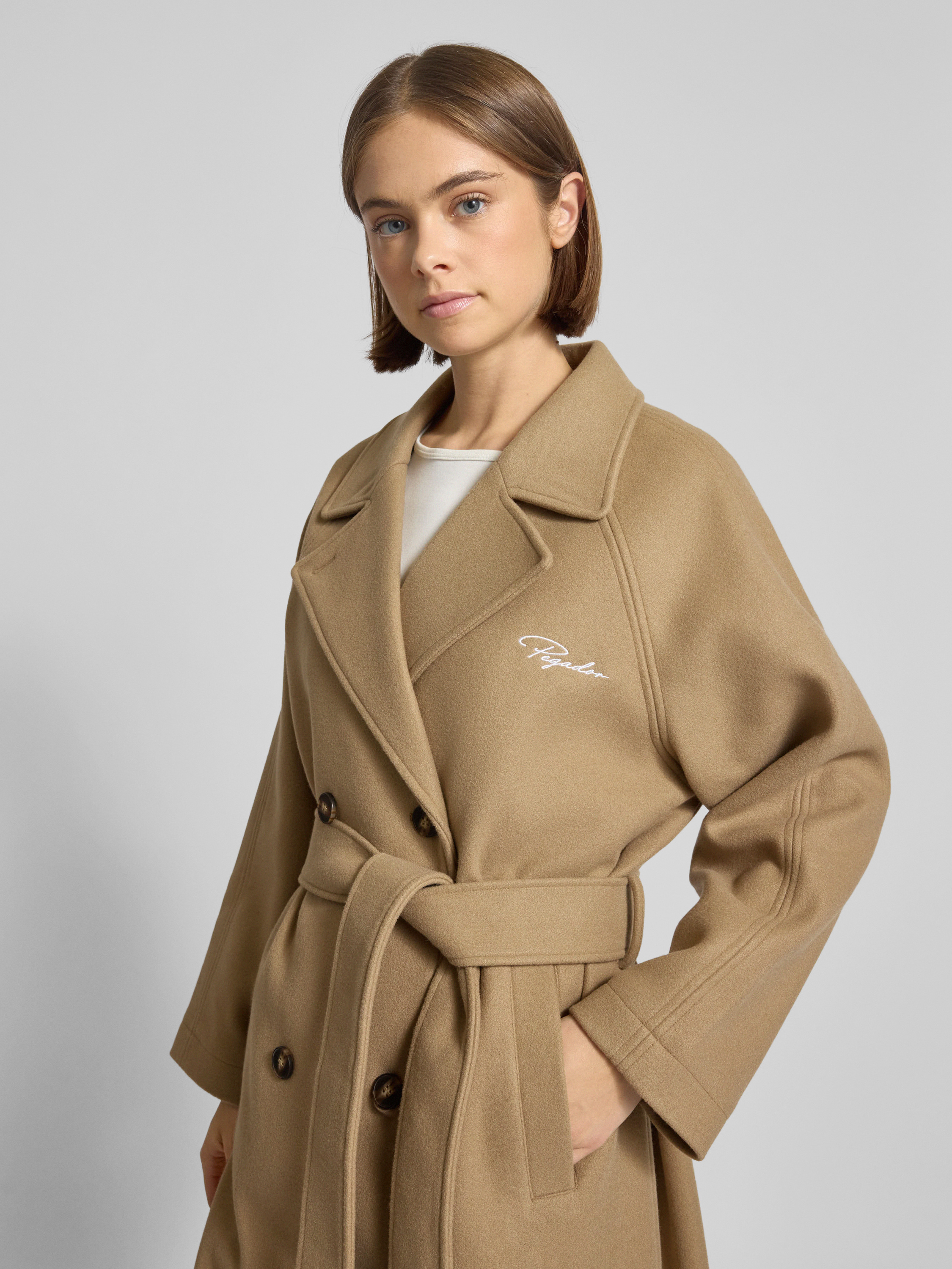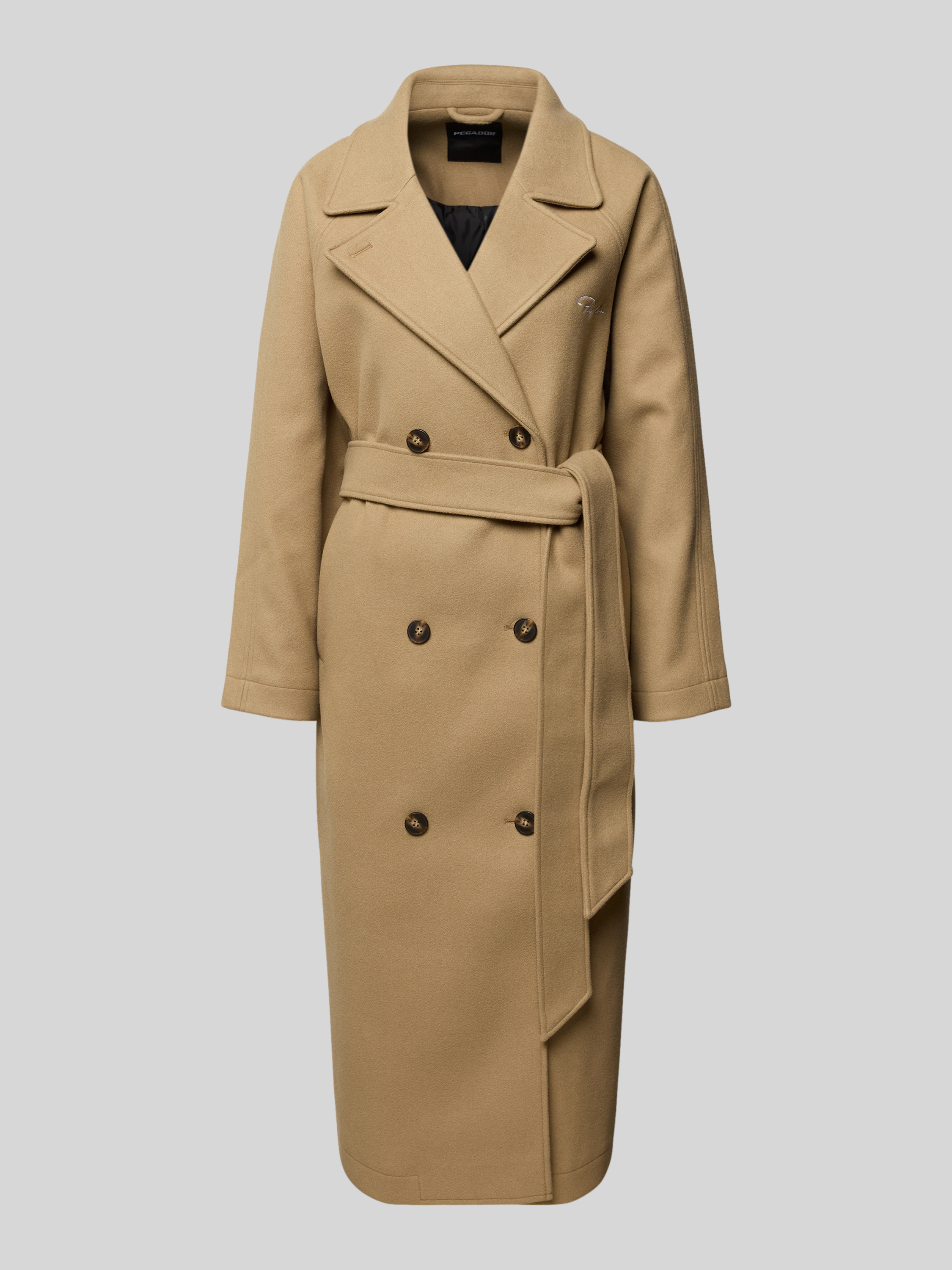 Der Damen Mantel von Pegador, Modell 'VALENCIA', zeigt sich in einem Material-Mix mit Viskose-Anteil und liegt dank Regular Fit angenehm am Körper. Durch den Zweireiher, den klassischen Reverskragen und den Bindegürtel entsteht eine zeitgemäße Silhouette, die vielseitig kombinierbar bleibt. So eignet sich das Modell sowohl für den Alltag als auch für besondere Anlässe.