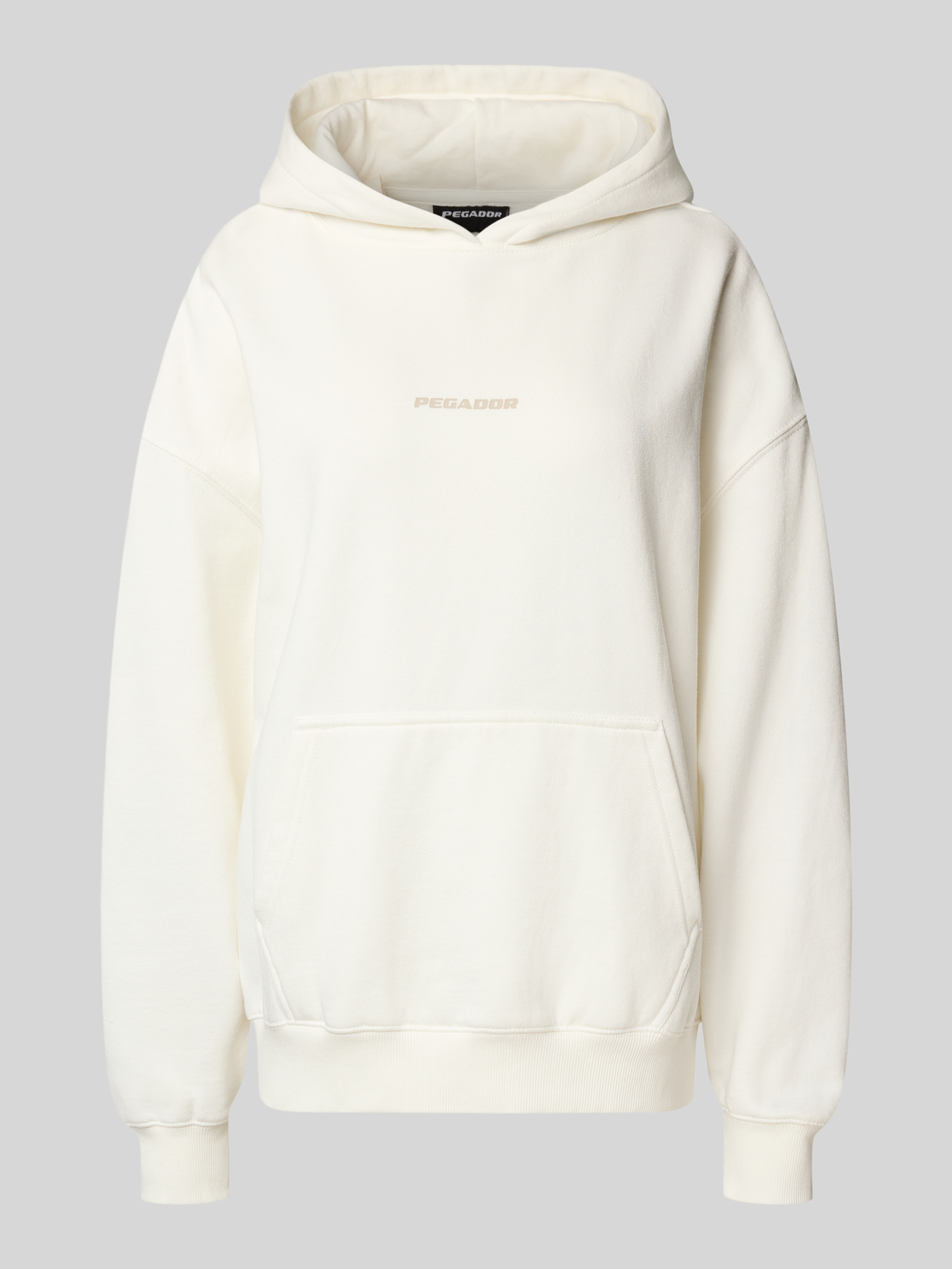 Der Damen Kapuzenpulli von Pegador Modell 'Atna' zeichnet sich durch einen lockeren Oversized-Fit aus, der Bewegungsfreiheit im Alltag unterstützt. Der weiche Baumwoll-Mix sorgt für angenehmen Tragekomfort, während die überschnittenen Schultern dem Logo-Hoodie eine entspannte Silhouette verleihen. Eine großzügige Känguru-Tasche bietet Platz für Kleinigkeiten.