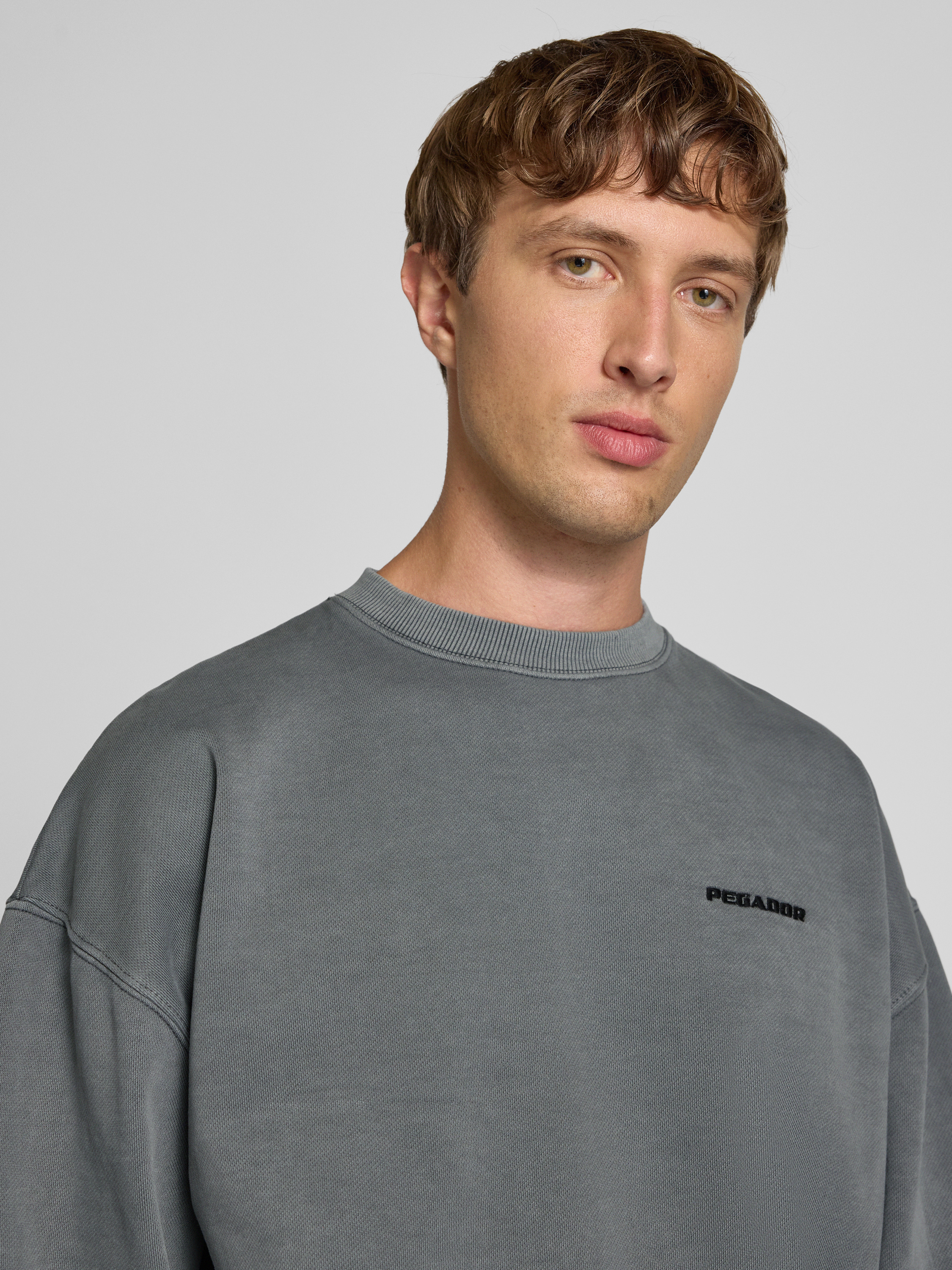 Das Herren Sweatshirt von Pegador präsentiert sich in lockerer Oversized-Silhouette, wodurch viel Bewegungsfreiheit entsteht. Durch den weichen Baumwoll-Mix liegt das Material angenehm auf der Haut und sorgt für ein entspanntes Tragegefühl. Dezentes Label-Stitching rundet das Design stilvoll ab.