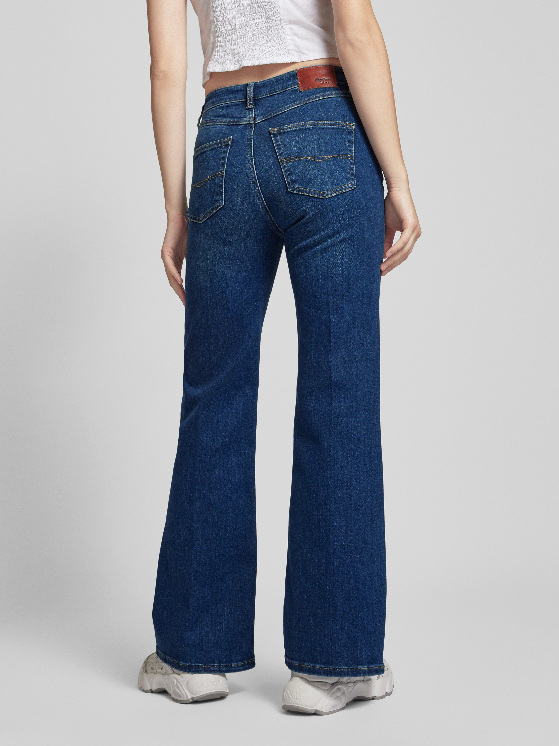 Die Flared Jeans von Pepe Jeans verbindet einen Baumwoll-Modal-Mix mit Stretch-Anteil, wodurch sie sich angenehm an den Körper schmiegt und Bewegungsfreiheit bietet. Der ausgestellte Schnitt ergänzt das klassische 5-Pocket-Design, ideal für einen lässigen und dennoch stilvollen Look. Gürtelschlaufen ermöglichen vielseitige Styling-Optionen.