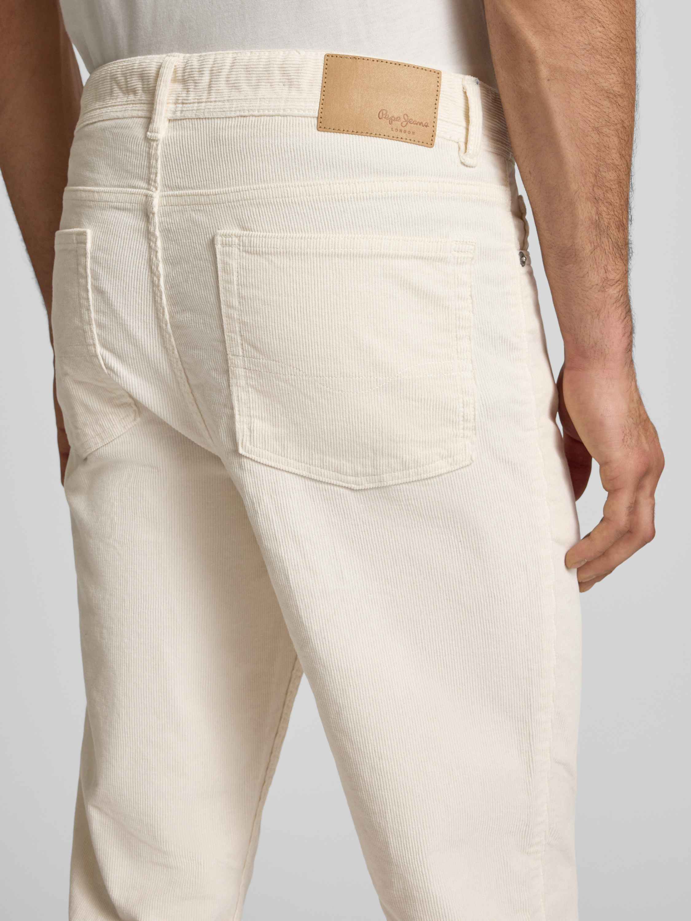 Die Herren Cordhose von Pepe Jeans im Slim Fit-Schnitt liegt angenehm am Bein an und sorgt durch den Mid Waist-Bund für einen modernen Sitz. Die strukturierte Optik in Unifarben verleiht dem Baumwoll-Mix eine dezente Note, die vielseitig kombinierbar bleibt. Praktische Gürtelschlaufen und das klassische 5-Pocket-Design runden den Alltagseinsatz ab.